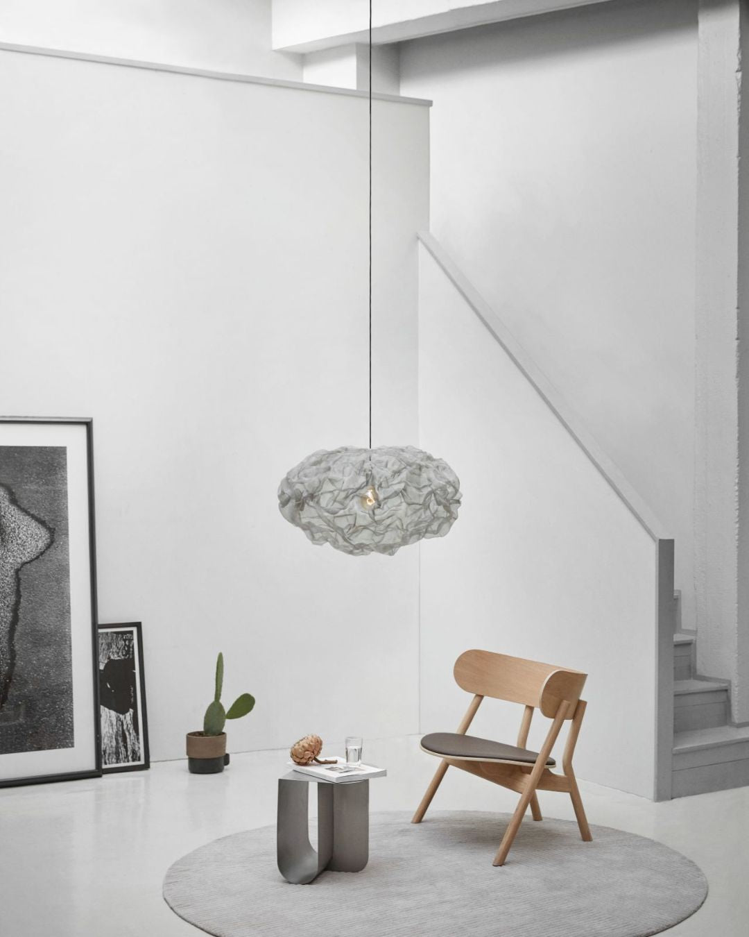 This large pendant is perfect for living rooms, bedrooms, dining areas, or open-plan spaces where artistic lighting doubles as a design feature. The contrast of textures gives it a dynamic presence, while its airy silhouette keeps it visually light.