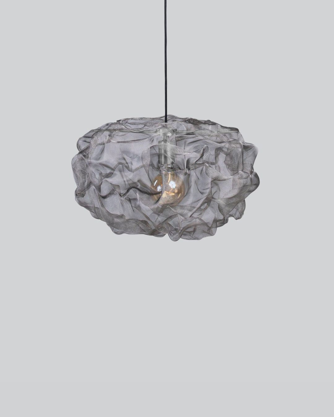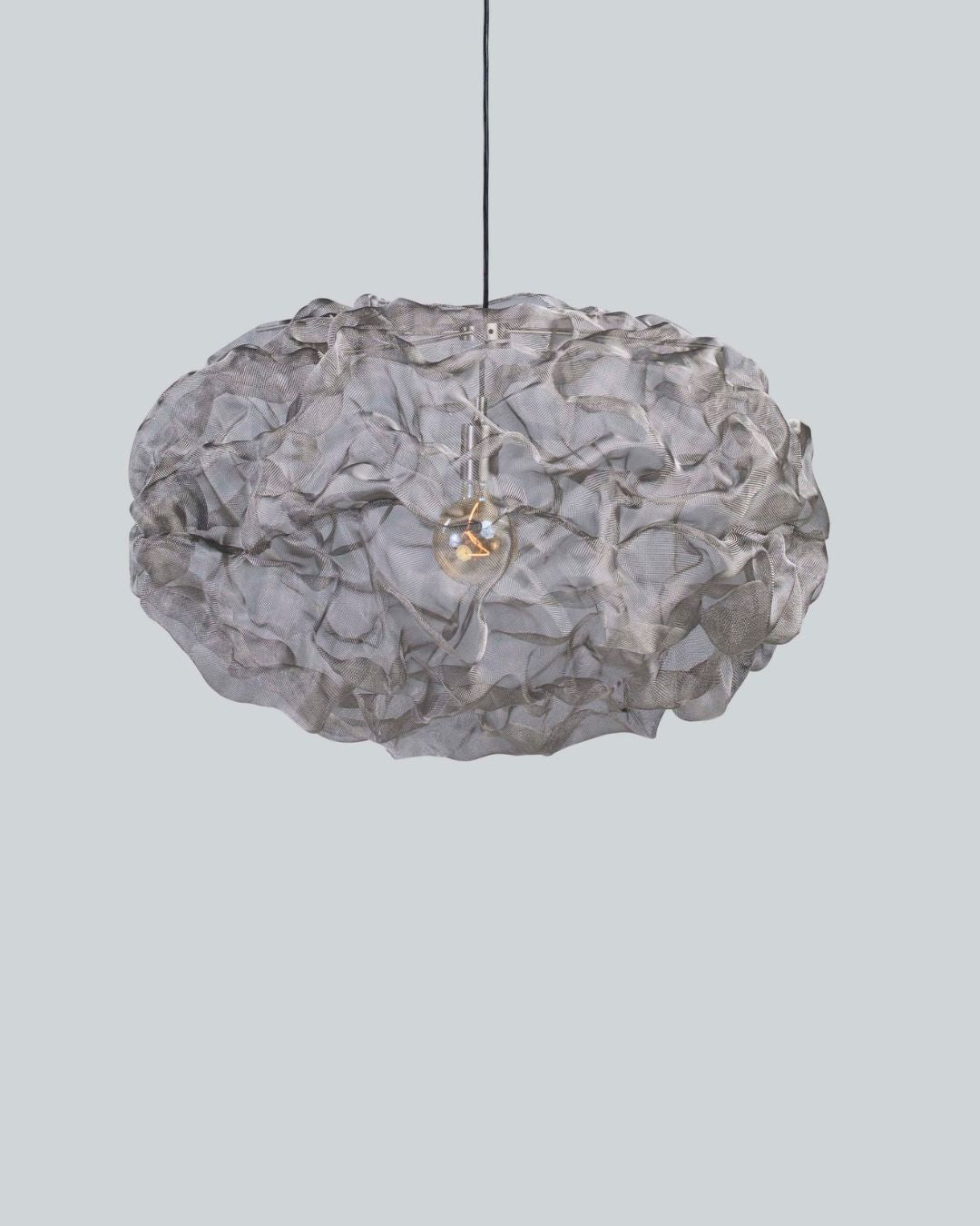 The Steel Mesh Cloud Pendant Light is a bold exploration of material and form, designed to make a statement in any contemporary interior. Its intricately crafted steel mesh creates a striking interplay of light and shadow, casting a soft, tranquil glow by day and a warm, dramatic radiance by night.