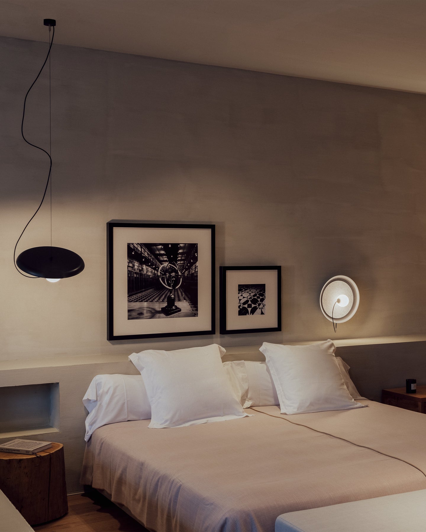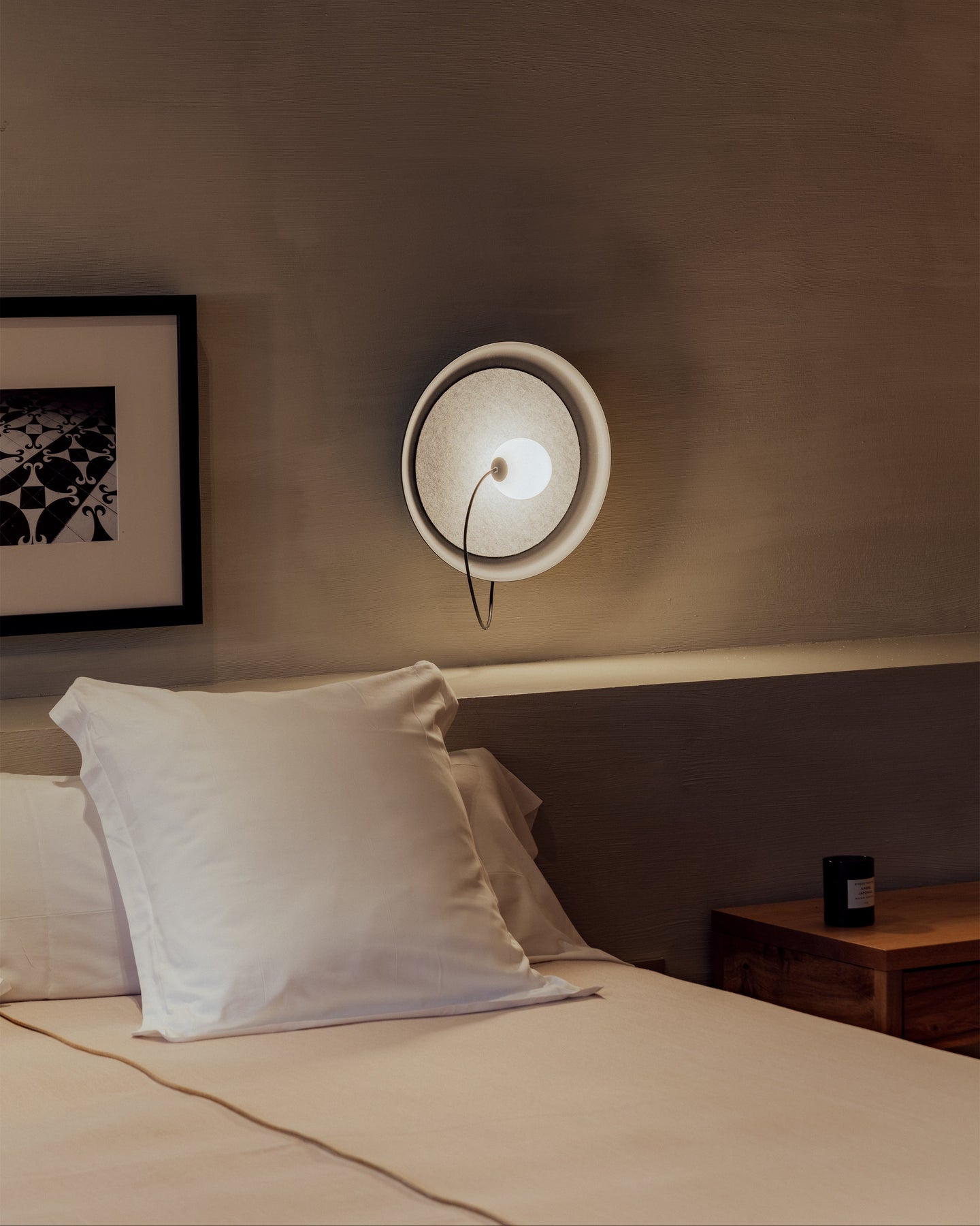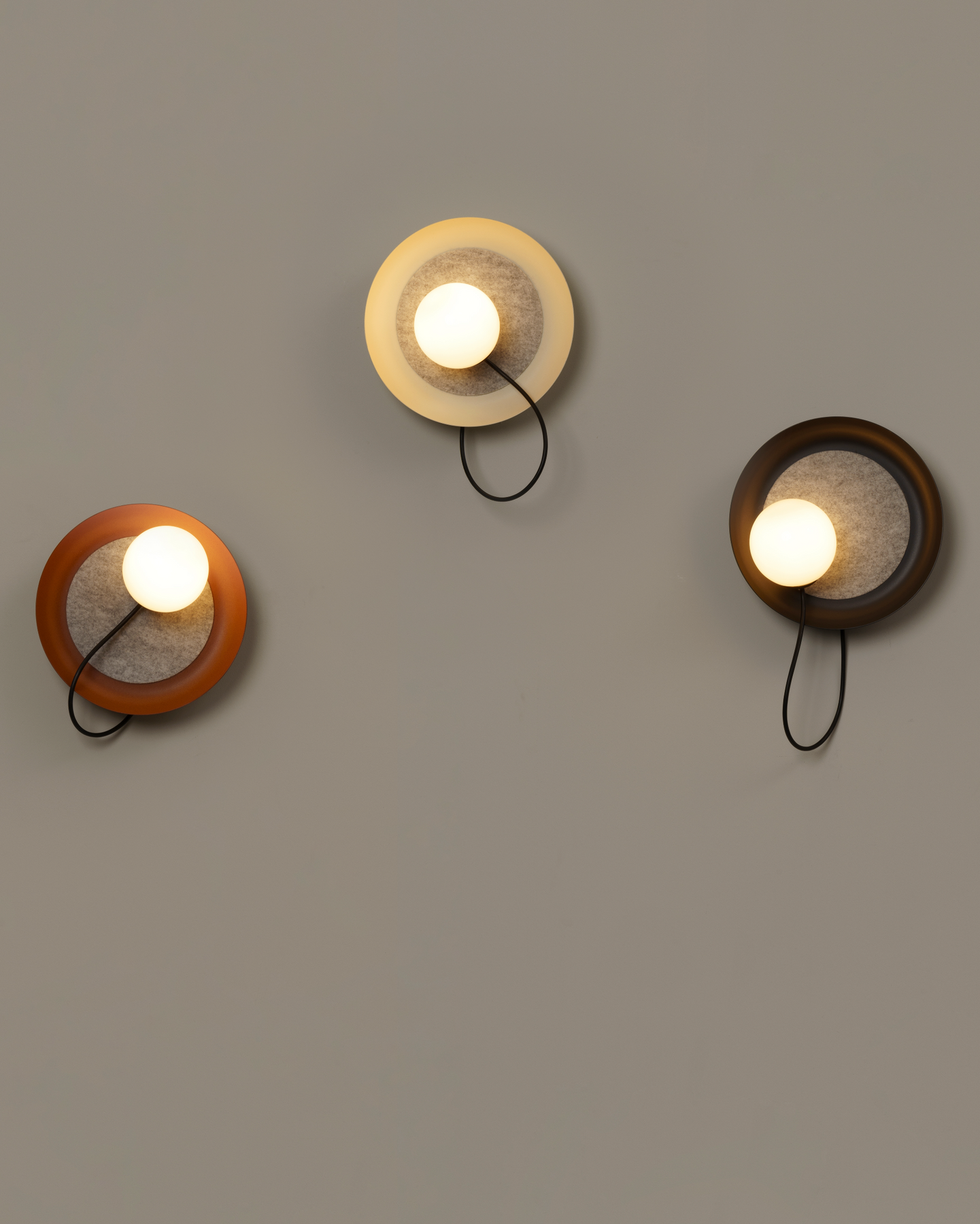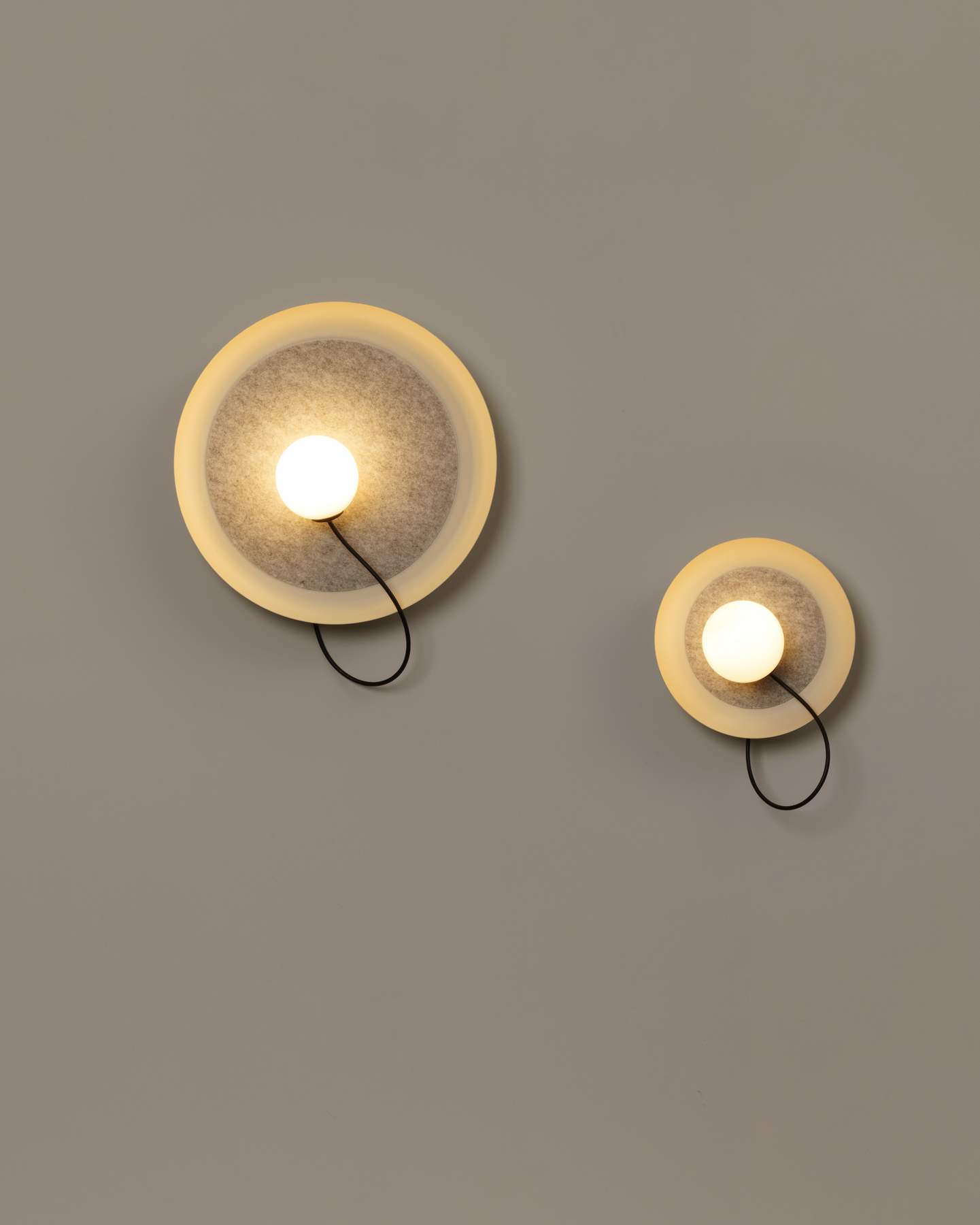 This steel design is admired for its minimalistic aesthetic combined with its multi-functional lighting purpose. Available in Small or Large this design features sound absorption felt and a unique magnetic glass diffuser. The magnet within the glass diffuser can be lightly moved around the felt fabric to create the desired lighting effect. Bringing a sense of calm and balance this wall light is noted for bedside, hallway or living room installation. The fitting can work well with Japandi inpsired and Mid Century Modern styled spaces.