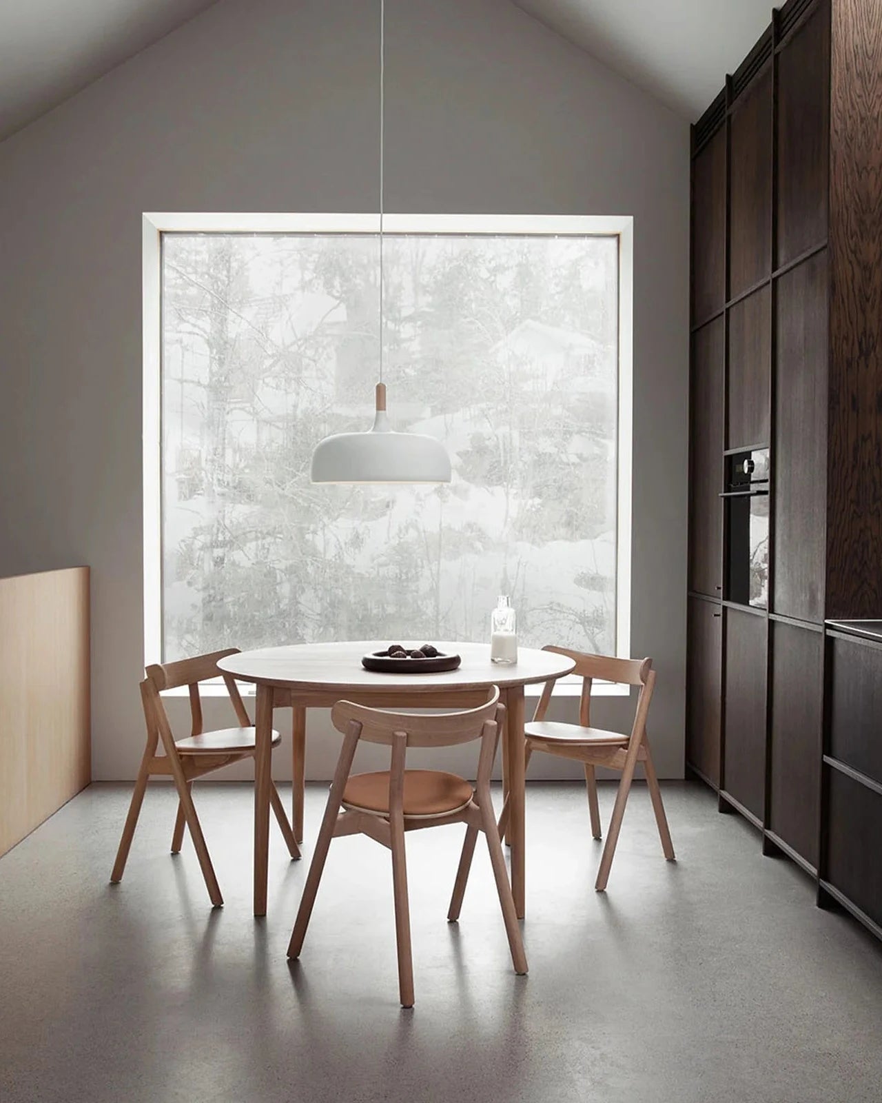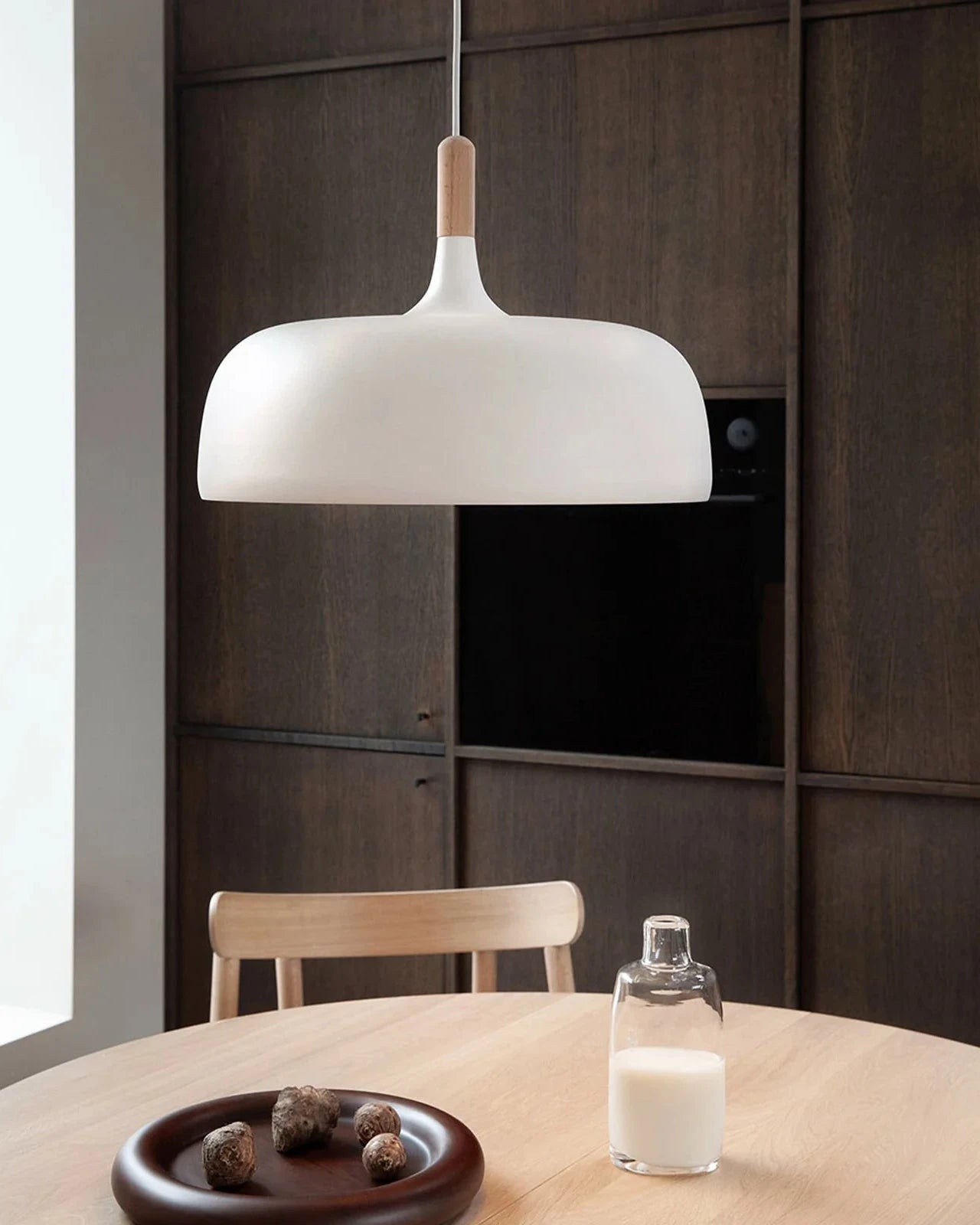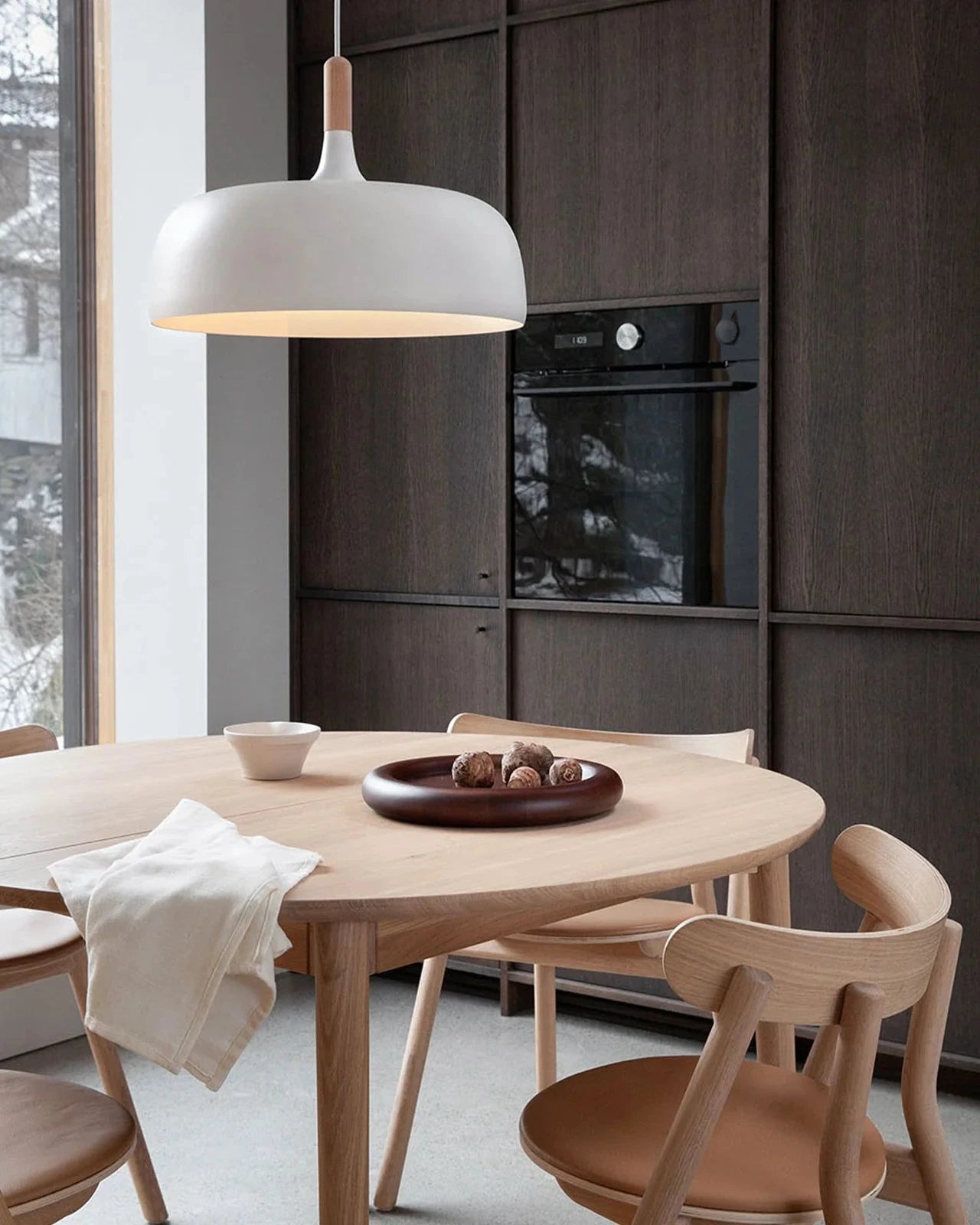 If you’re shaping a Nordic-inspired interior or simply looking for a distinctive feature light, this design brings together natural timber and a refined metal shade for a balanced, modern expression. The timber softens the overall look, while the white interior helps reflect light evenly across surrounding surfaces, adding clarity and warmth to the room.