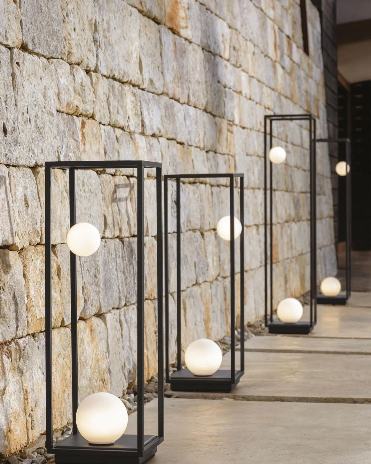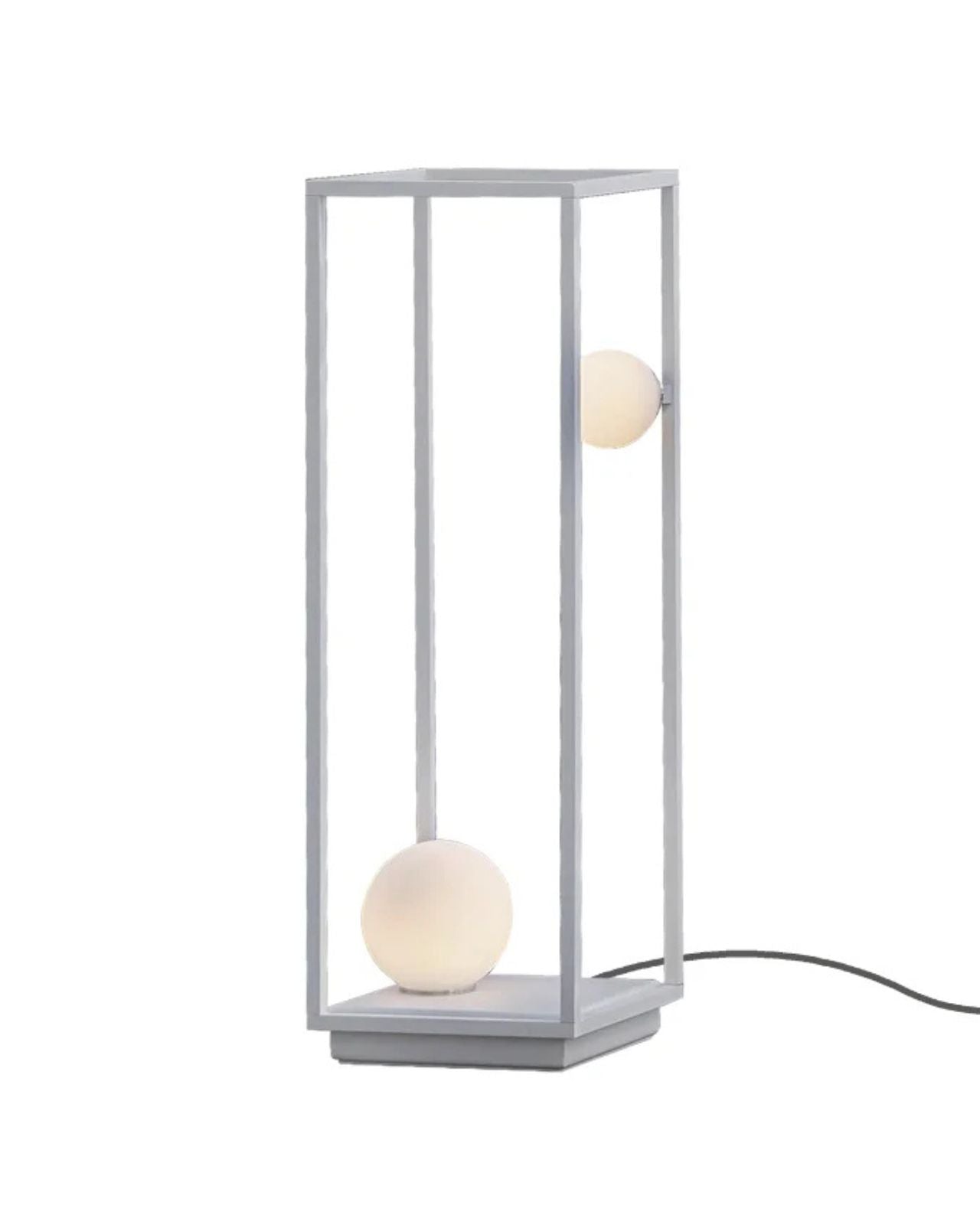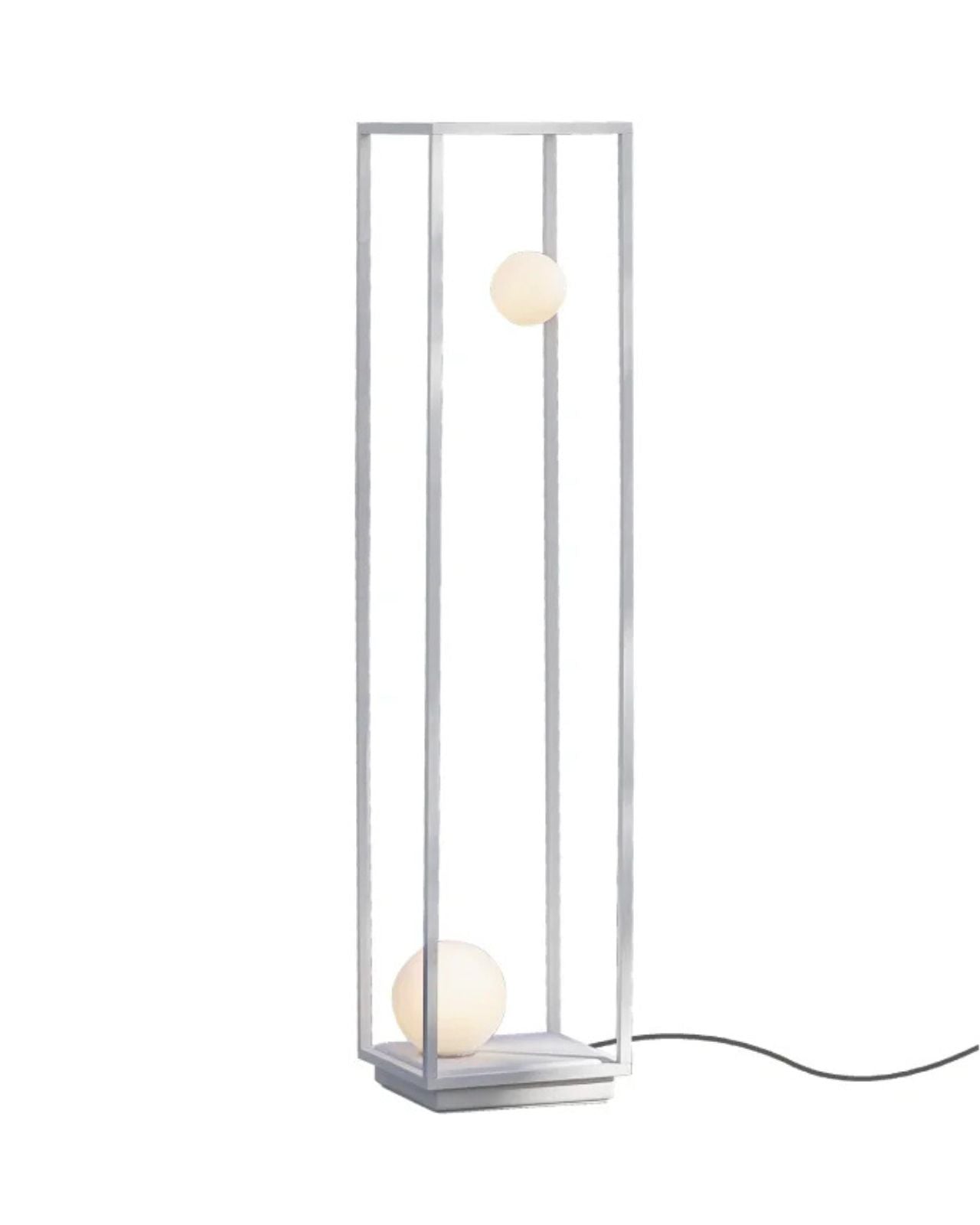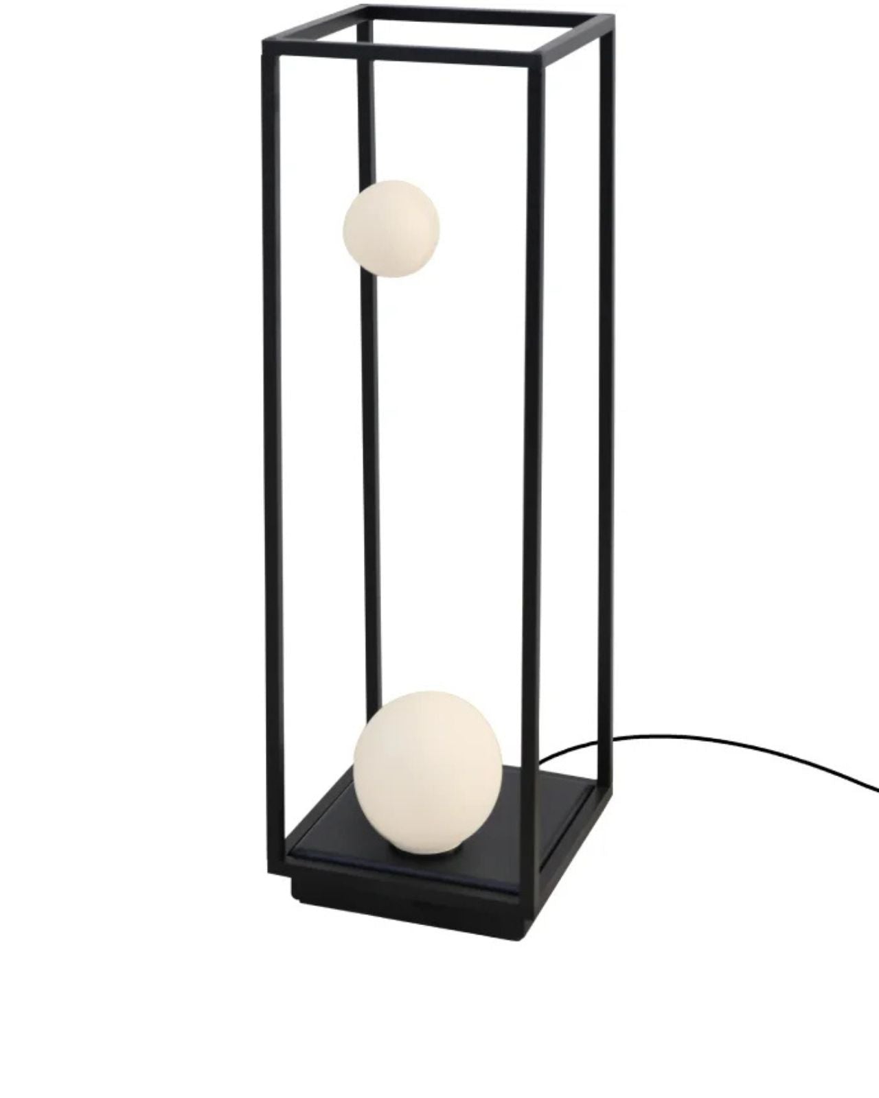 Remicnent of two beads sliding along an abacus this Italian design is made from a matte white or black aluminium frame and two blown glass diffusers. Each glass diffuser houses a 3000K LED emitting warm indirect light. Featured with an IP65 rating its rectangular frame will enhance outdoor entertainment areas, gardens and entranceways. Available in a small or large.
