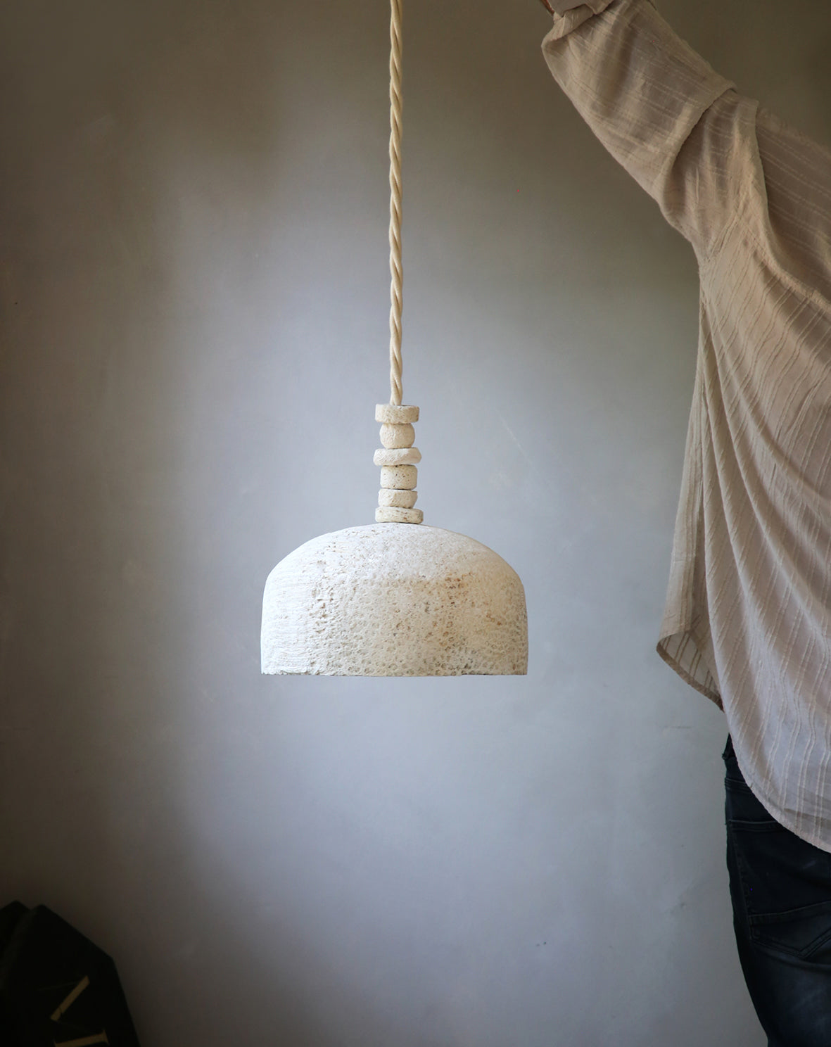 Fossil Coral Dome Hanging Pendant | Small | Jute Rope