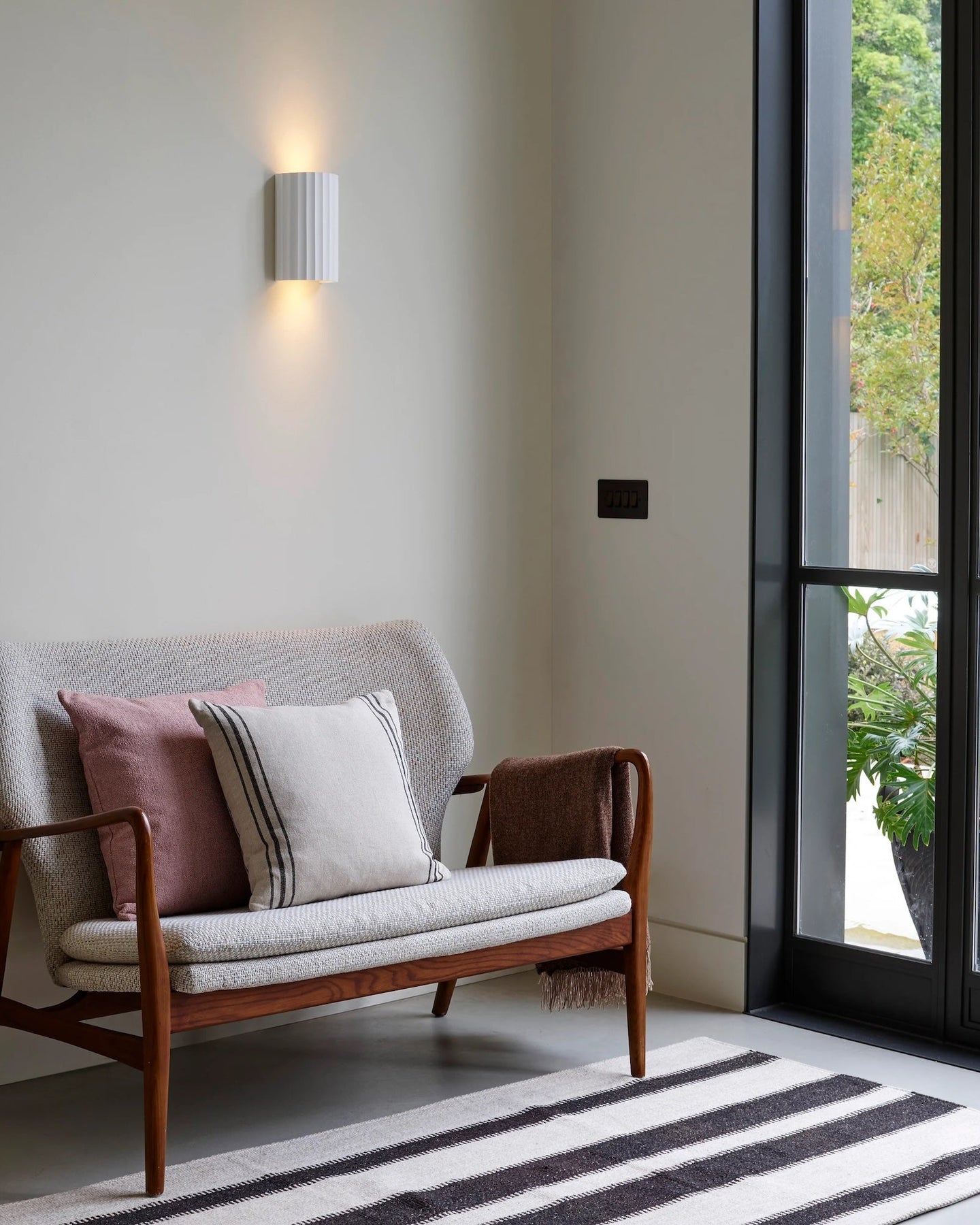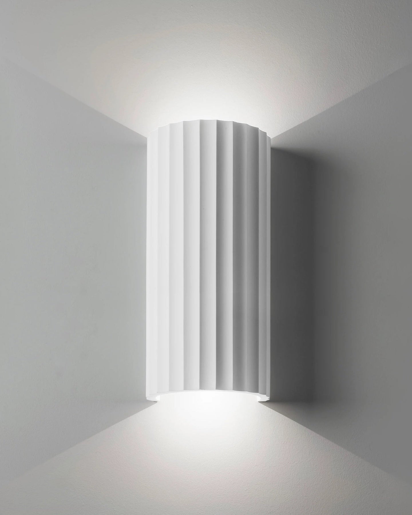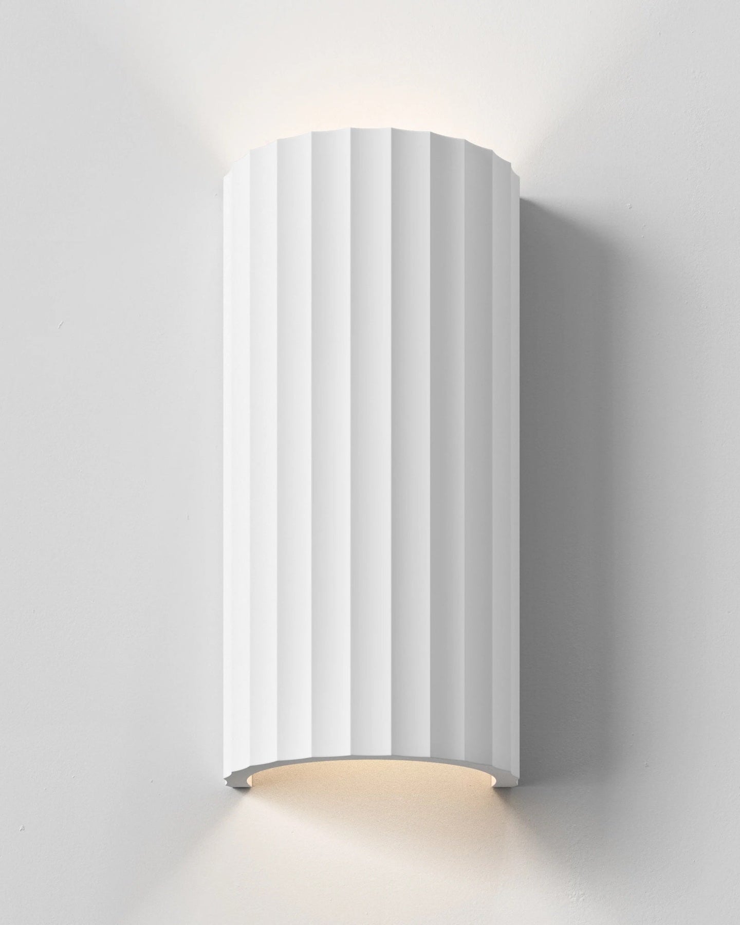 A simple yet multi-functional wall light boasting an on-trend rounded, demi-cylinder, ribbed silhouette. Light plays with the fixture to bounce off the top and bottom in order to create a playful and interesting effect that is both contemporary yet timeless.