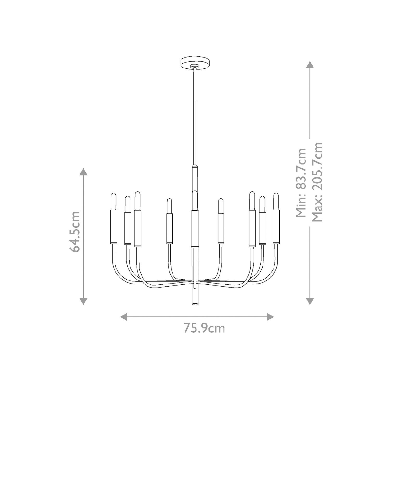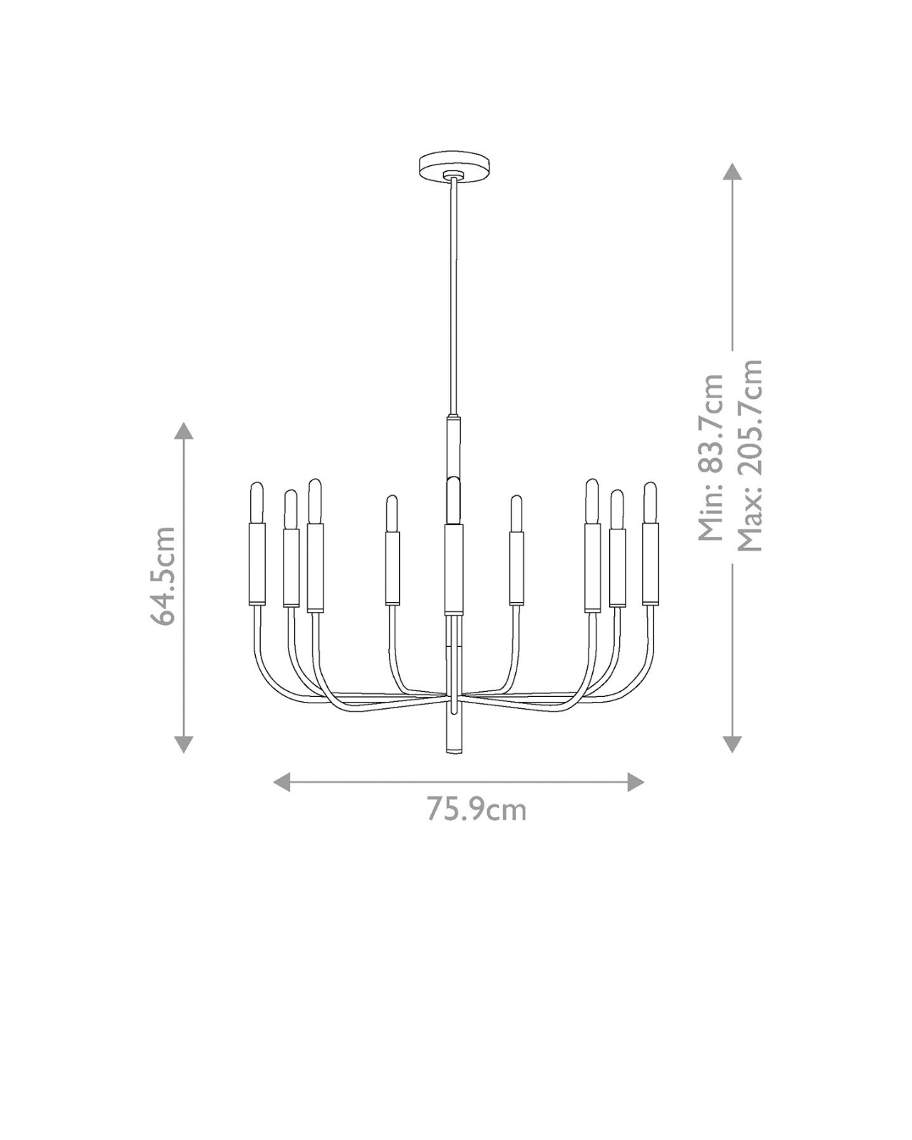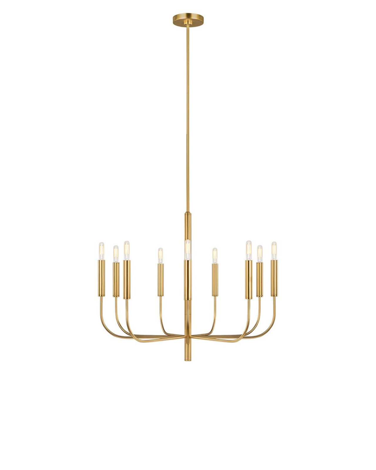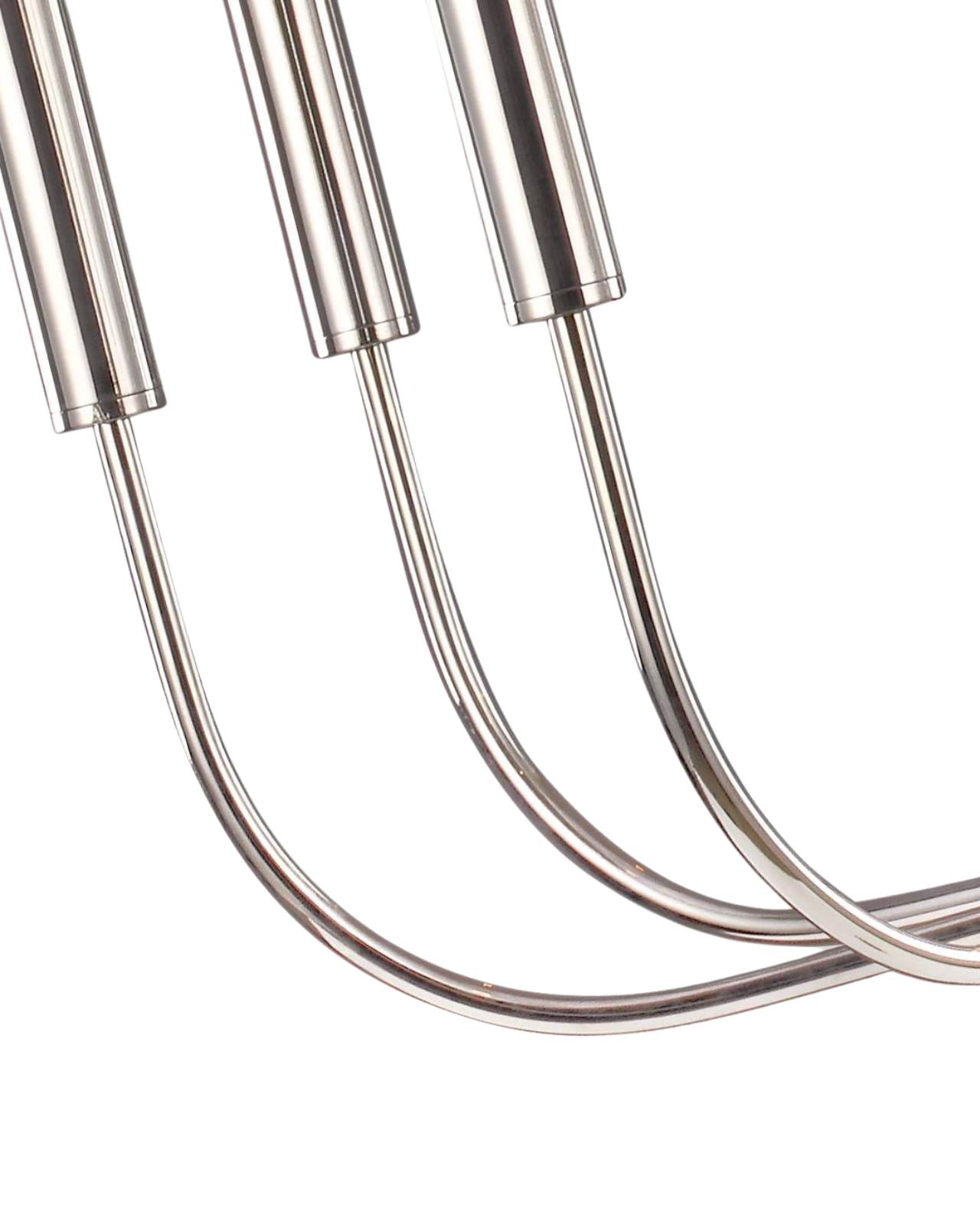 This design makes a statement with its gorgeous elongated tubular arms available in burnished brass and polished nickel. This modern chandelier has a minimalist appeal and a clean silhouette and will be a statement piece for your dining room, living room, bedroom or any space.