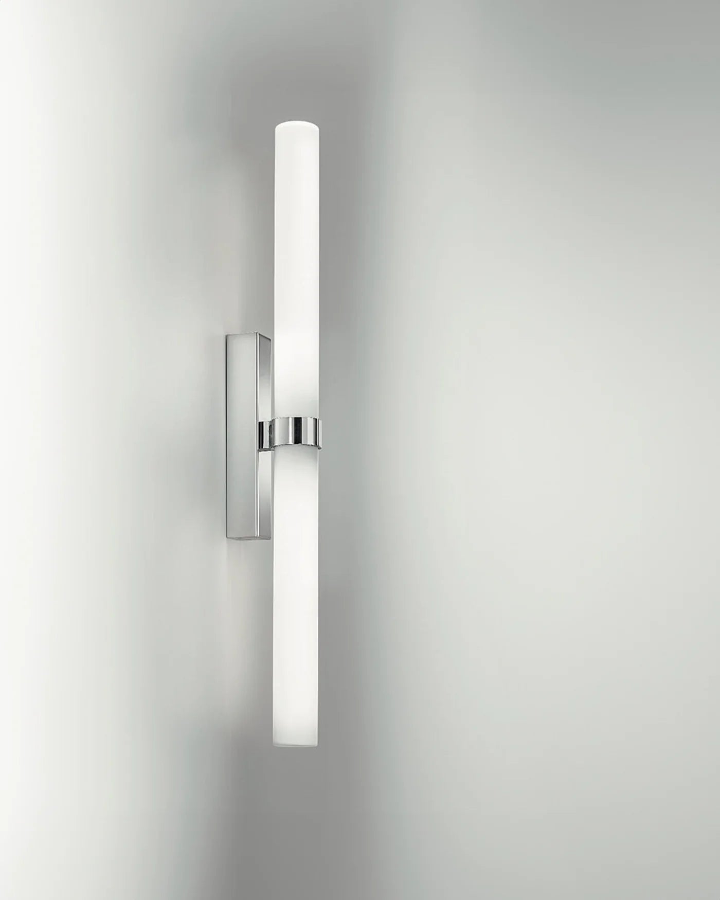 This Italian handmade design boasts elegance and is made from the highest quality materials. Featuring an opal triplex blown glass cylinder with a satin finish, this light is closed on the top for an 'all light' effect. Its application of an innovative screw system allows for easy installation. This design is available in different sizes and can be mounted vertically or horizontally. Featured with a 3000K LED light source.