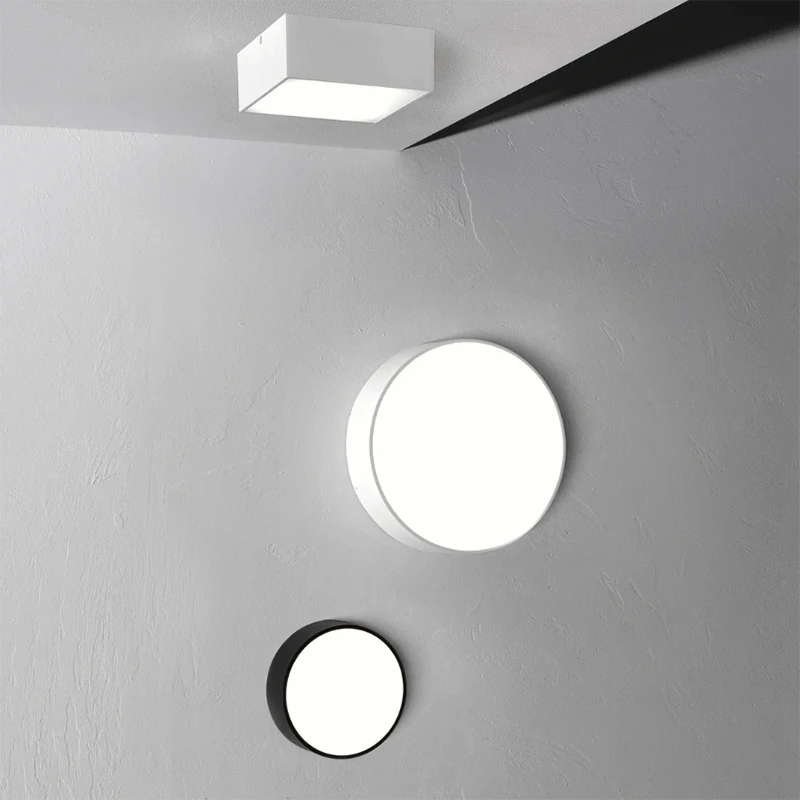 This chic simplistic round wall light uses LED to fill a room with a warm and cosy glow. The minimalistic light is designed as a round, box and is available in two colours, black and white. Perfect for bedrooms, office spaces and living spaces, suited to any modern and minimal interior style.