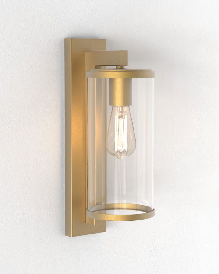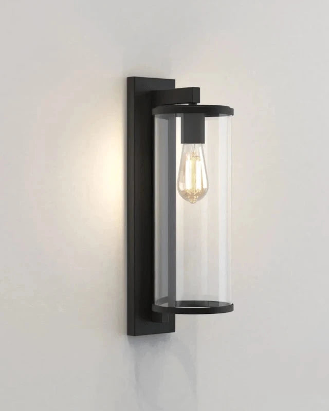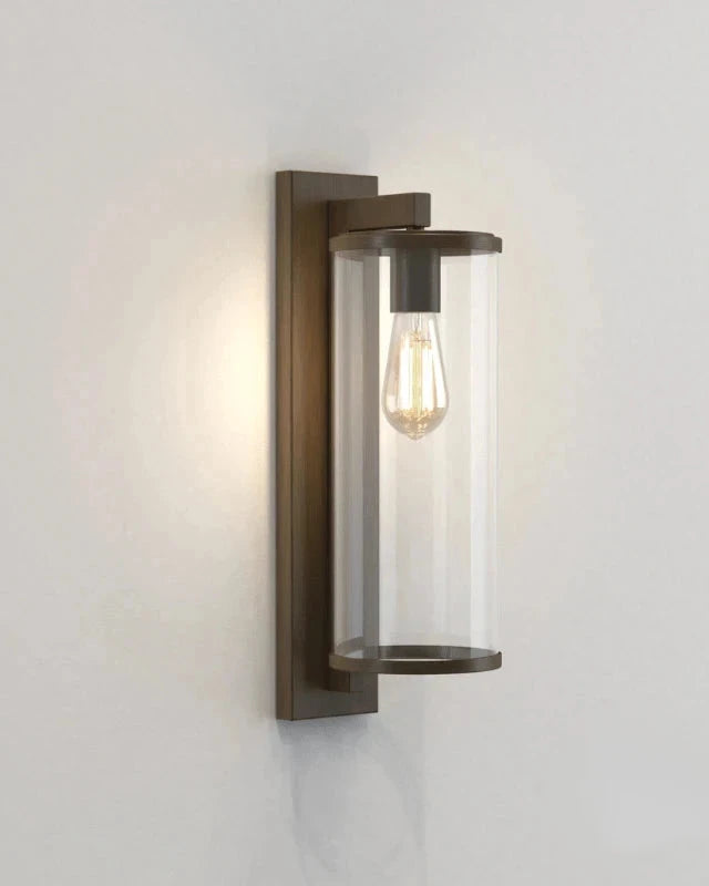 The Modern Lamp Wall Light is a refined fitting that combines timeless design with durable craftsmanship. Featuring a tall metal frame in Antique Brass, Bronze or Textured Black, this elegant fixture encloses a cylindrical clear glass shade that allows a clear, bright light. With an IP23 rating, this fitting is ideal for sheltered outdoor spaces such as porches or covered patios, offering both decorative charm and practical illumination. This charming light pairs with classic or contemporary architecture, bringing understated sophistication to any space.