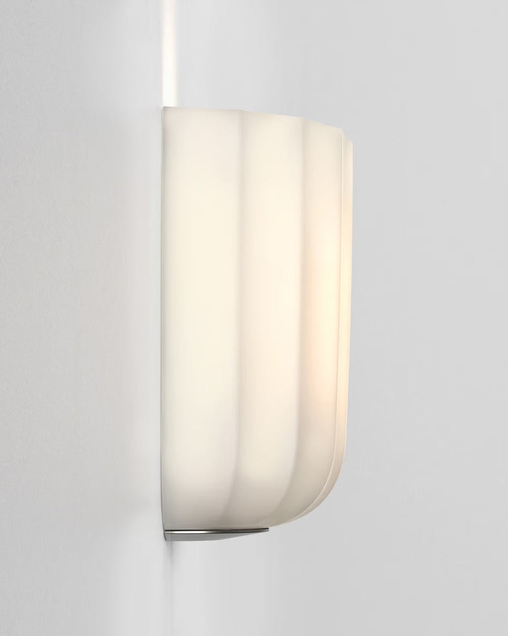 The Pleated Glass Wall Sconce takes inspiration from the fluted columns of classical Greek architecture, bringing timeless elegance into contemporary interiors.