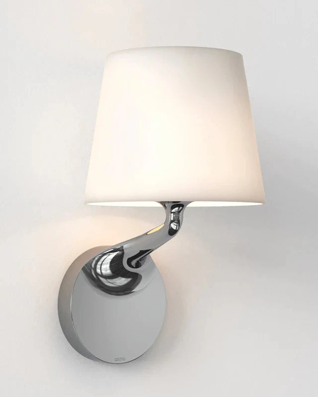 With a shade made from two layers of blown glass and supported by a stylishly curved arm, this wall light is perfect for placement on both sides of a mirror or for lining a hallway. Available in a matte black or polished chrome finish, this light spreads glare-free illumination providing an atmospheric glow suited for contemporary or traditional-styled interiors. This light comes with a 3-year guarantee.