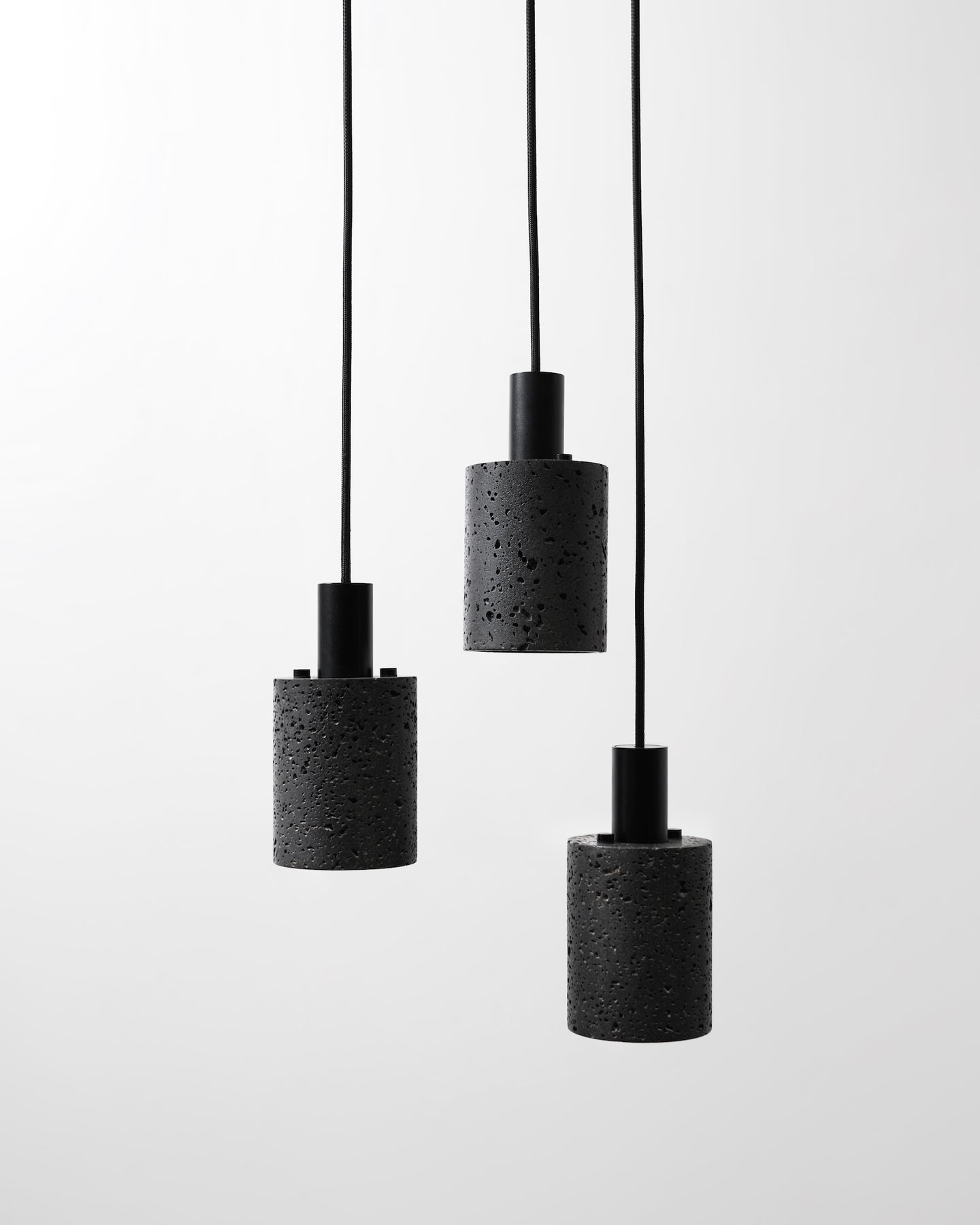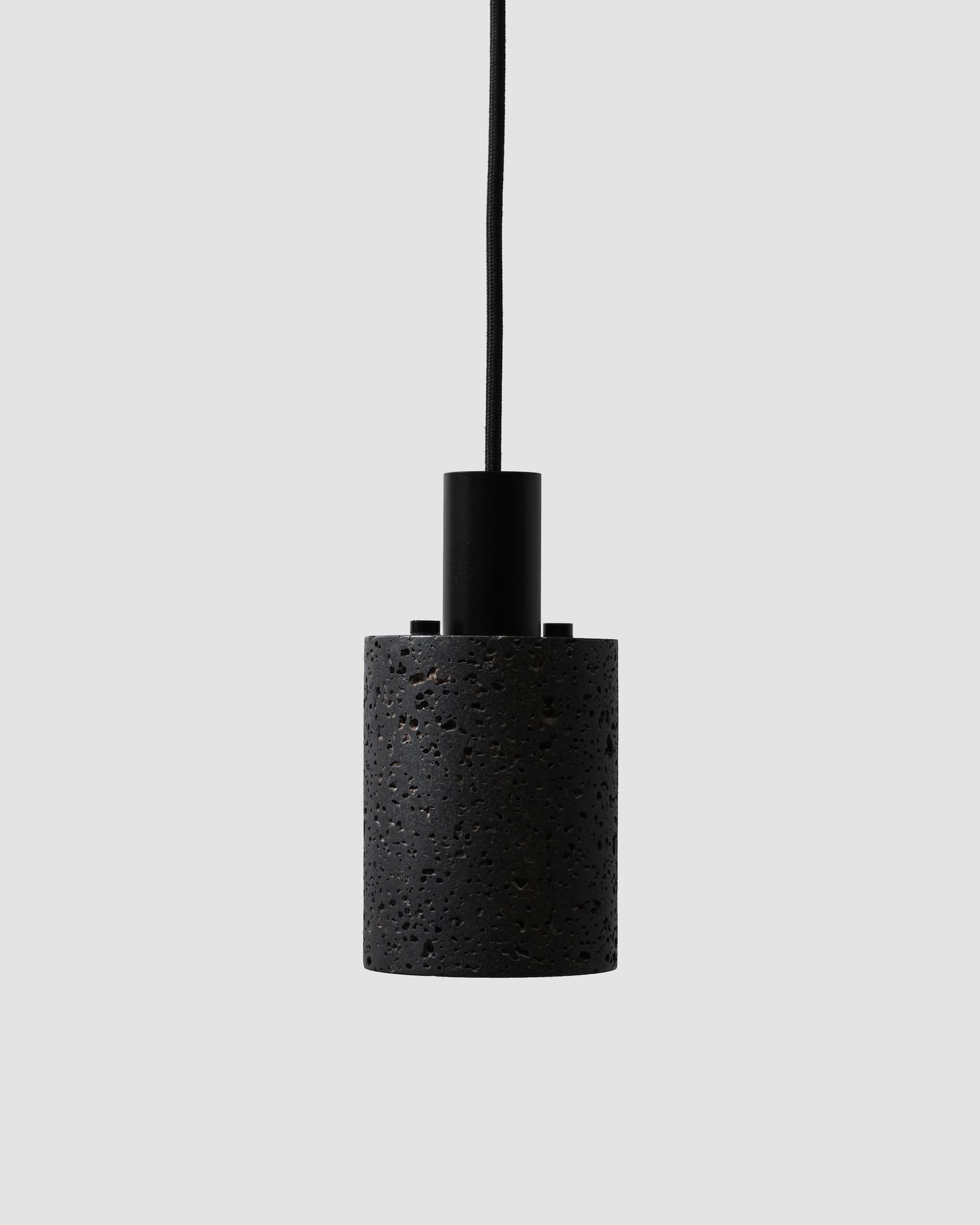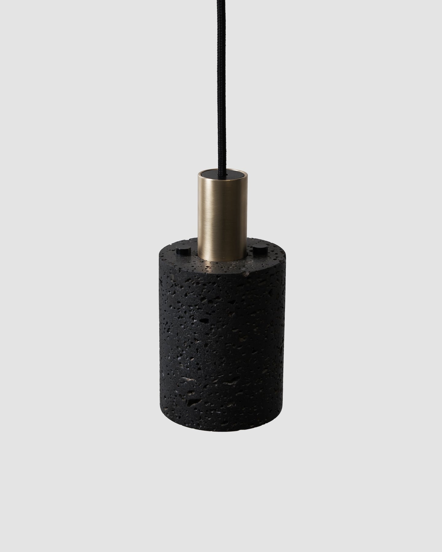 The N Lava Pendant Light is a minimalist fitting, made up of stacked cylinders with exposed elements. Available with Brass or Black Anodised details, this pendant fuses Industrial and Organic materials, combining metal components and lava stone. With the bold black colour of the lava stone, this pendant is a statement piece, and looks great above a kitchen bench or dining table in a row of three or four.