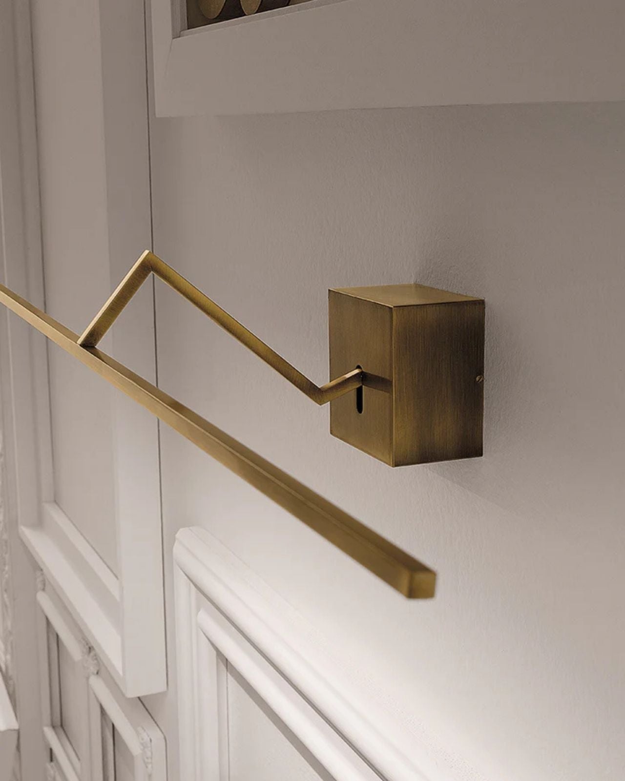This Brushed Brass Linear LED Wall Light provides modern functionality in an elegant form. The head is adjustable on a horizontal axis allowing for direct or indirect light emission, making it ideal for illumination of wall art. Fine aluminium construction with brushed brass finish.
