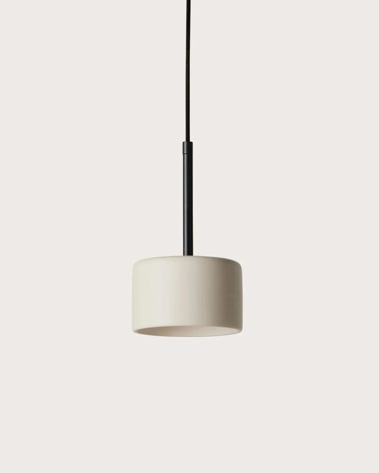 Crafted in Spain, this pendant light is both minimalist and contemporary, making a stunning statement when suspended over a dining table, in a living room or a bedroom. The sleek metal rod is available in black, white, chrome or gold finish and will contrast with the white or taupe hand-painted cylindrical ceramic shade creating a nice visual effect. The Compact Cylindrical Ceramic Pendant Light will bring elegance and understated calm to any modern or contemporary interior space and will spread a pleasant and glare-free soft light in the surroundings.