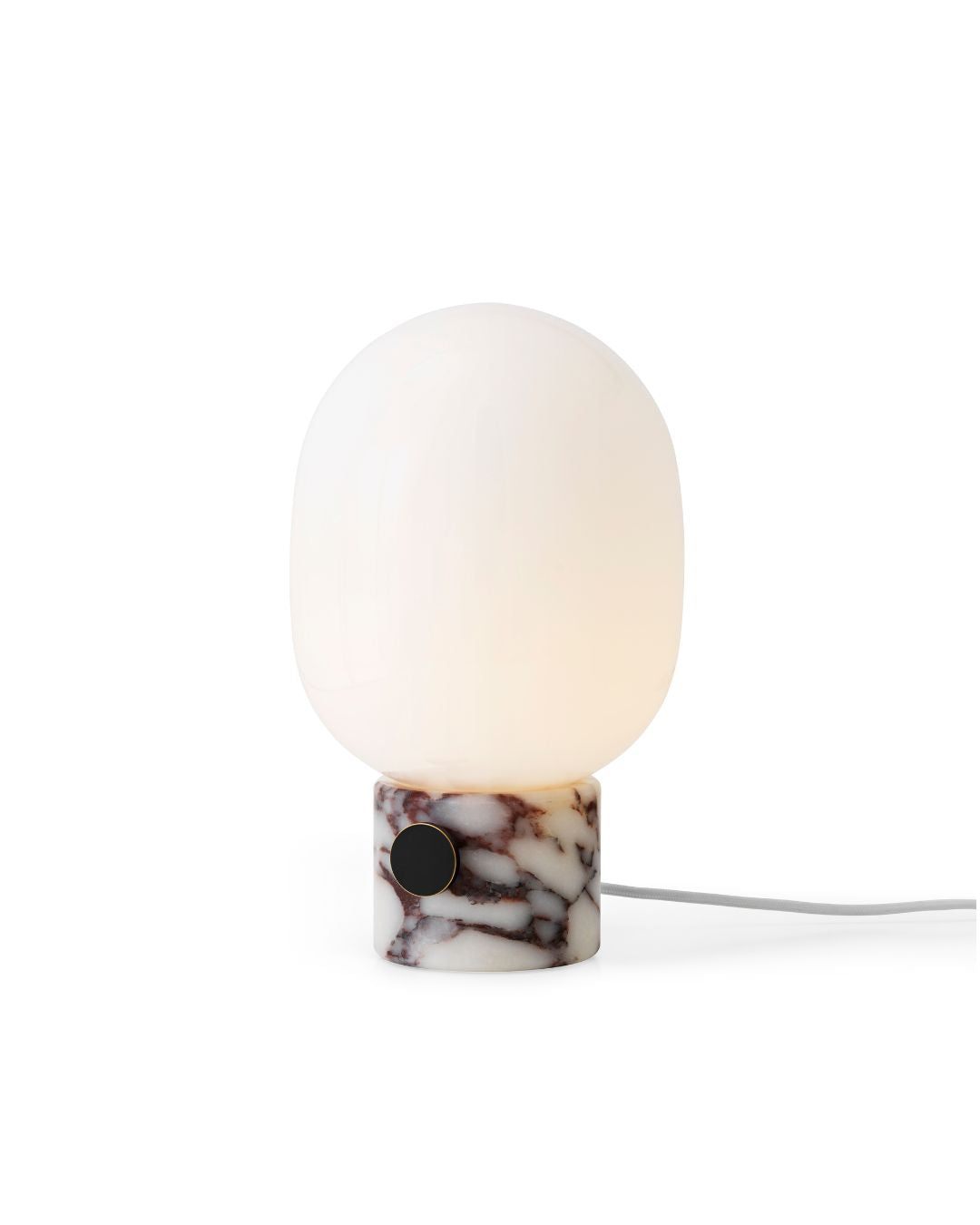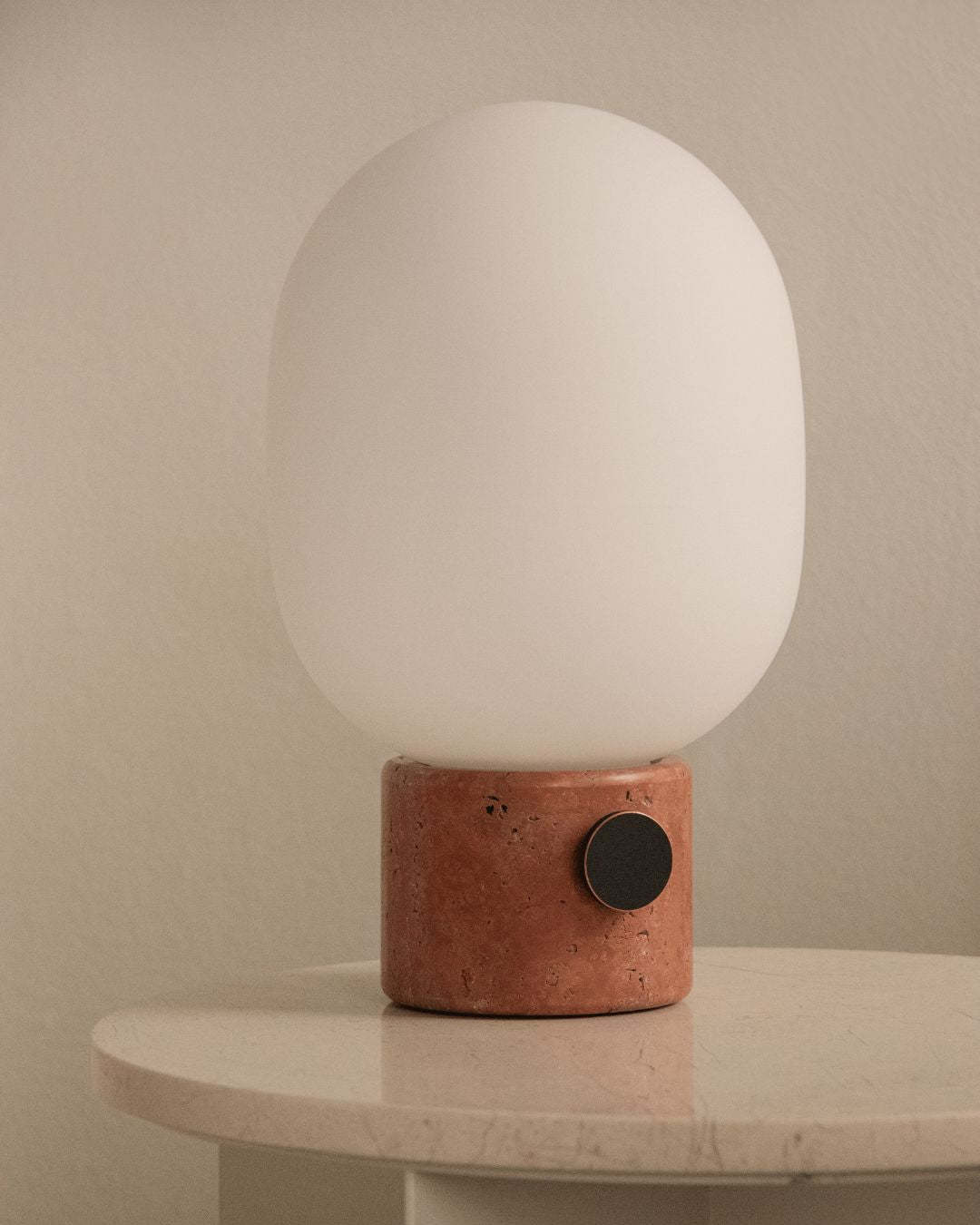 This refined table lamp pairs a softly rounded opal glass shade with a solid base offered in three unique stone finishes. Designed by Swedish designer Jonas Wagell, it introduces a contemporary Scandinavian elegance to a variety of interiors. Perfect for bedside tables or desks, it casts a gentle, even light that creates a welcoming atmosphere.