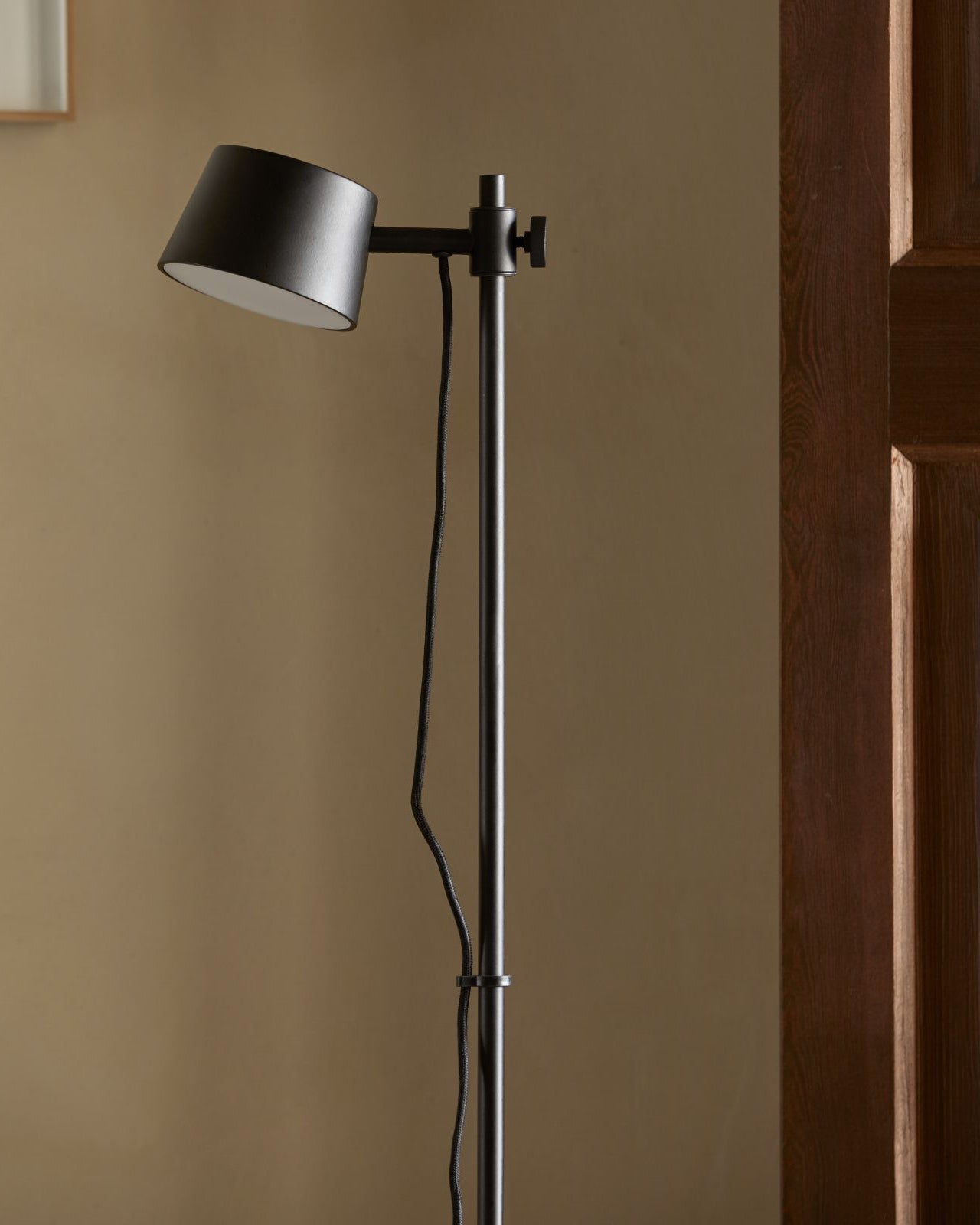 Sleek and minimalist in design, this floor lamp features a weighted base rounded cylindrical base and a rounded shade. Made from steel, finished in a matte black coating, and supplied with a 8W LED globe with a warm 2700K illumination. To be placed to suit a variety of interior spaces, and the Perfect addition to Living Rooms, Beside the Bed or Hallway.