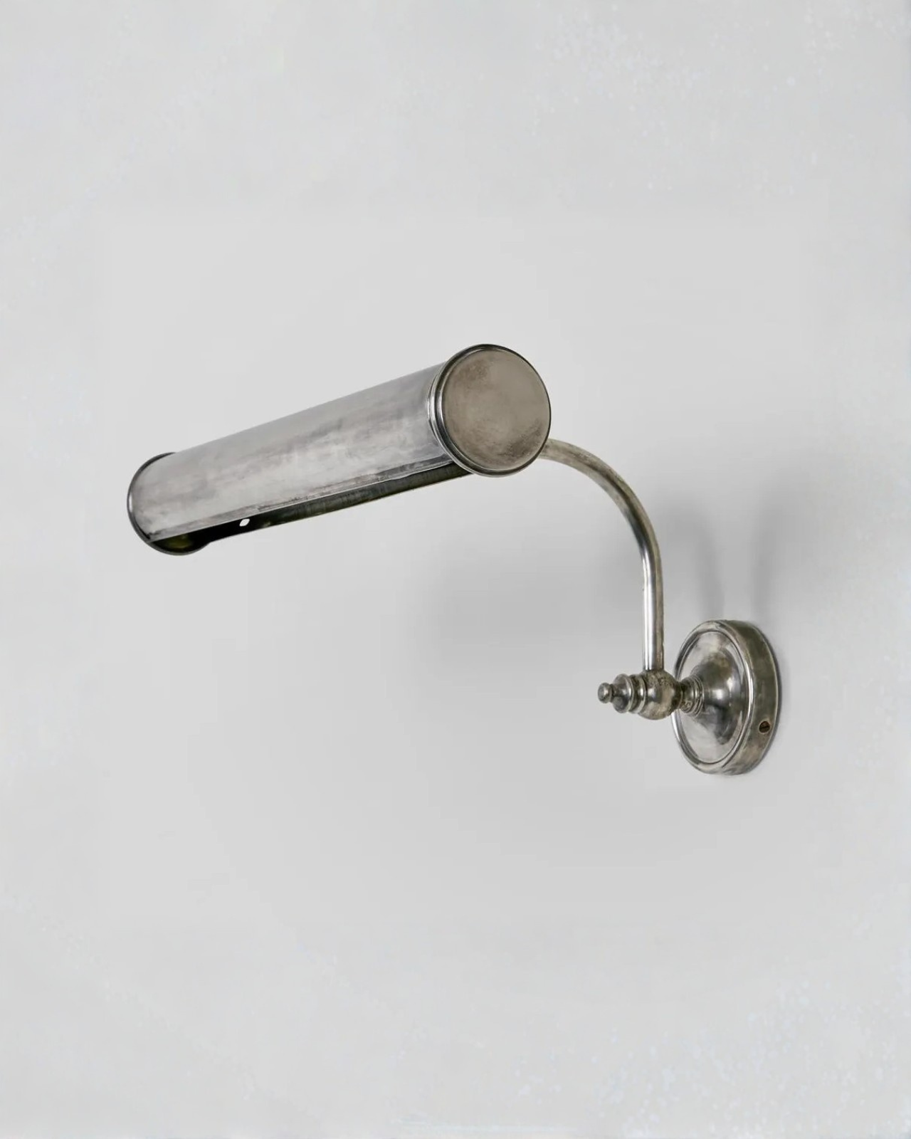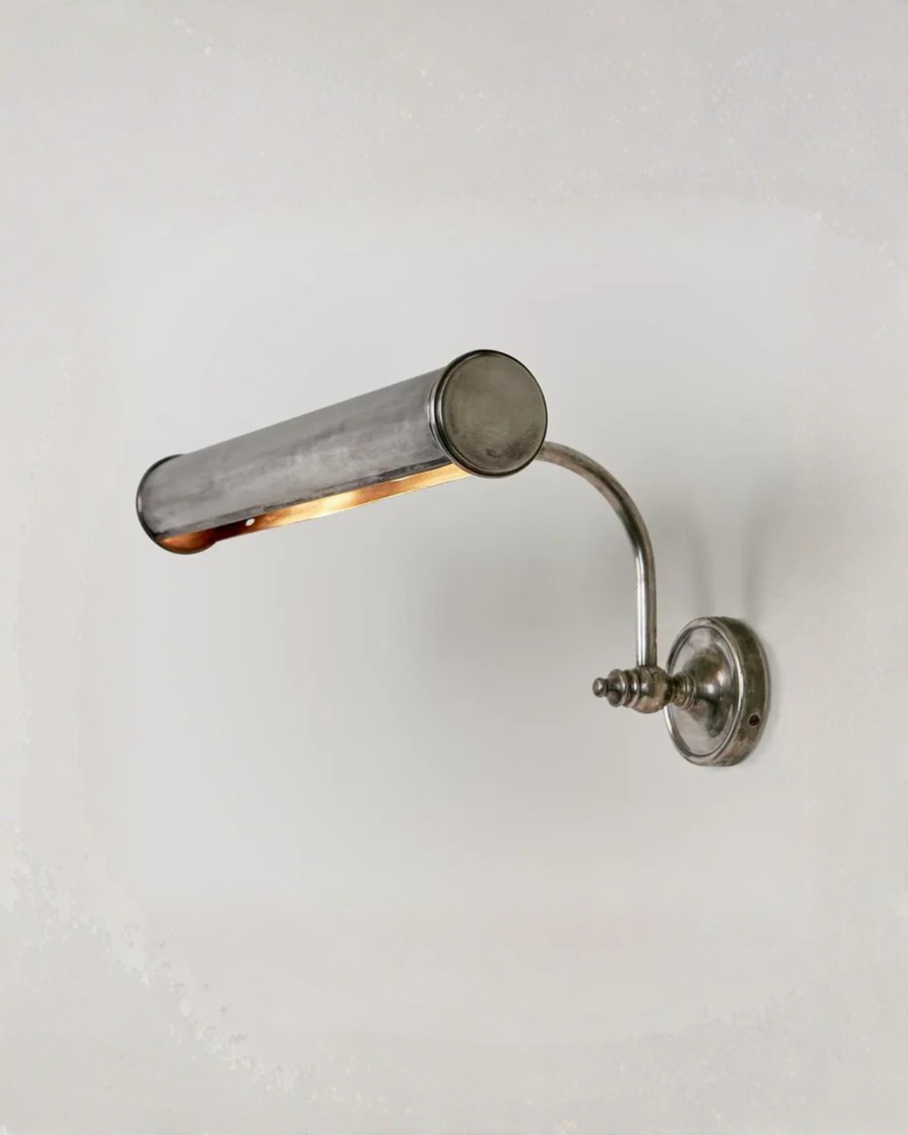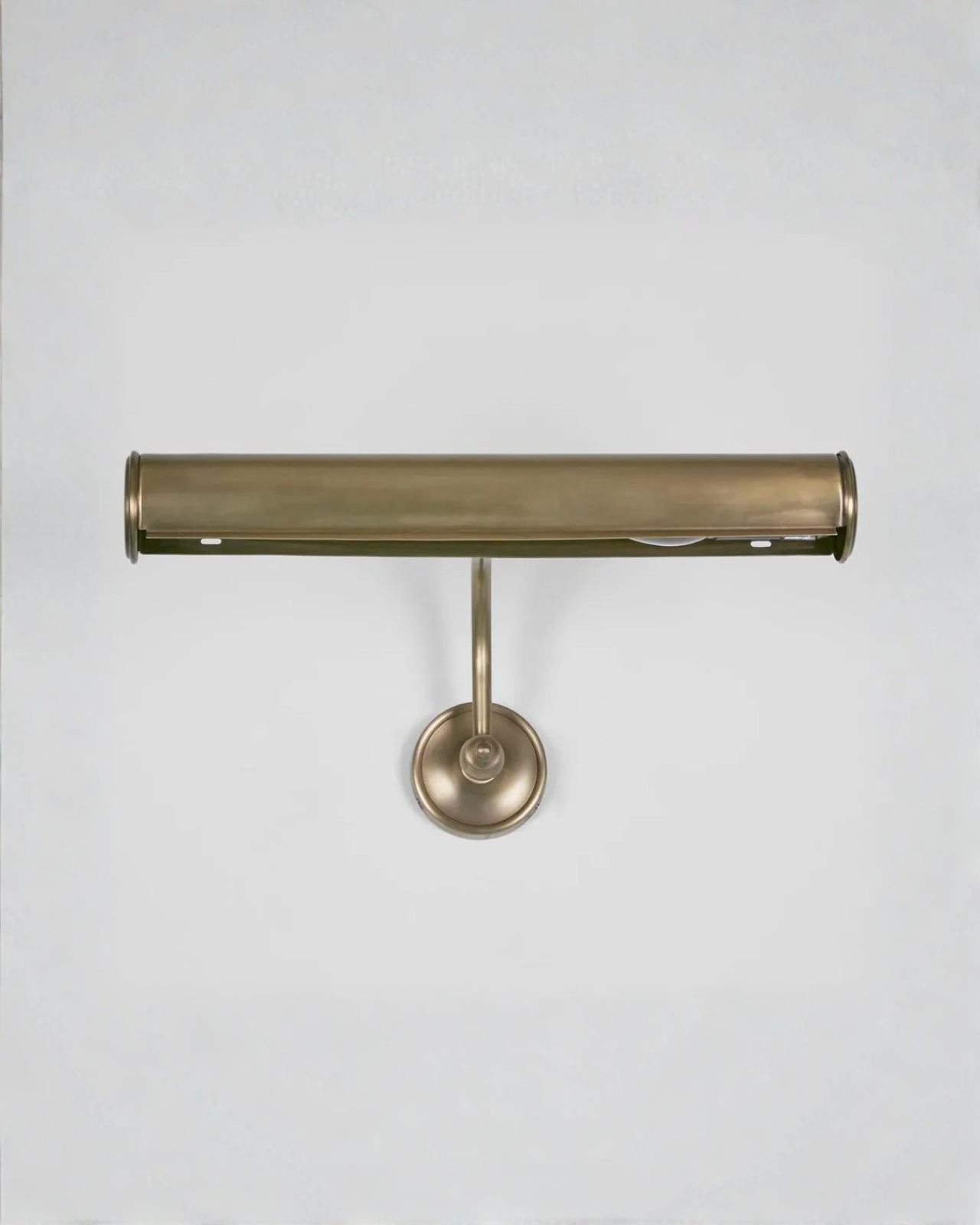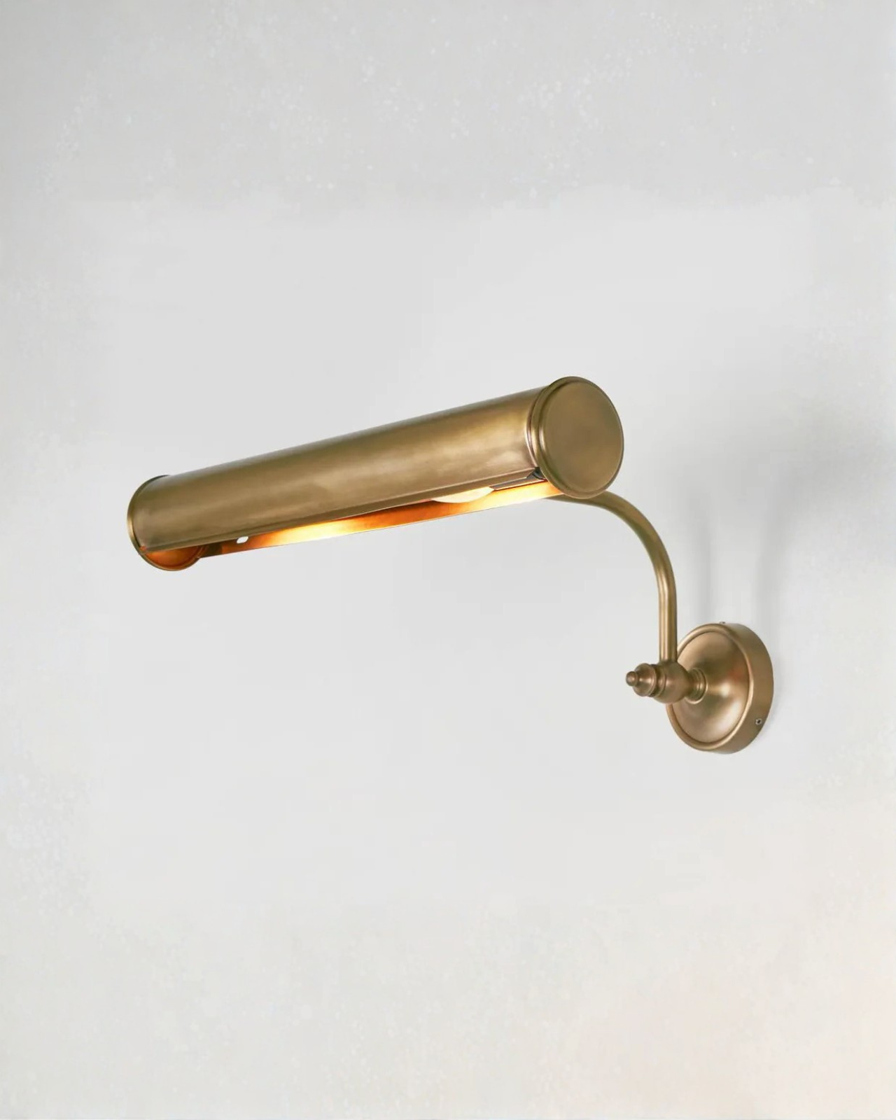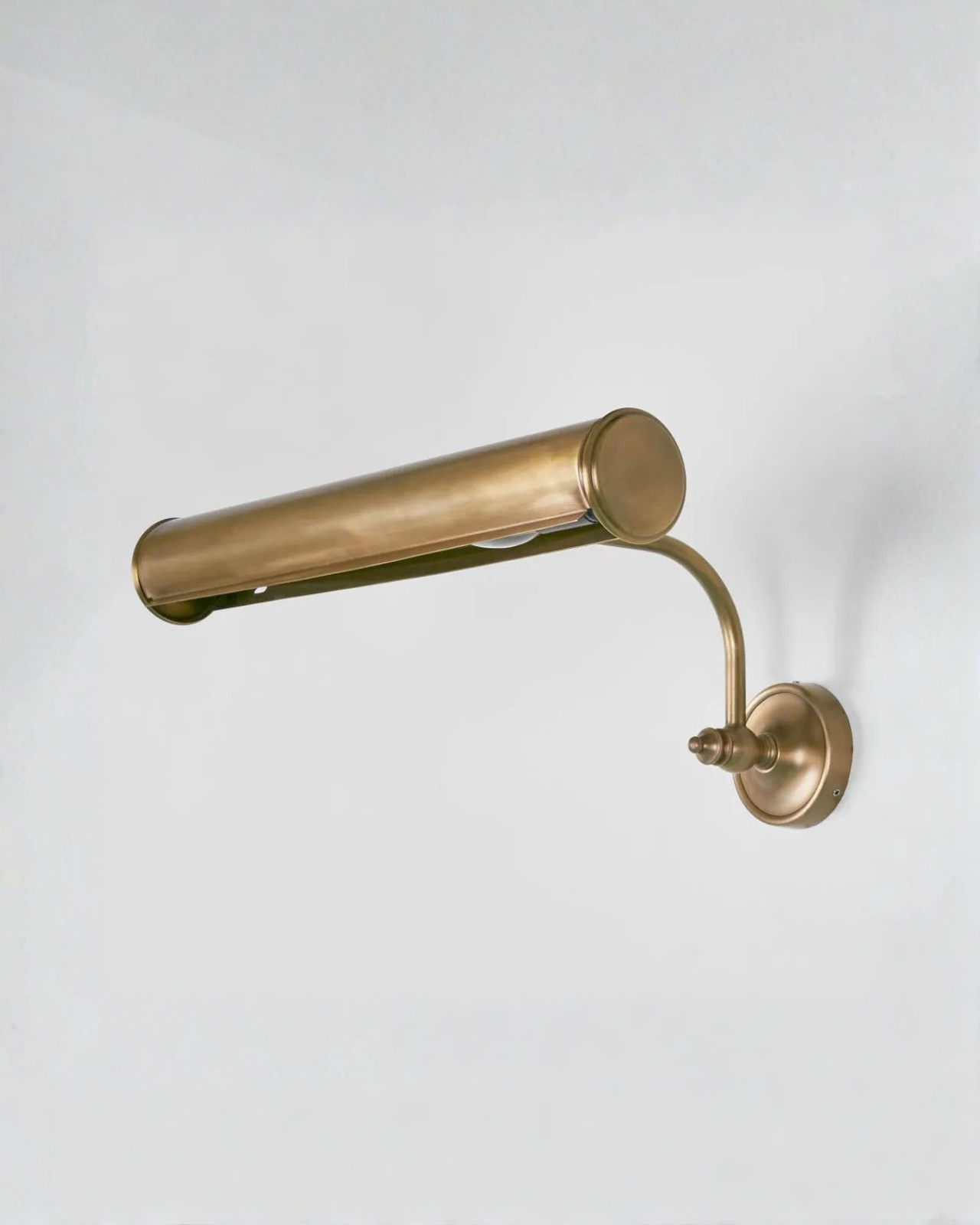Traditional interior wall light drawing inspiration from classic library and bankers lamps. The adjustable join allows you to position light wherever needed, making this a great choice for lighting pictures or bookshelves. The solid brass construction and choice of two rustic finishes ensure timeless charm and quality.