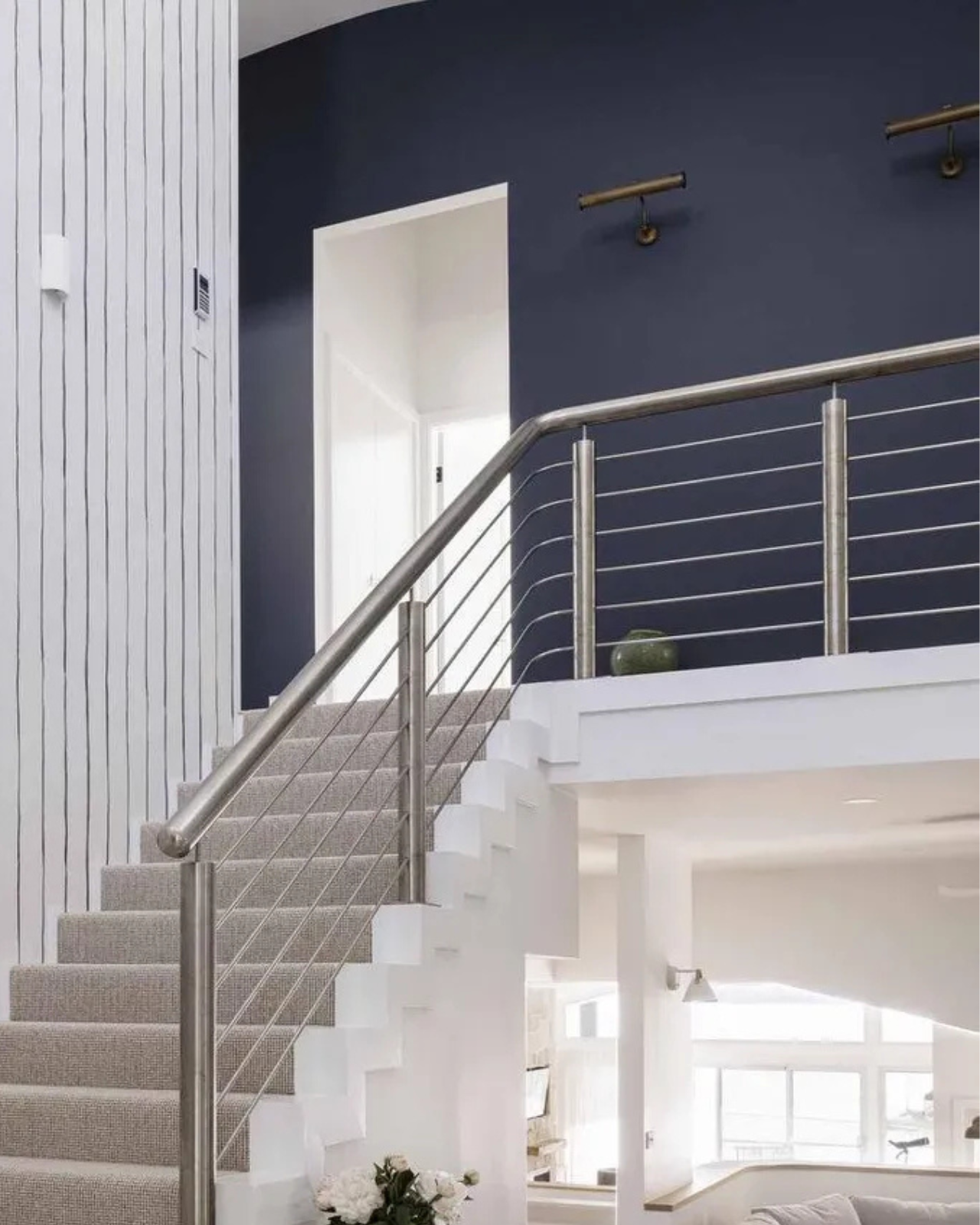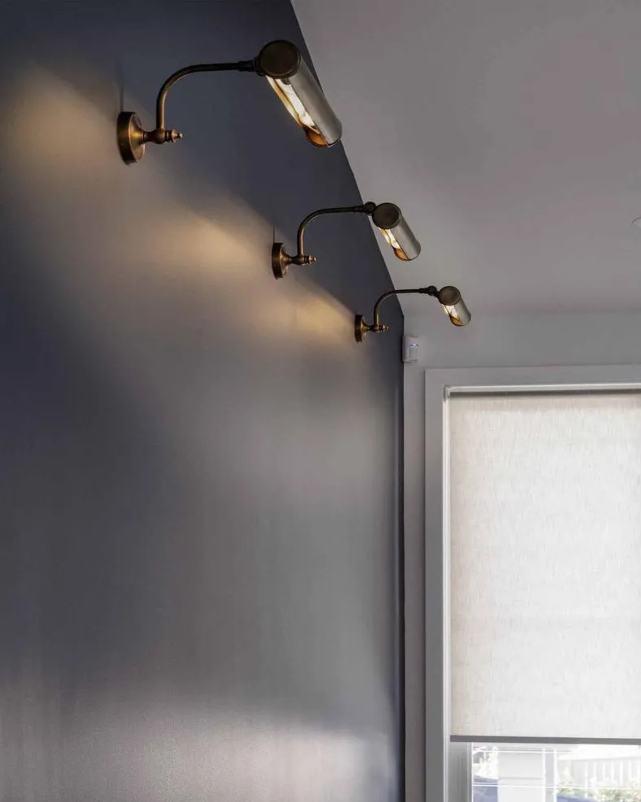 Modern wall-mounted light fixture on a gray wall with a window in the background