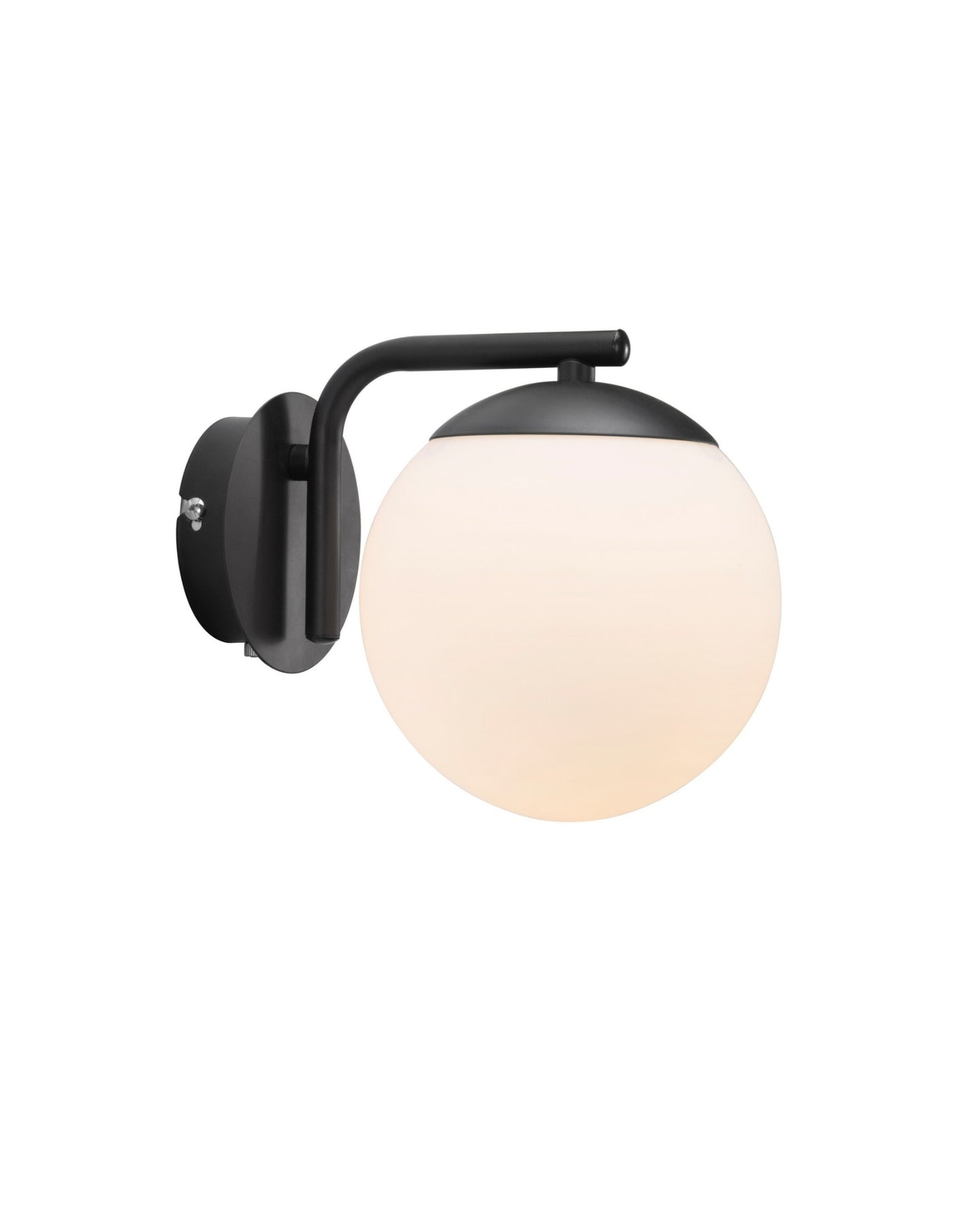 With its rounded opal glass orb shade and streamlined, smooth metal frame, this modern wall light brings a balanced, contemporary presence to interior spaces. Offered in brass or black metal framing, the design embraces modern warmth while maintaining a timeless simplicity. Due to each glass dome being mouth-blown, natural variations may occur, such as subtle textures and bubbles; these should be celebrated as they make each design unique.