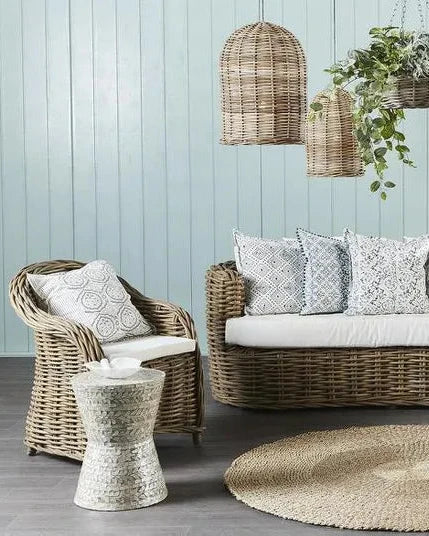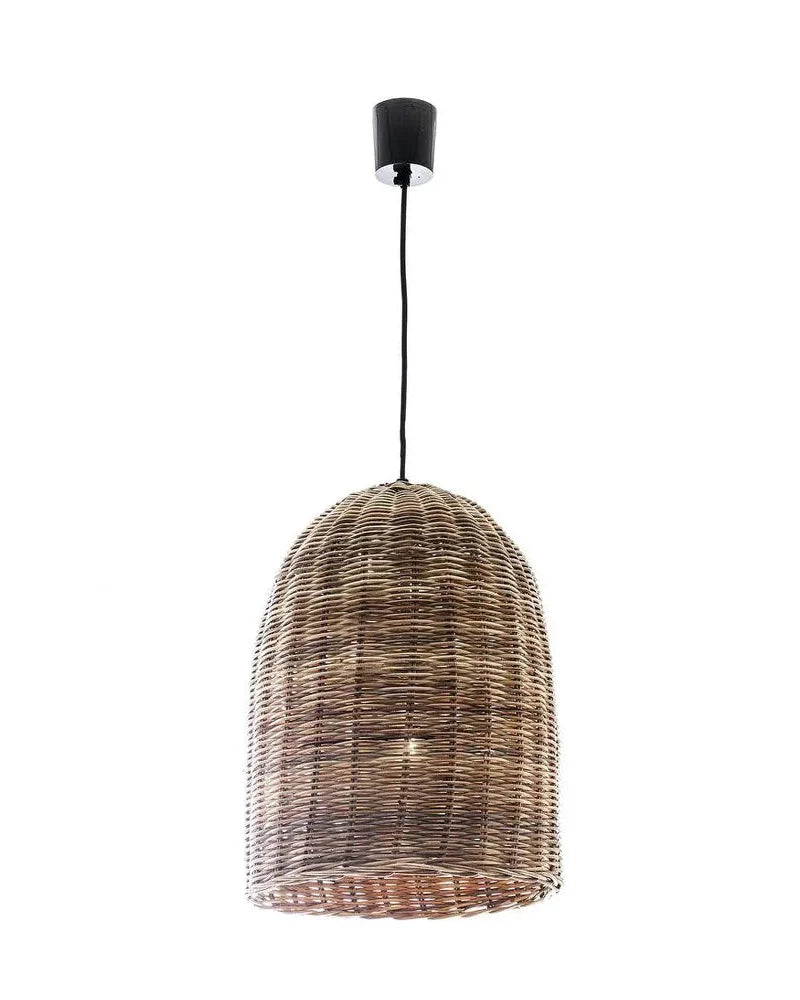 With its organic texture and curved silhouette, this bell-shaped rattan pendant light adds a relaxed, earthy aesthetic to any interior. Handwoven from natural wicker and suspended from a black cloth cord, it introduces warmth and character whether styled in coastal, bohemian, or contemporary spaces. The use of natural materials enhances a feeling of calm and connection, making it a timeless addition to dining, living, or bedroom settings.