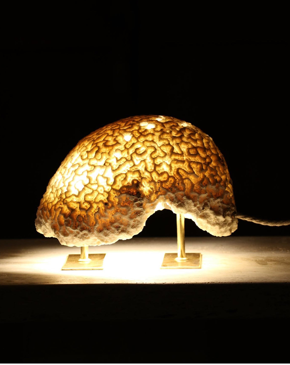 Discover Marovo Island Traders' Fossil Coral Brain Lamp collection, a homage to nature's serene beauty. Made from Fossil Coral, a unique natural stone formed over millions of years, these lamps bring a touch of rustic elegance to interiors. Marovo sustainably sources only the finest Fossil Coral from the Solomon Islands to ensure nature's craftsmanship shines through with every piece. Each light showcases variations of the stone's authentic character for a truly organic addition. Beyond its beauty, Fossil Coral is a reminder of the planet's fascinating geological history, once a part of ancient coral reefs, now fossilised. The collection speaks to the authenticity of coastal living, illuminating your surroundings with a warm inviting glow.
