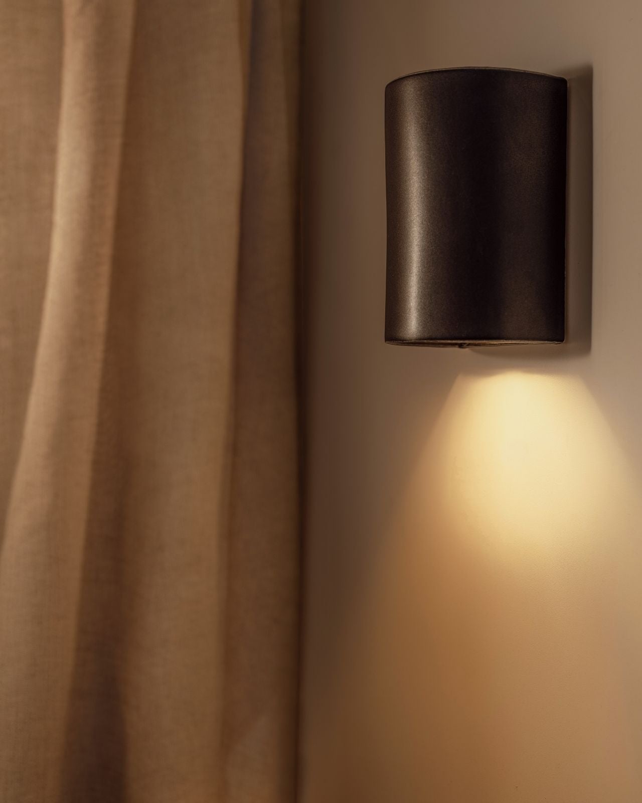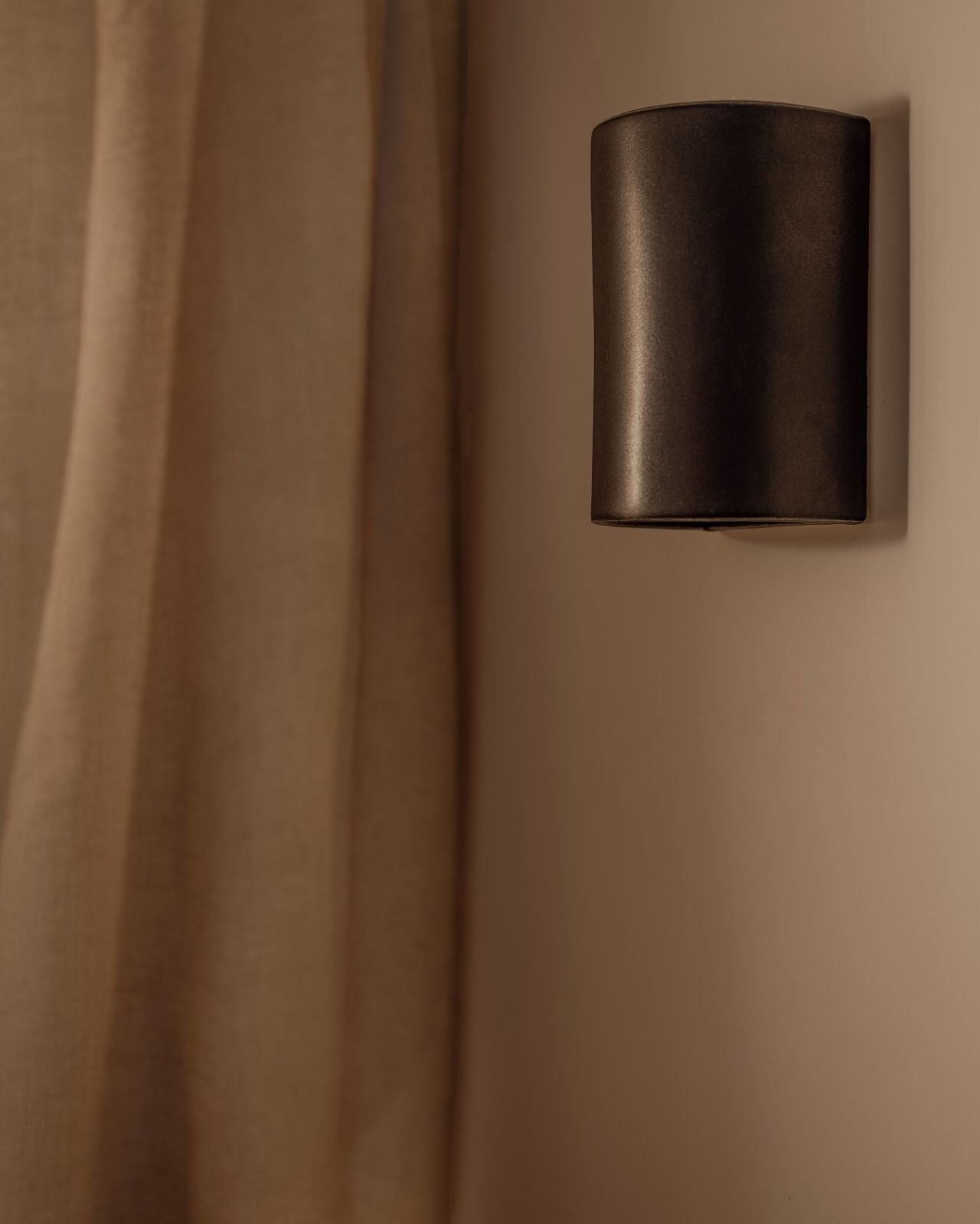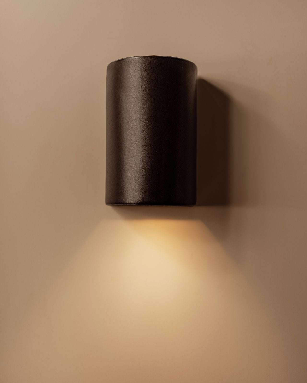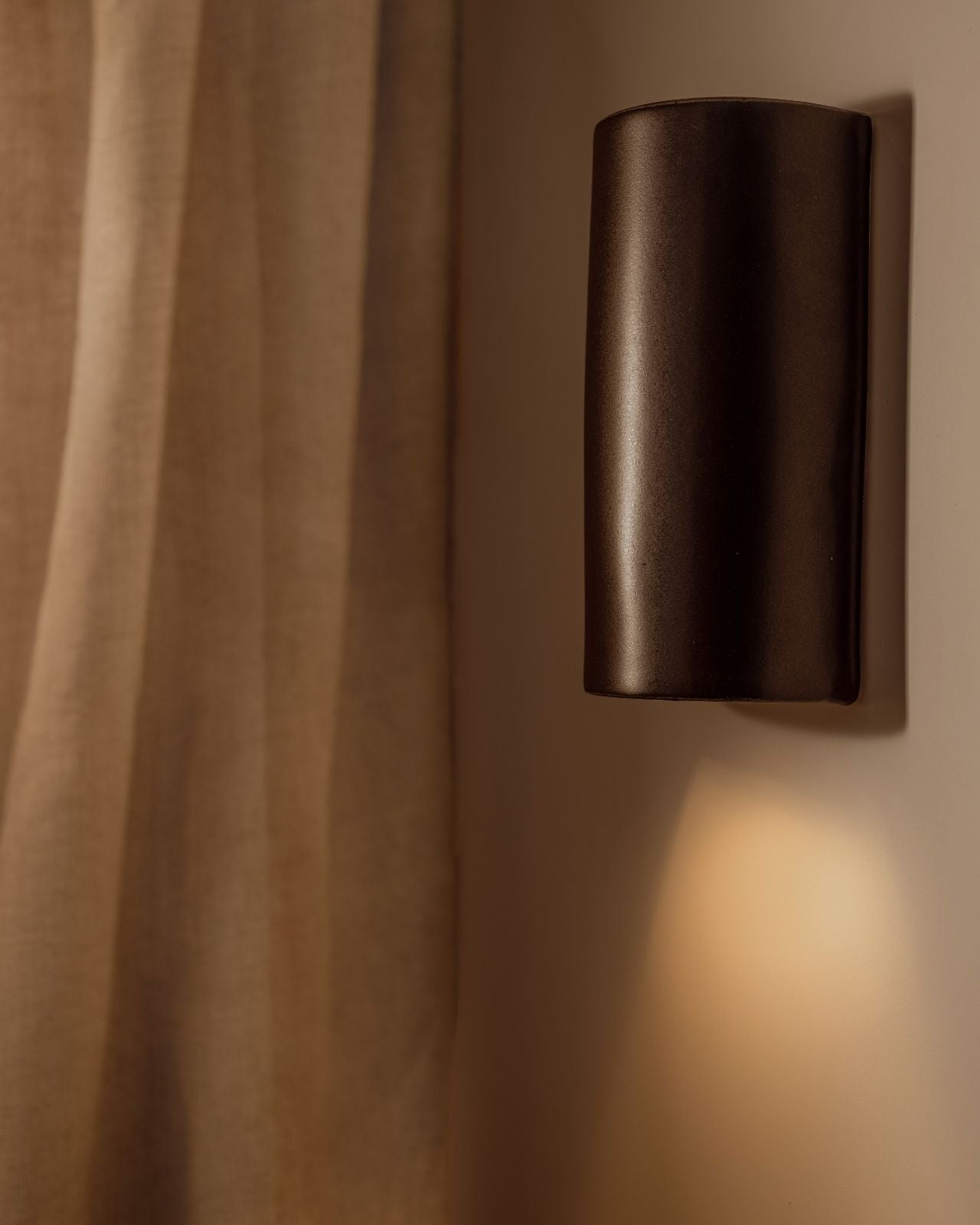 Setting a darker and atmospheric ambience to living rooms, bedrooms or hallways, this stunning slip-cast wall light is handmade from raw and natural ceramic in Tasmania and will spread a pleasant light downwards with a soft upwards glow. Encapsulating the architectural vision of Saxon Hall, a renowned Tasmanian architect, this short or elongated curved fixture will stand out on a timber or concrete wall with its captivating dark charcoal finish and its shimmering effect when bathed in sunlight, reminiscent of a metallic finish. To ensure a perfect fit against the wall, an electrical back plate is included.