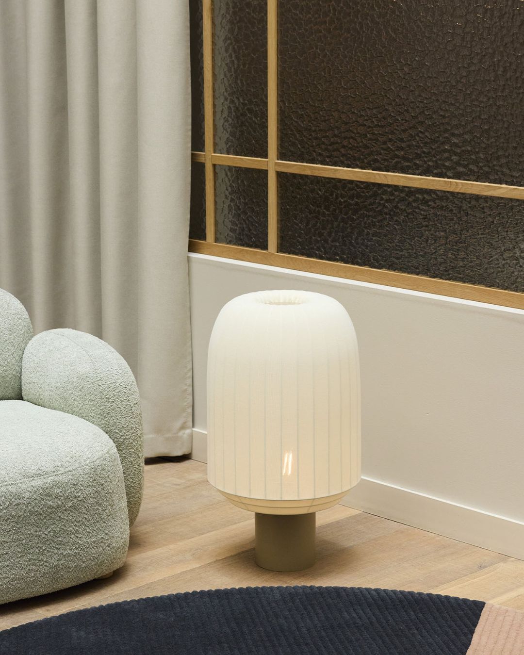 The Knitted Stretched Fabric Floor Lamp brings soft texture and gentle illumination to modern interiors. Designed with a slim, minimal frame and a generously sized knitted shade, this floor lamp diffuses light through its stretched fabric surface to create warm, ambient lighting.