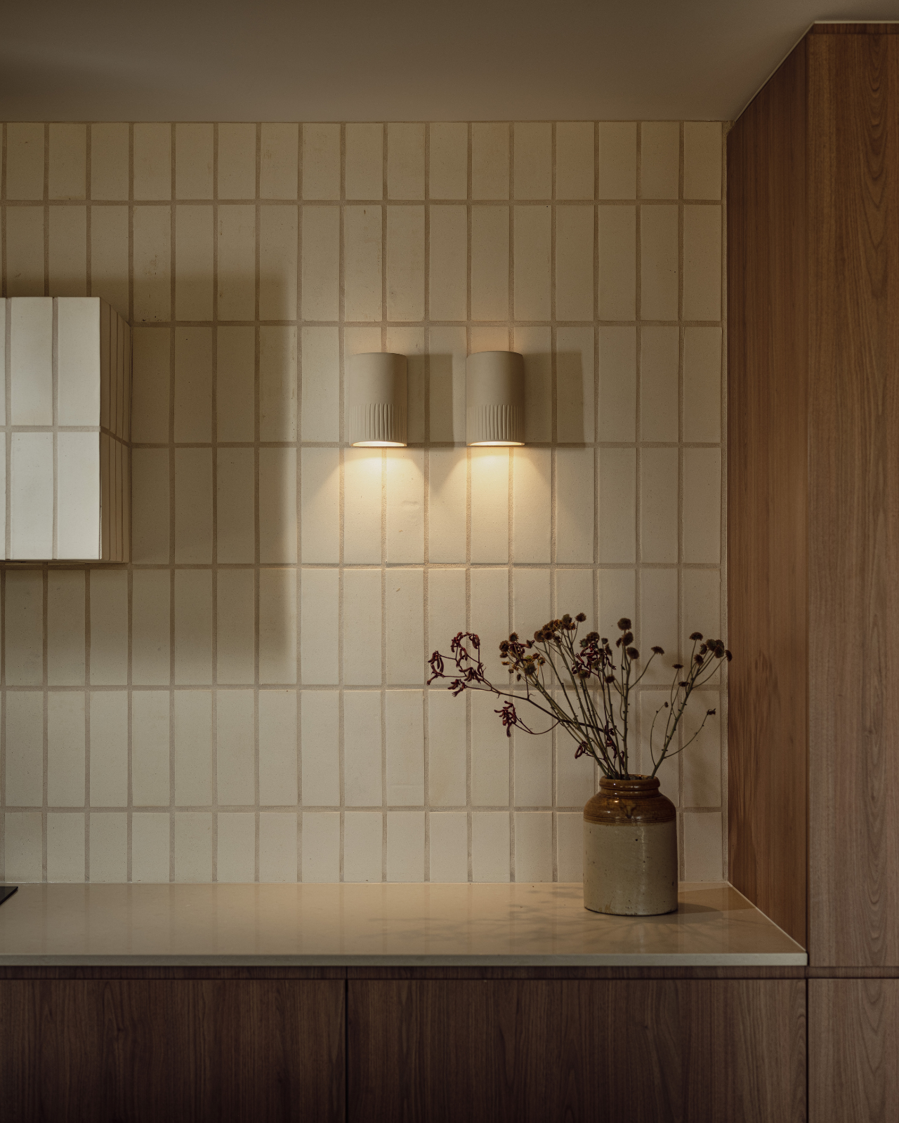 Organic Handmade Ceramic Wall Light Stone in a warm kitchen