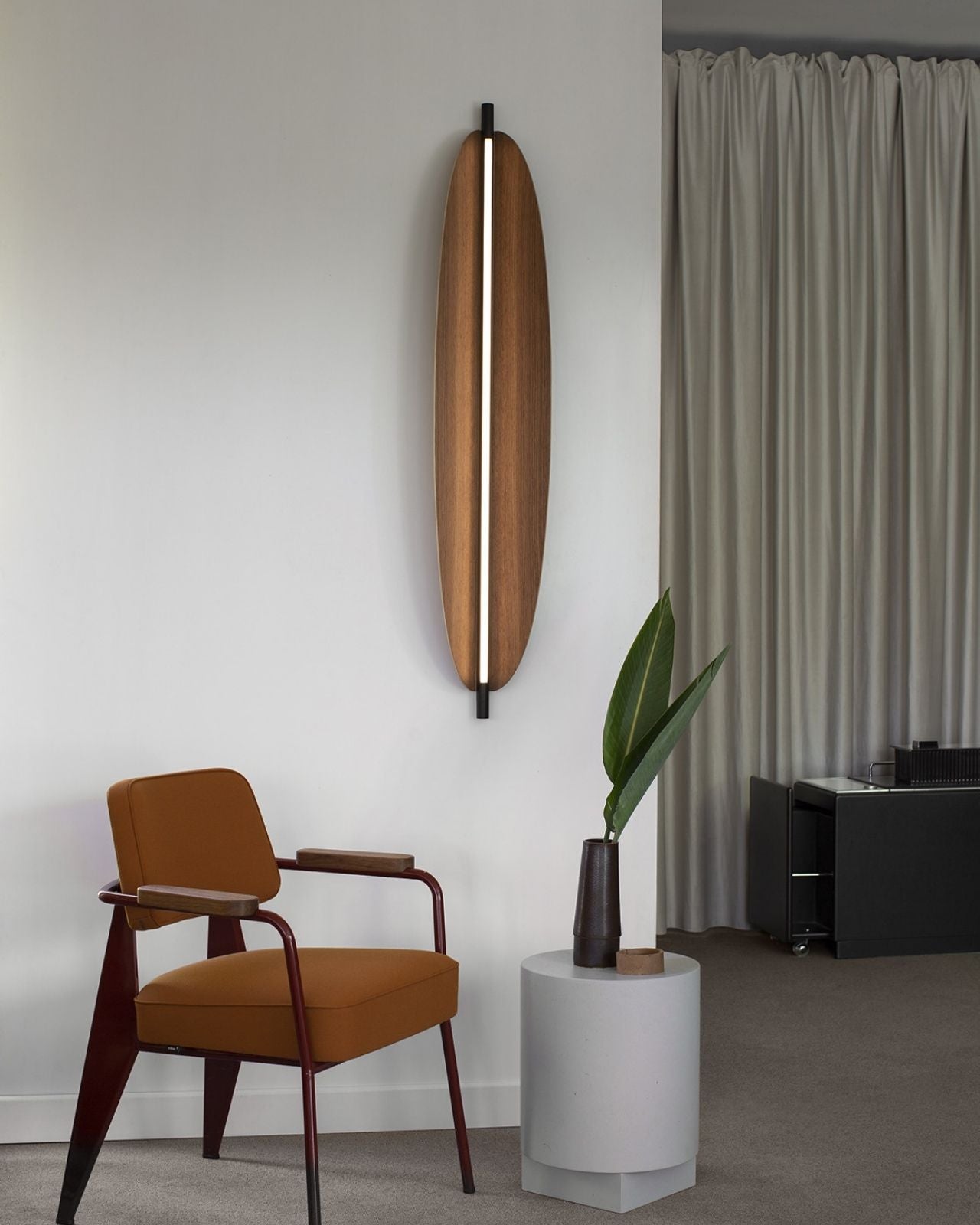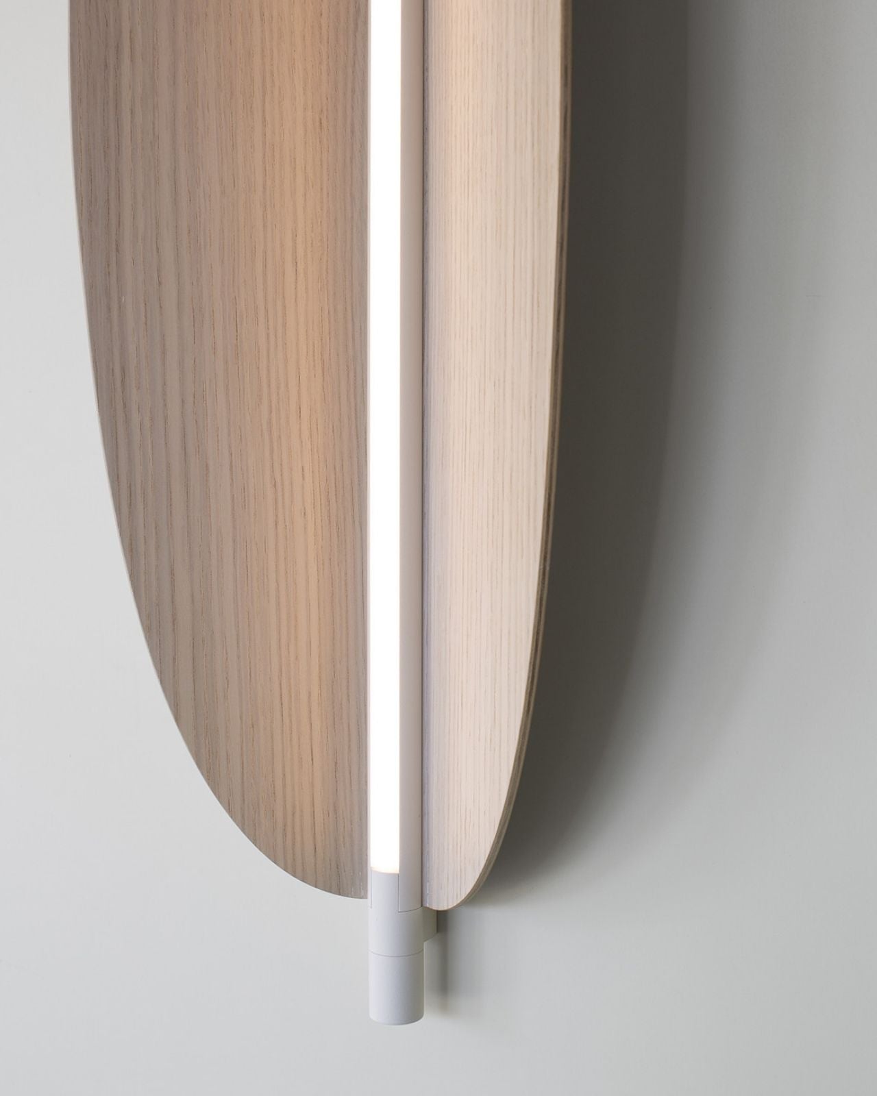 Italian-crafted, this timber wall sconce is reminiscent of nature through a delicate and unique leaf form. Elegant and timeless, this wall lamp will make an architectural statement as the illumination will shine through the concaved slightly folded leaf shape, made from timber, leather and aluminium. Supplied with an integrated LED, the Italian Organic Leaf Wall Light will elevate any living room, dining room, or hallway space.