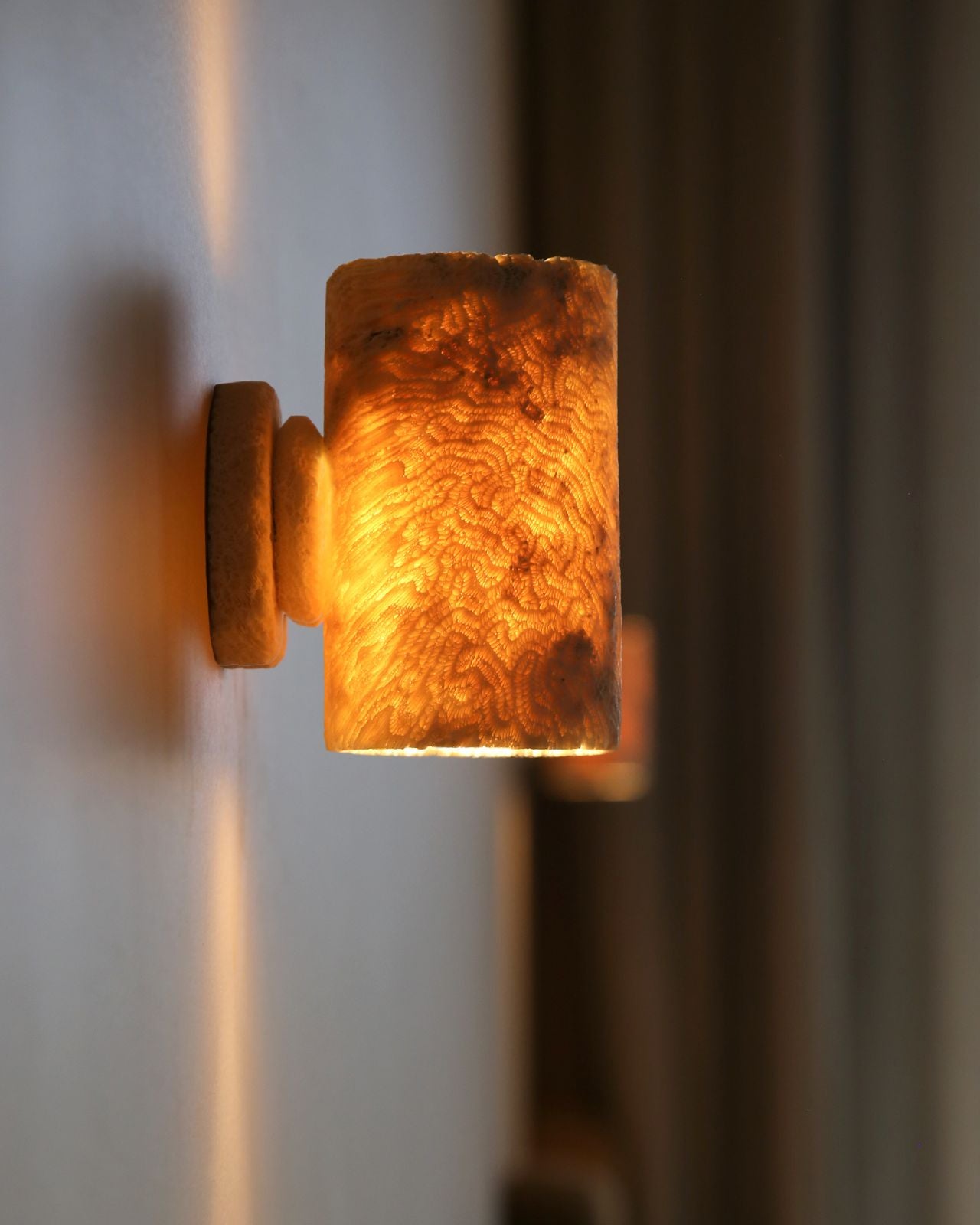 Introducing Marovo Island Traders' Fossil Coral Tube Wall Sconce - a radiant homage to nature's serene beauty and timeless allure. Crafted from the finest Fossil Coral, and sustainably sourced stone from the Solomon Islands, this exceptional lighting fixture infuses a touch of rustic elegance into any space. Fossil Coral is naturally moulded over millions of years, each piece, showcasing the stone's distinctive character, which serves as a truly organic addition, celebrating Earth's rich geological history and sacred geometry. Illuminate your space with the inviting warmth of this organic design, courtesy of this captivating piece. It's not just a light; it's a reminder of the remarkable stories told by nature and a tribute to the authenticity of coastal living, offering a radiant glow to your surroundings.