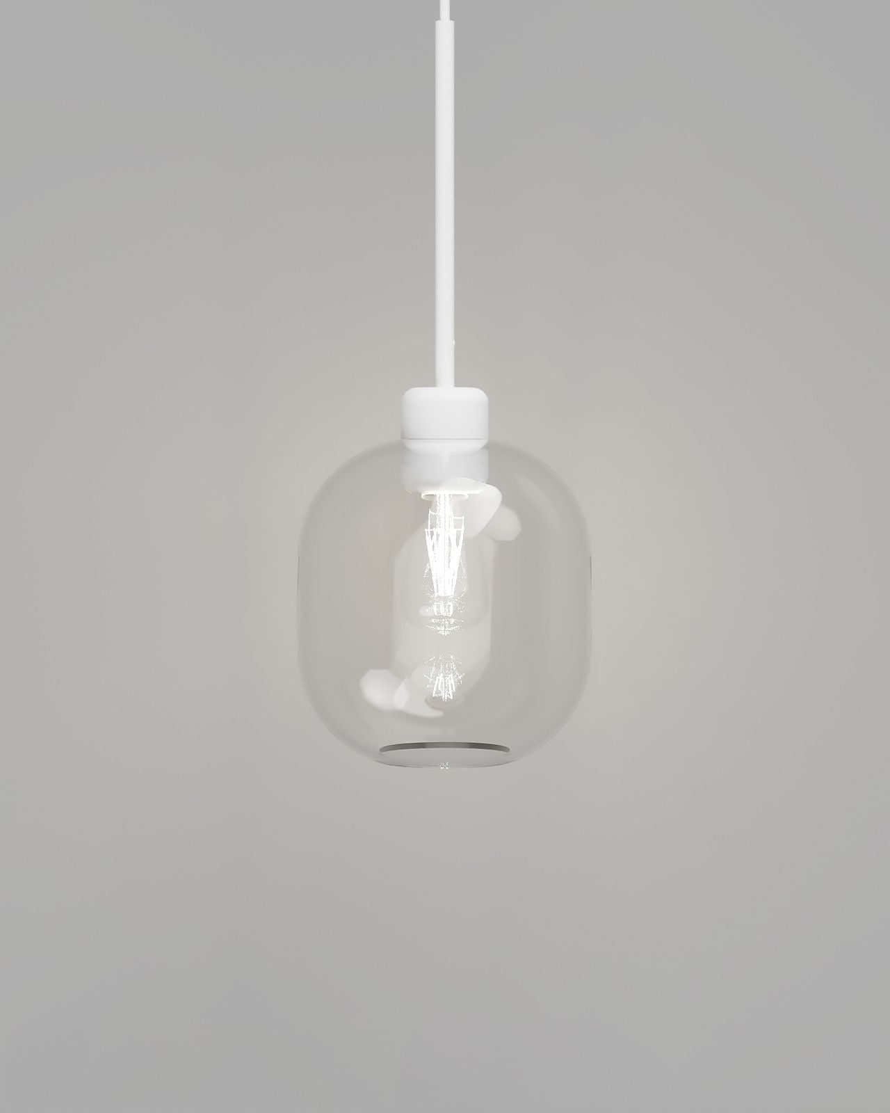 The Elegant Curved Glass Pendant Light will make a minimalist sleek statement in a living room, dining room, bedroom, or suspended over a table or on the side of a bed. Featuring a contemporary compact suspension, available in either a textured white or black finish with a bold curved shade that is crafted from high-quality mouth-blown glass.