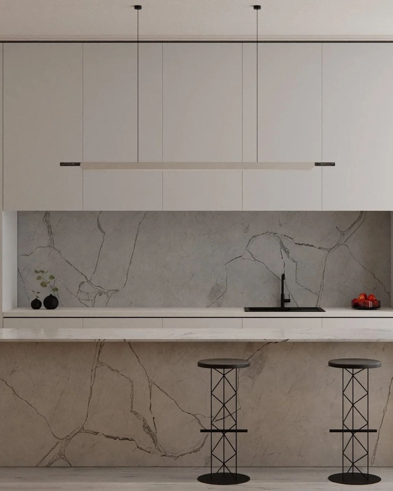 The Formation Anodised Metal Linear Pendant combines contemporary materials with innovative design to create an eye-catching fitting. Hand-assembled in Melbourne, Australia, this linear features a folded aluminium body that hides a warm white LED strip, and luxurious marble tips at each end of the pendant. Ideal for installation above dining tables, kitchen islands, or in professional settings, this fixture seamlessly blends style with functionality.
