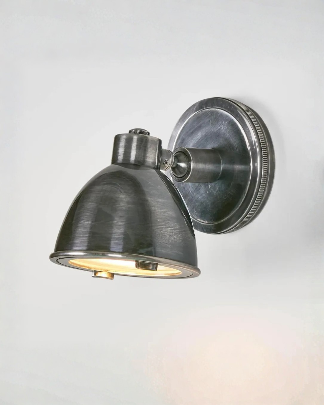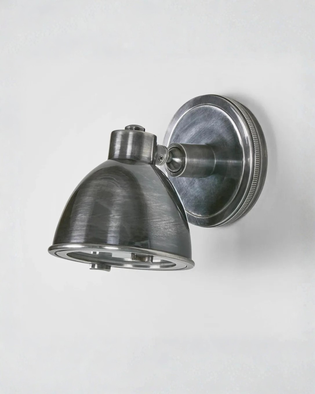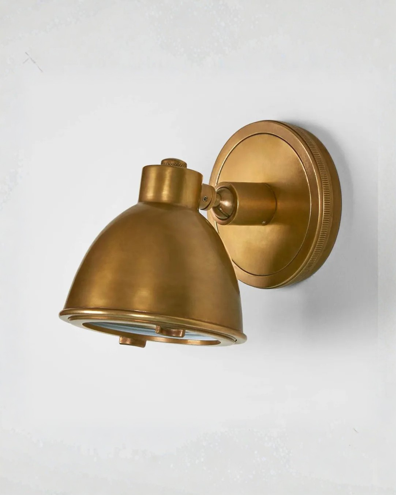 Understated industrial style meets timeless design in this versatile wall light. With an IP54 rating, it’s protected against dust and water, making it suitable for indoor spaces like living rooms, bedrooms, and kitchens, as well as outdoor areas such as patios and poolside. Crafted from solid brass, the sconce features a glass diffuser that shields the bulb while casting a soft, downward glow delivering practical illumination with subtle industrial character.