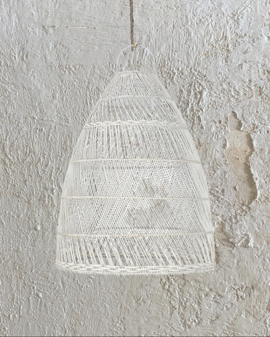 Please note: A white suspension cord and sisal rope, plastic white dome ceiling cup and brass bayonet lamp fitting are supplied and wired ready for installation.