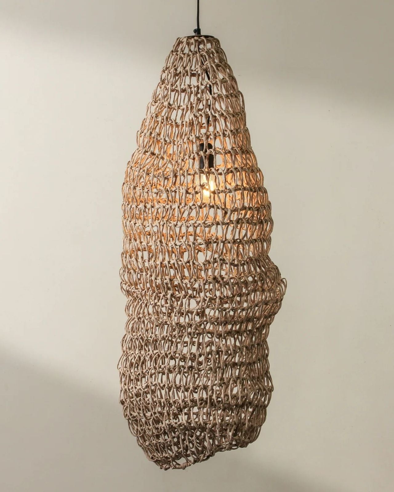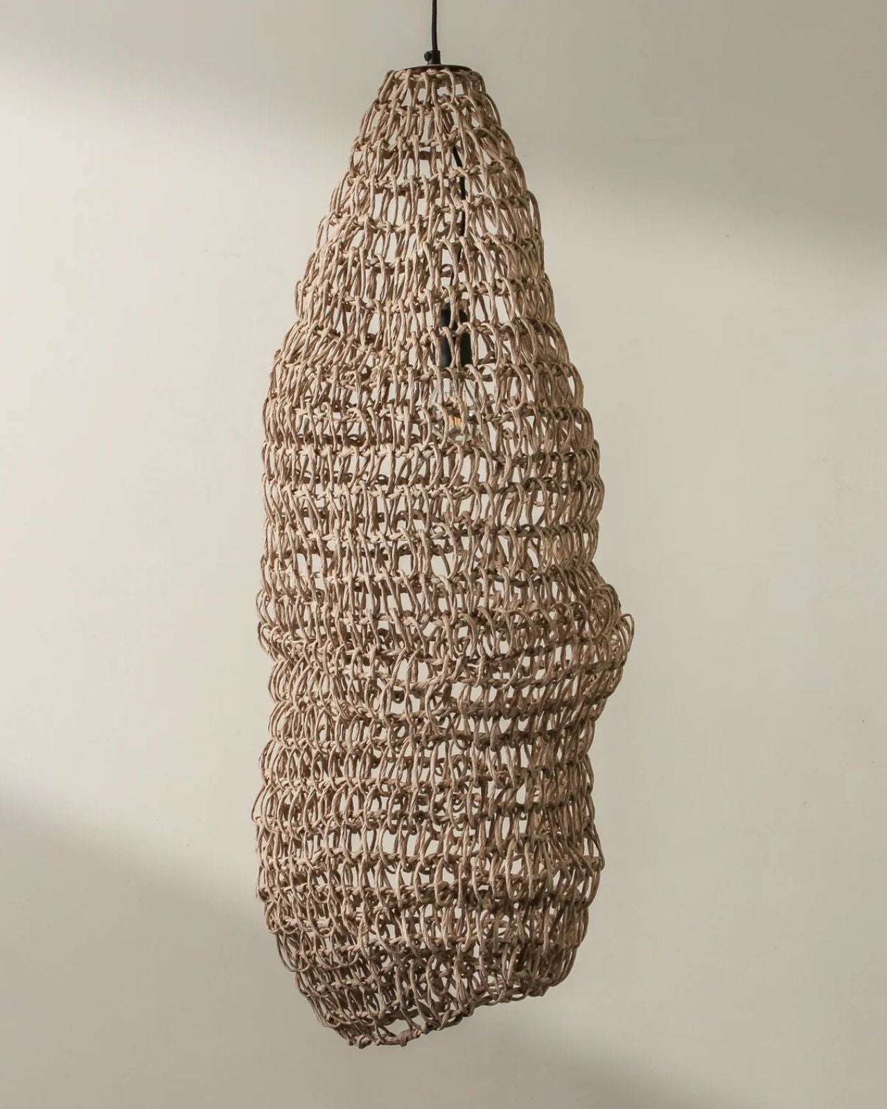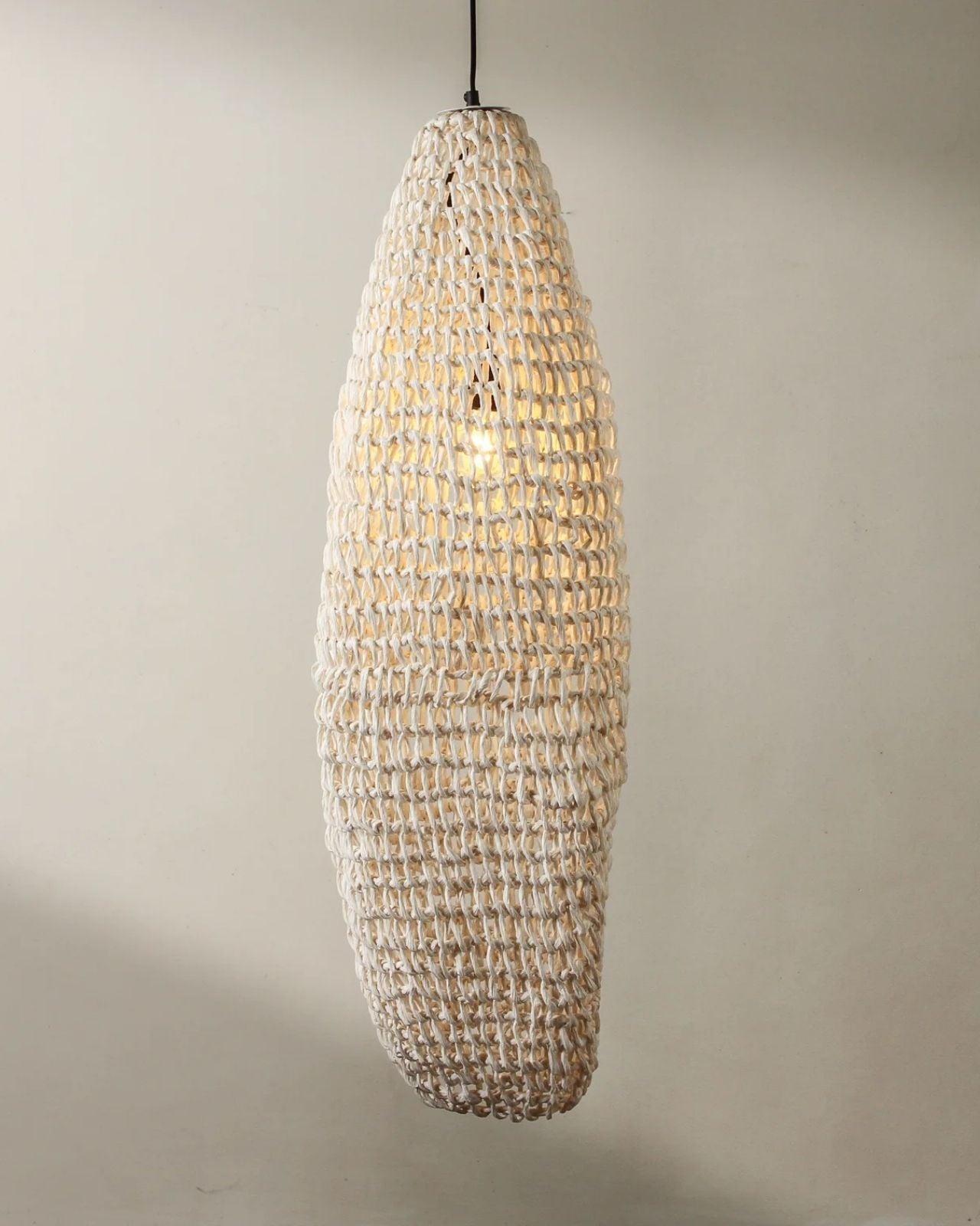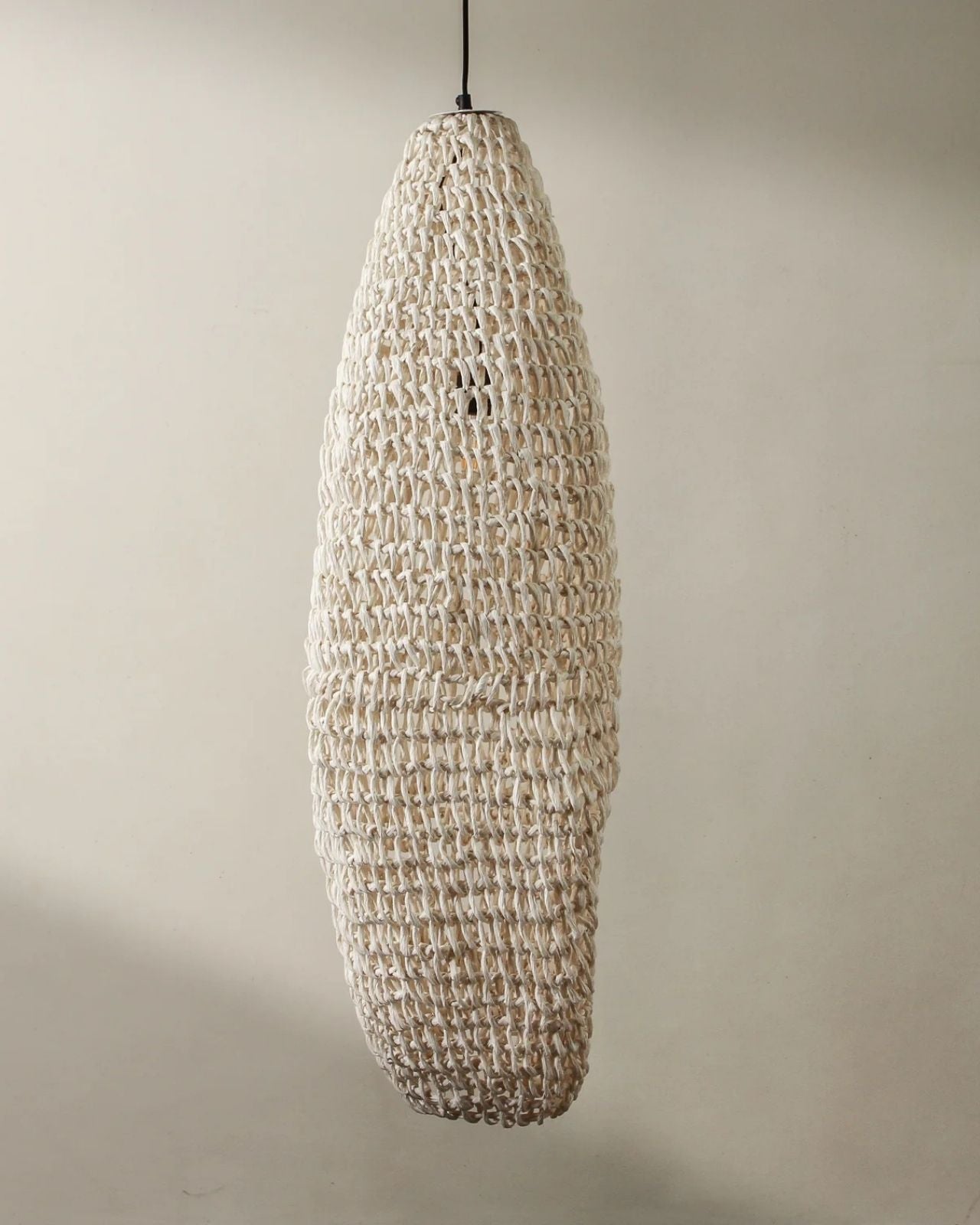 Elongated Handwoven Paper Rope Column Pendant - Natural