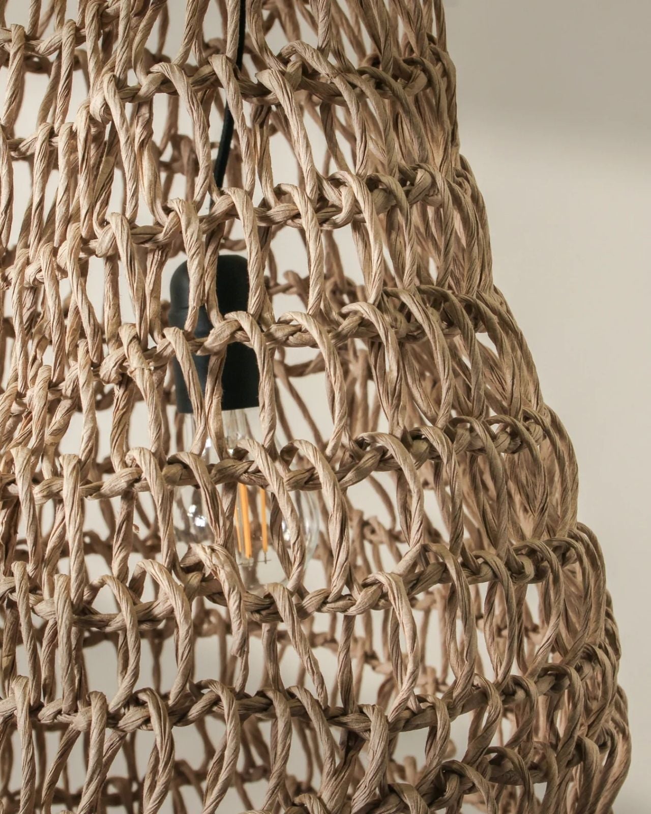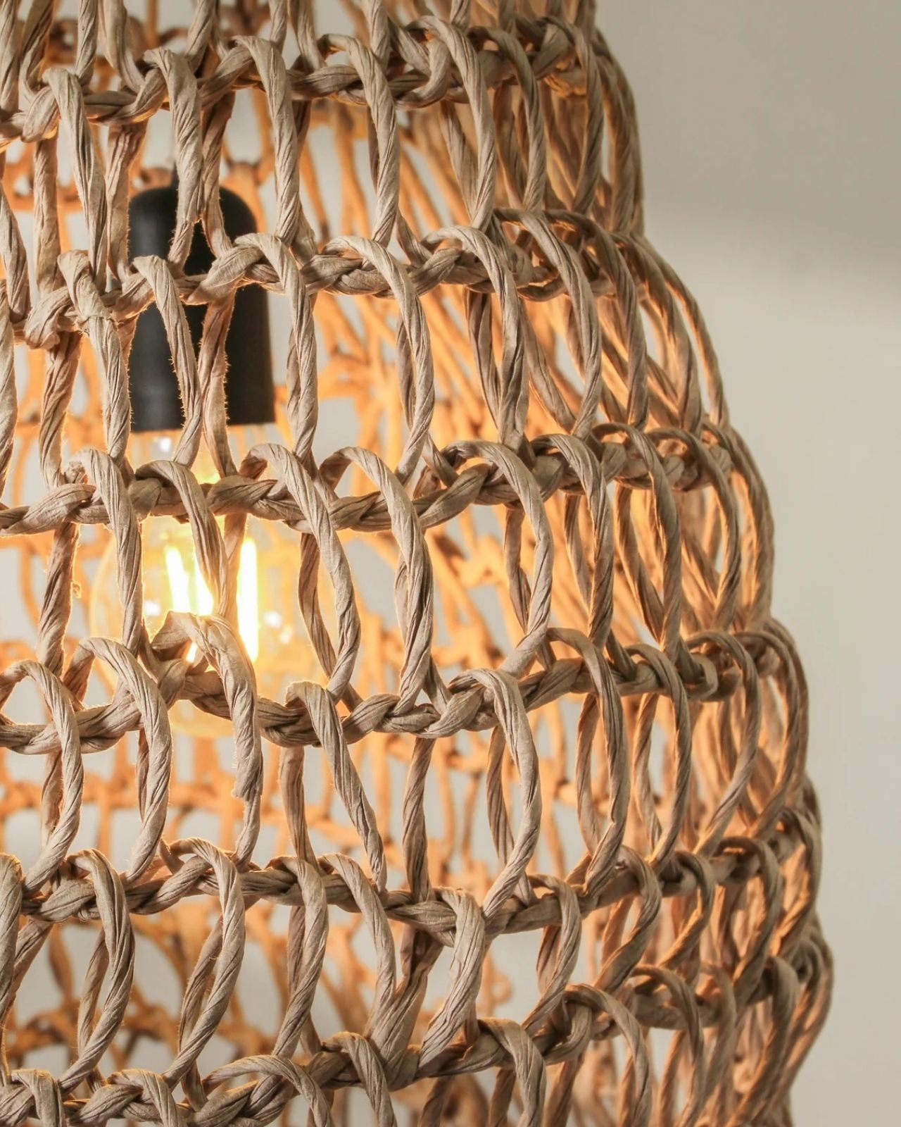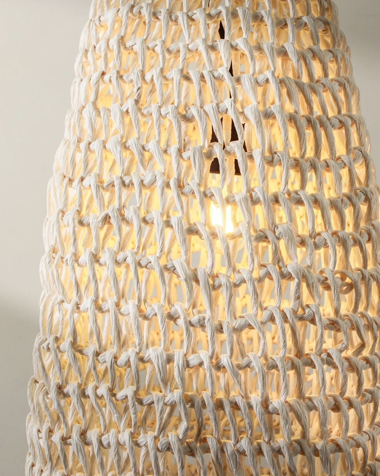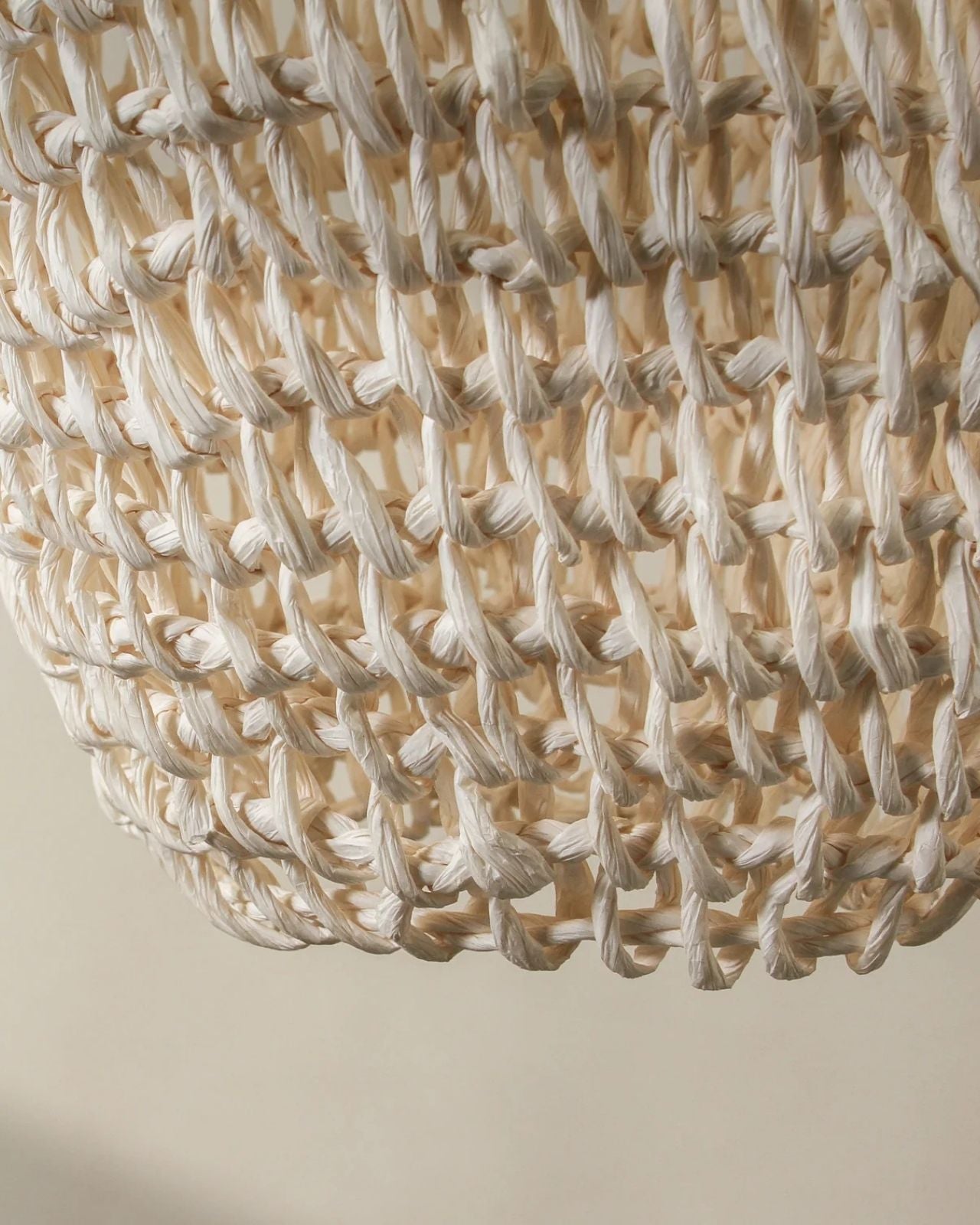Elongated Handwoven Paper Rope Column Pendant - Natural