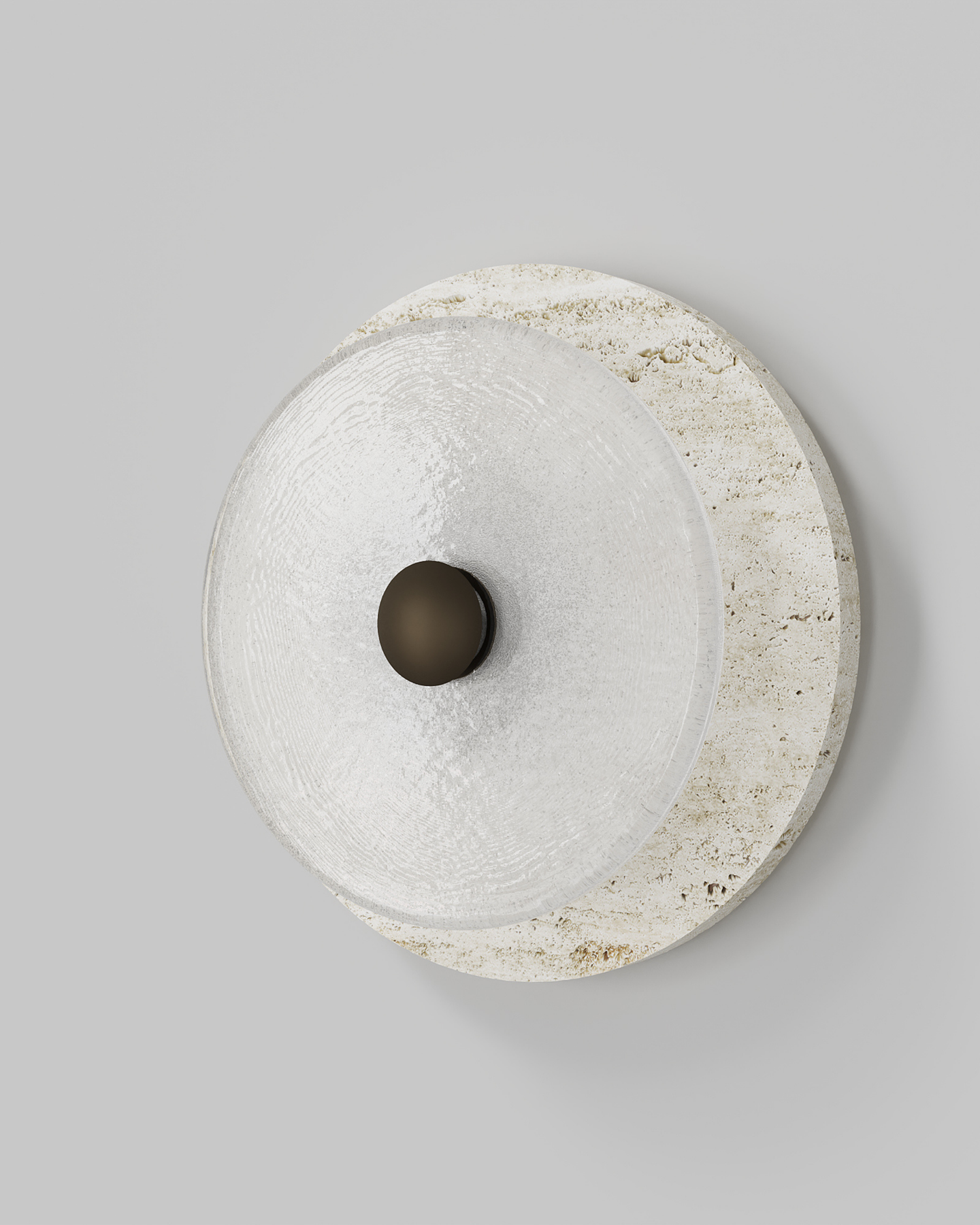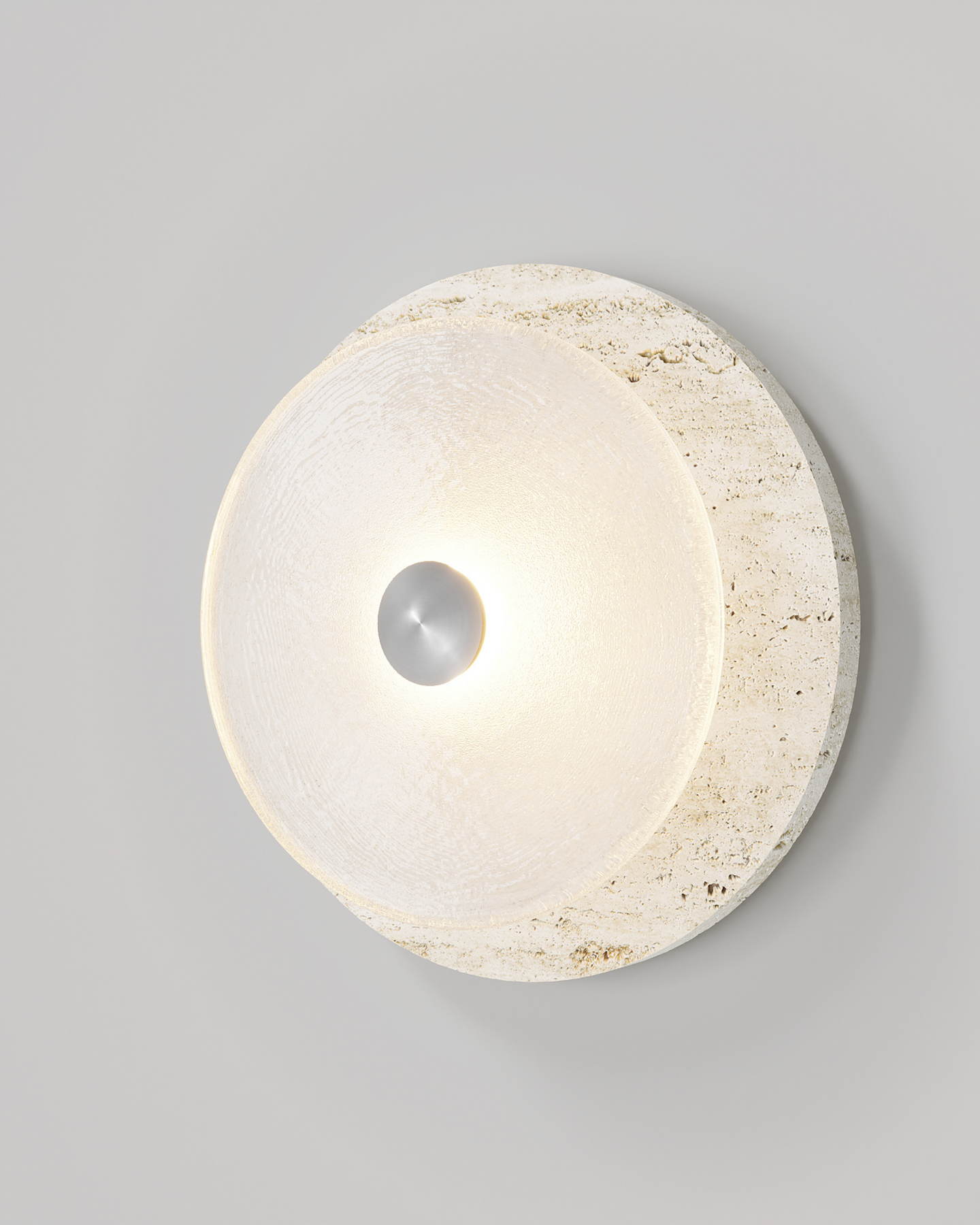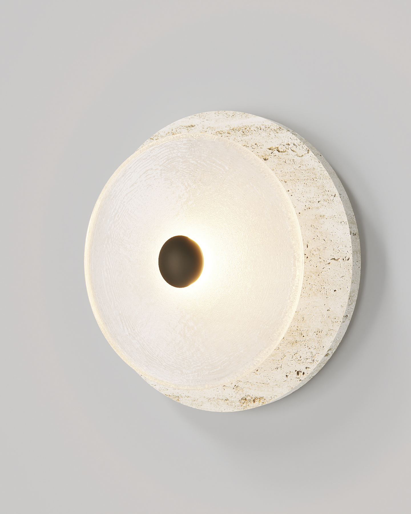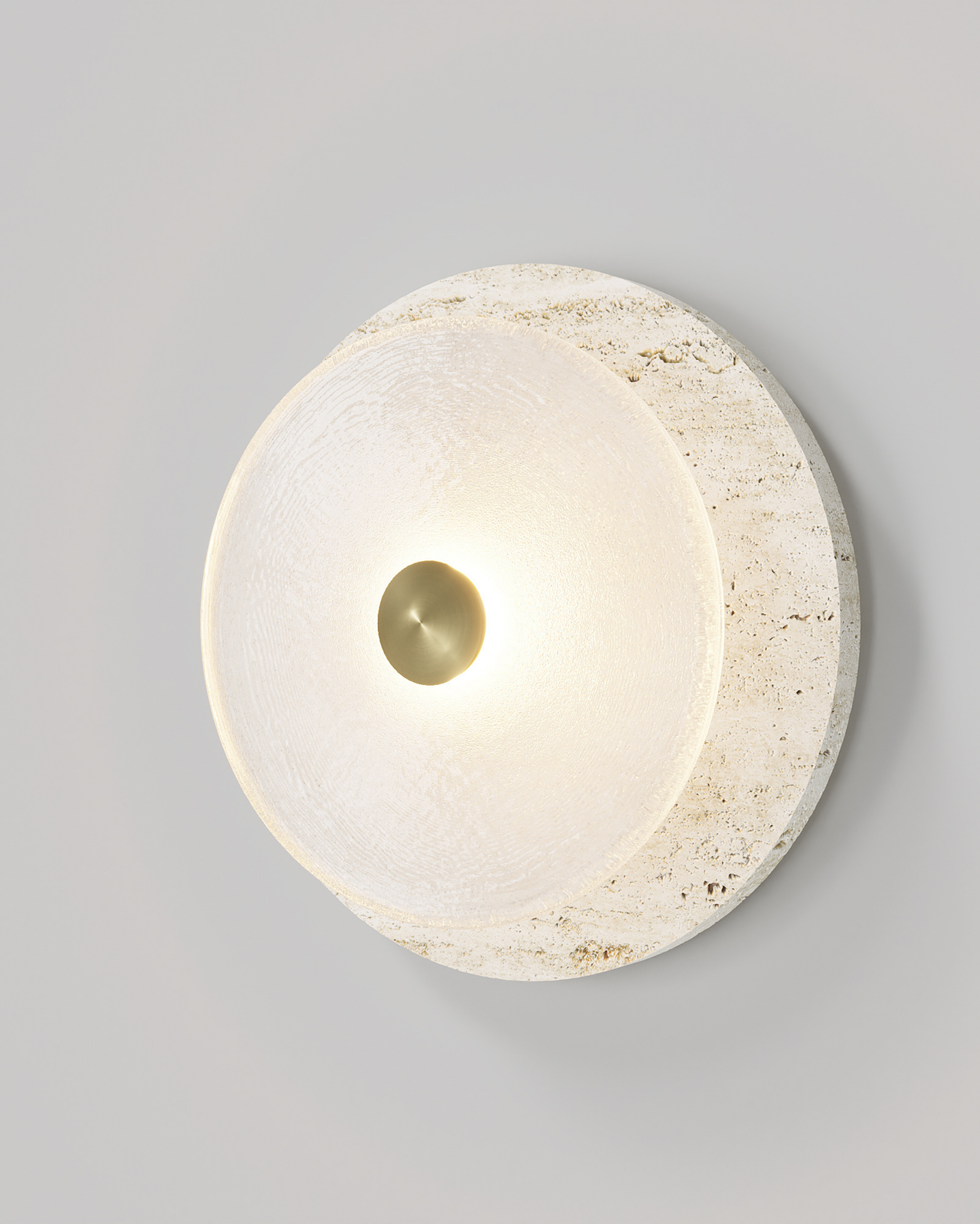 Designed and handmade by Oliver Höglund & Ryan Roberts in Currumbin Australia, the Handmade Travertine Coral Wall Light, will bring a touch of elegance to elevate a modern interior space. Featuring a free-formation design of the frosted glass disc, paired with an organic travertine material to create a unique aesthetic wall sconce. Handmade in Australia, the fitting is hand-blown at one thousand degrees Celsius and will provide a stunning light effect in living rooms or bedrooms spreading warm and soft light in the surroundings. Available in five beautiful finishes Brass, Bronze, Matte Black, Matte White, and Chrome finishes.