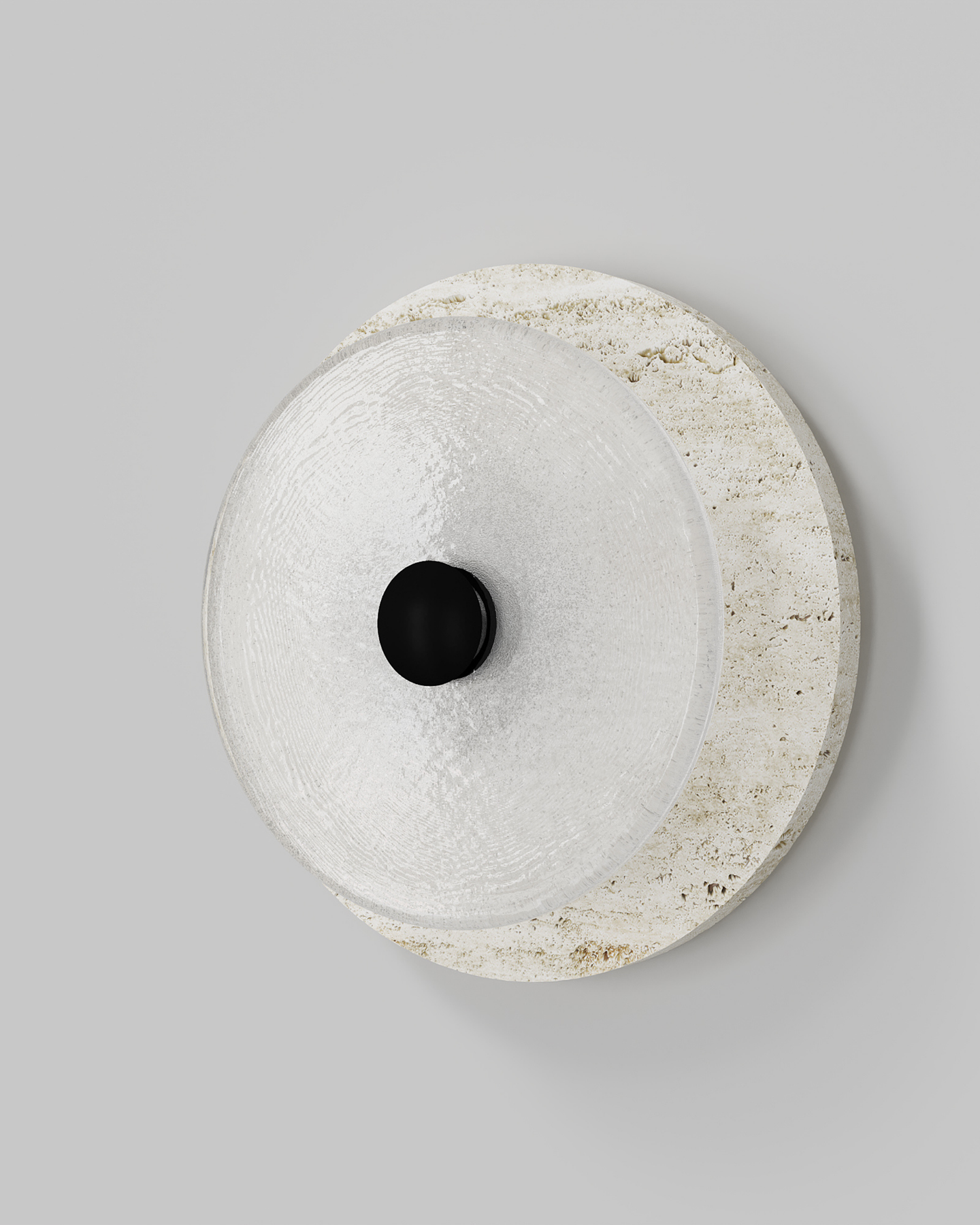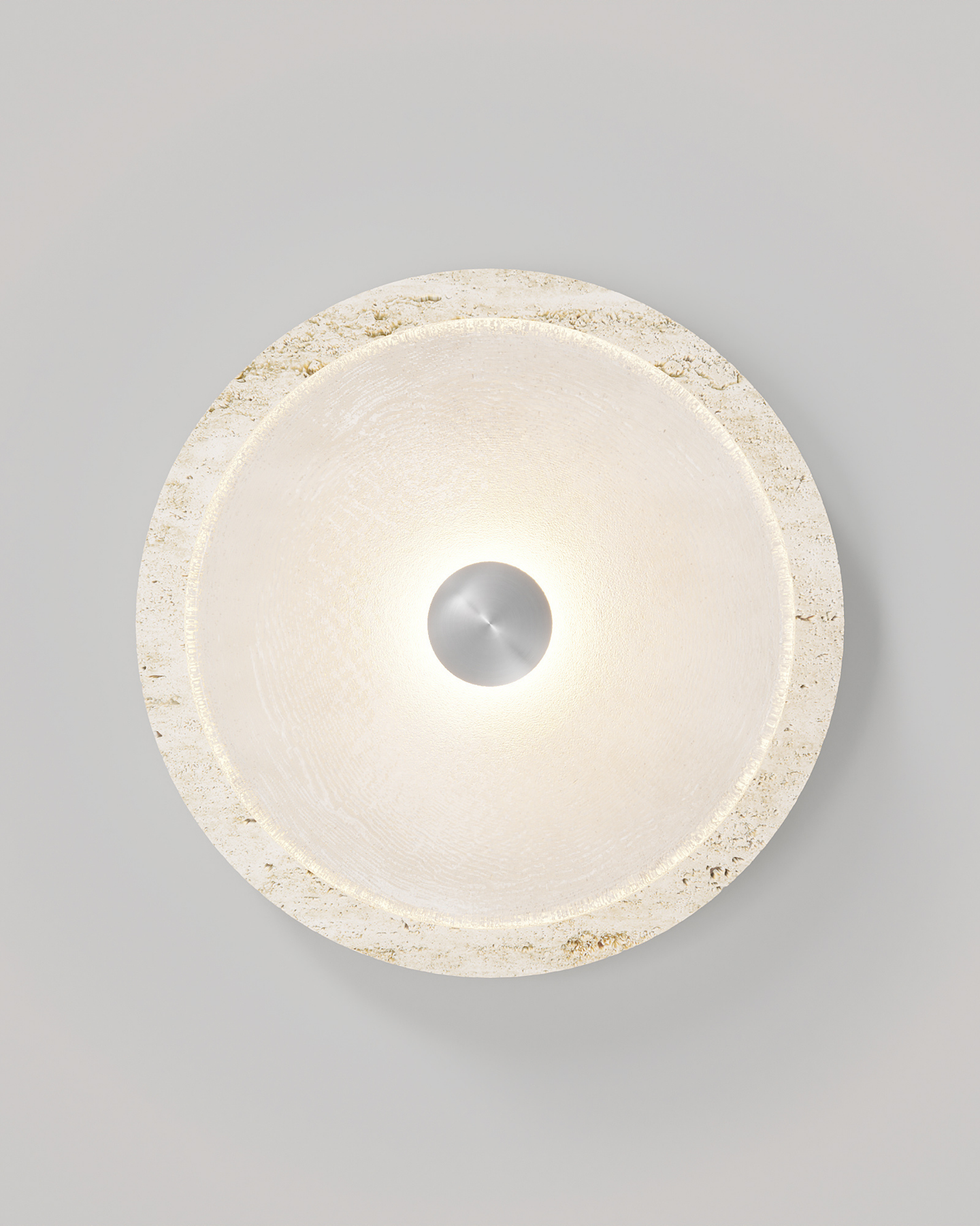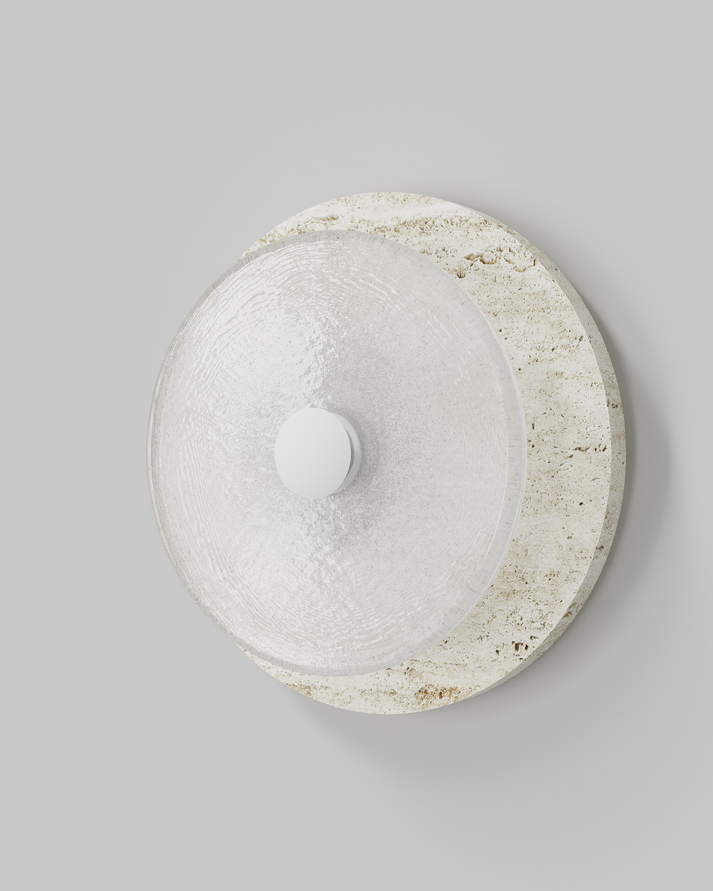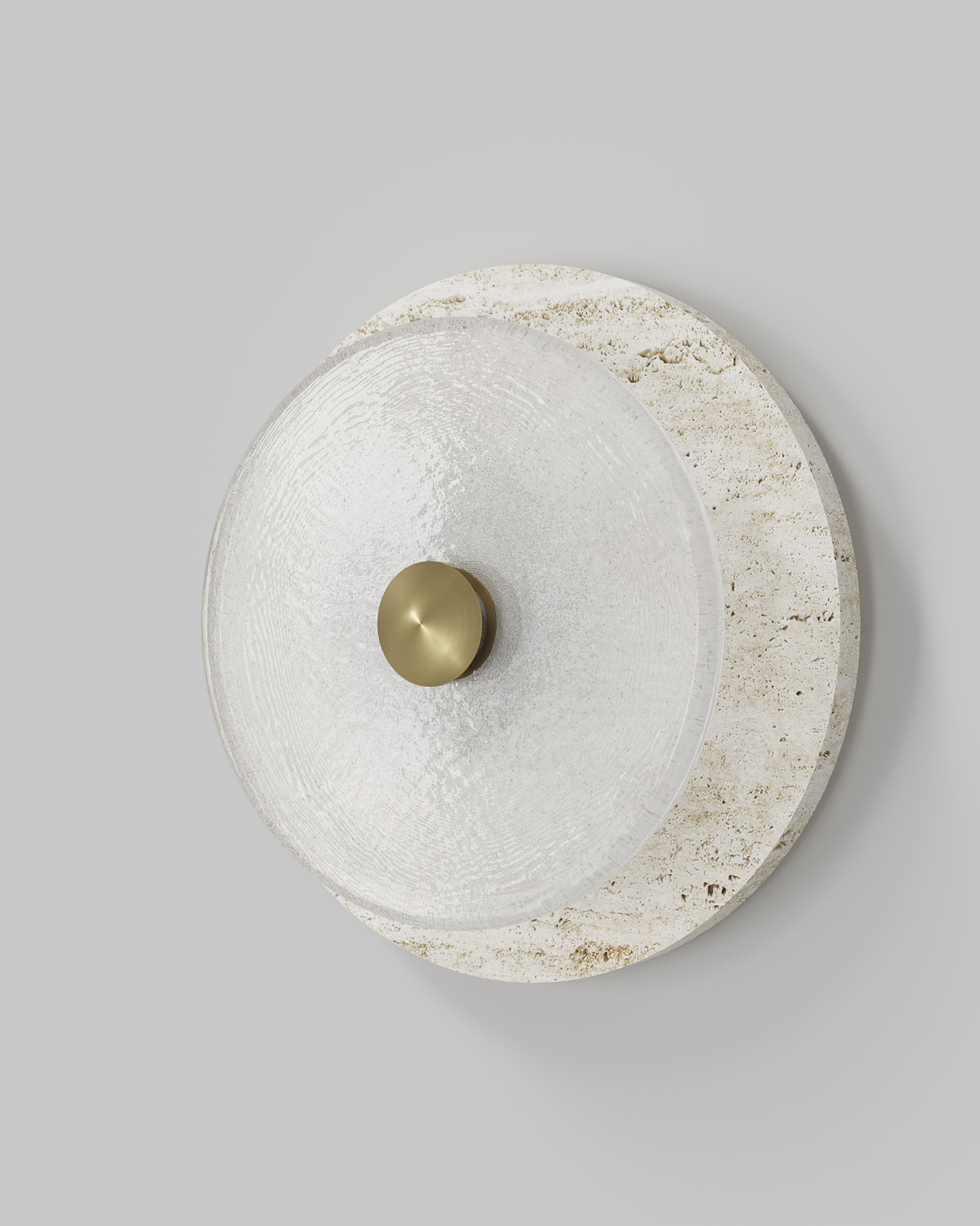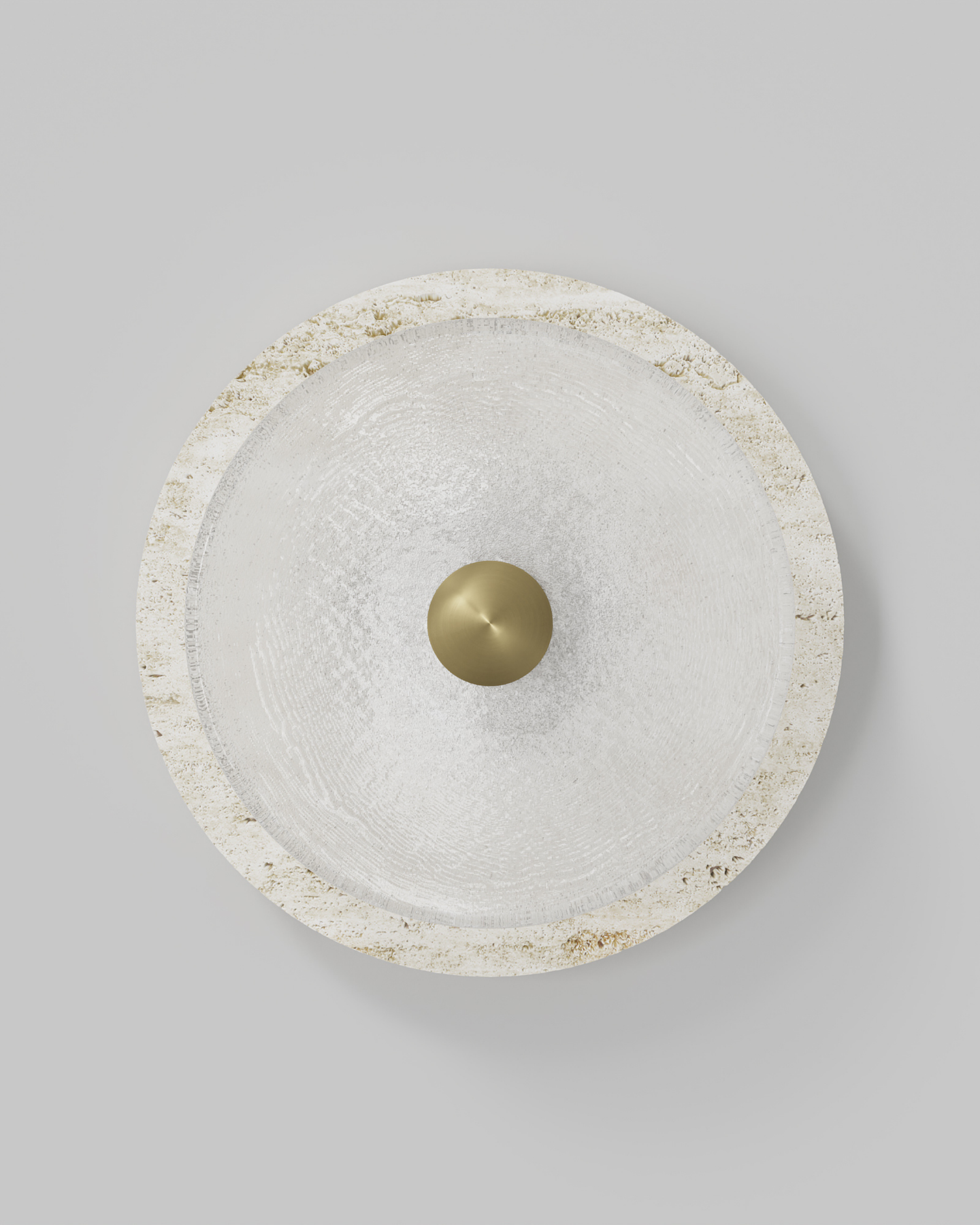 Designed and handmade by Oliver Höglund & Ryan Roberts in Currumbin Australia, the Handmade Travertine Coral Wall Light, will bring a touch of elegance to elevate a modern interior space. Featuring a free-formation design of the frosted glass disc, paired with an organic travertine material to create a unique aesthetic wall sconce. Handmade in Australia, the fitting is hand-blown at one thousand degrees Celsius and will provide a stunning light effect in living rooms or bedrooms spreading warm and soft light in the surroundings. Available in five beautiful finishes Brass, Bronze, Matte Black, Matte White, and Chrome finishes.