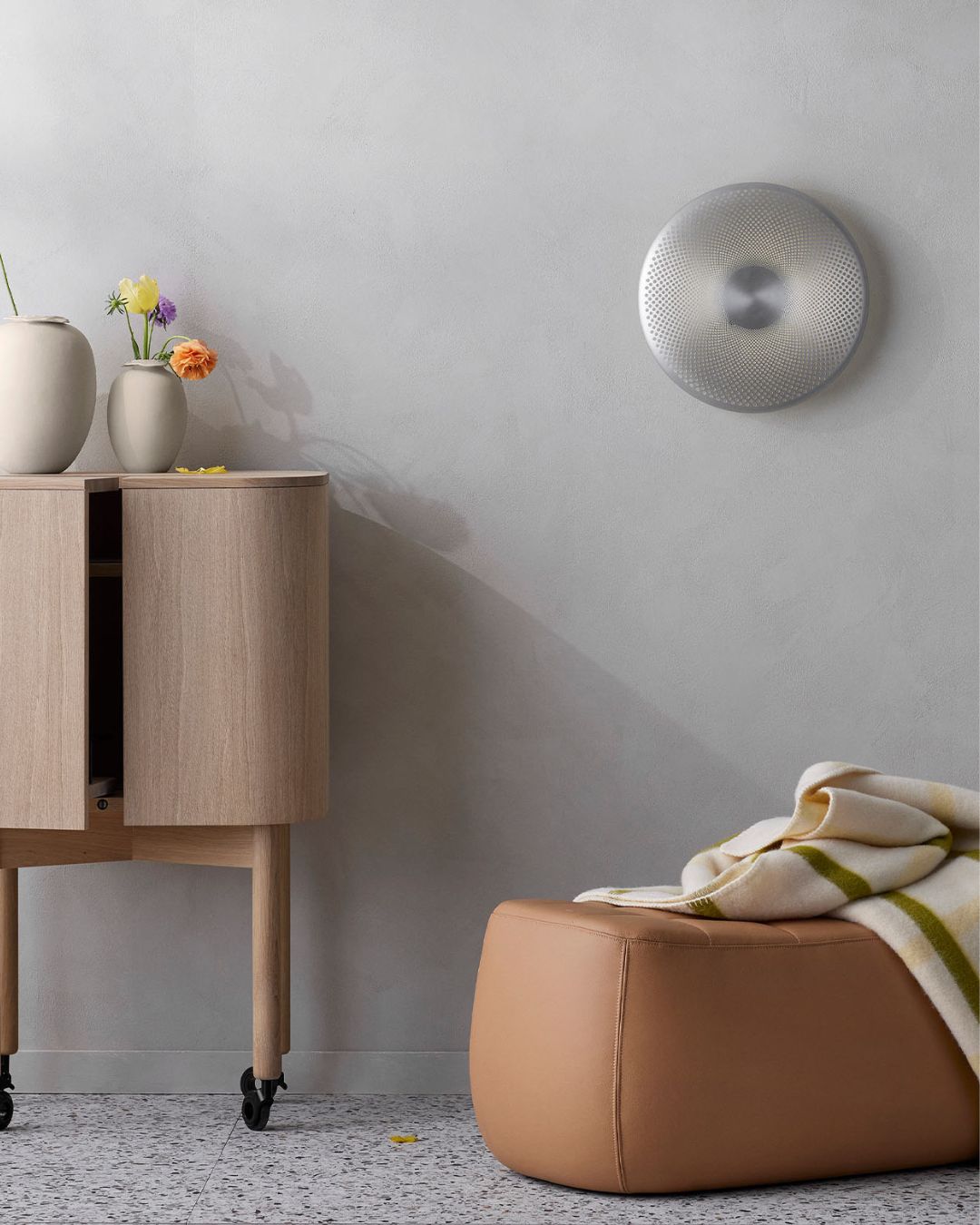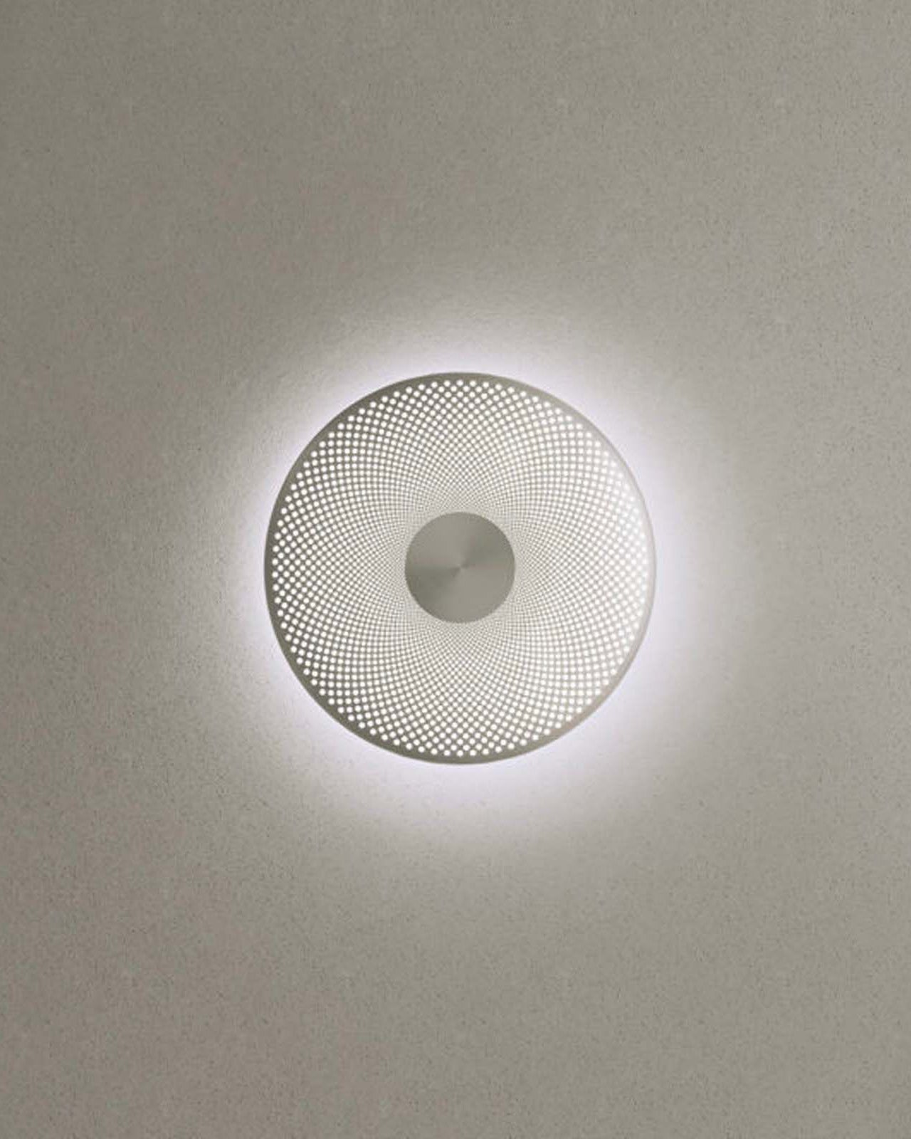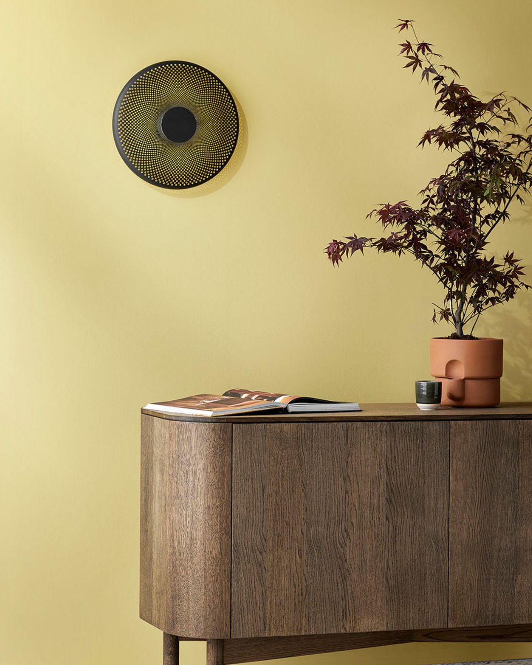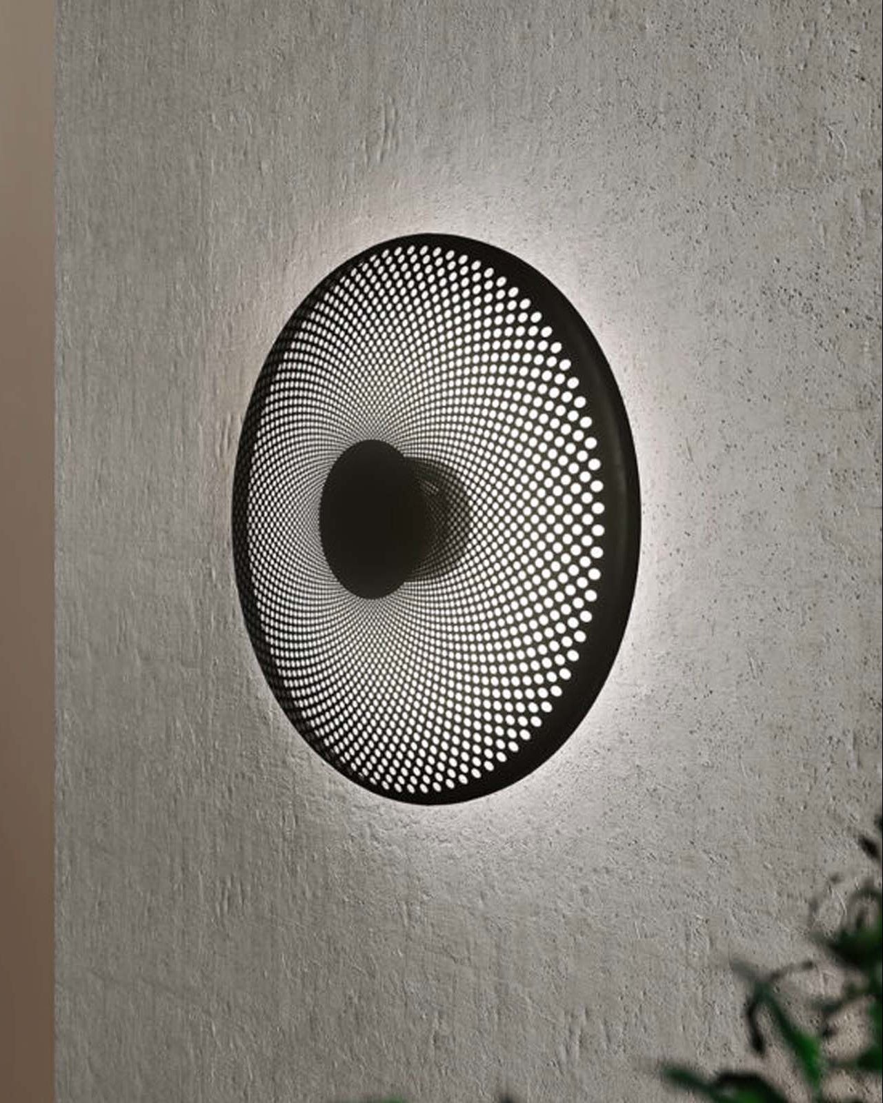 Featuring a perforated design placed on a circular metal disc shade, this wall fixture will bring intimacy, warmth and soft illumination to your living room, hallway, or bedroom space. The Minimalist Perforated Disc Wall Sconce is made from high-quality aluminium, brass, or powder-coated steel, this fitting is Swedish designed, and will be a minimalist addition to your modern spaces.