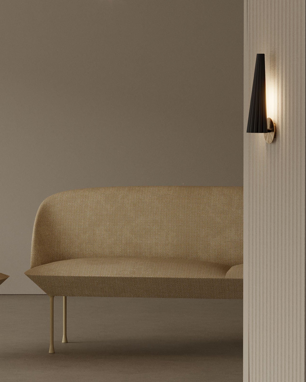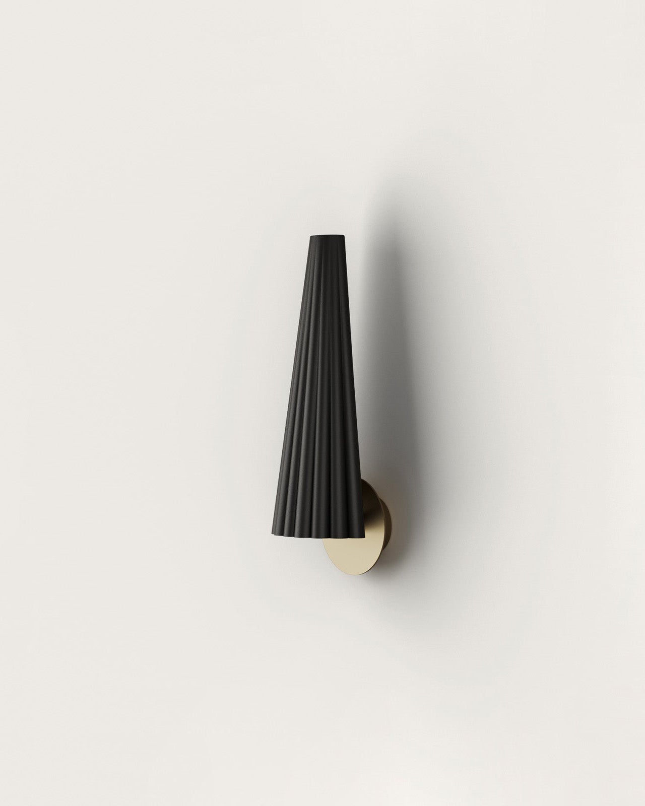 Mounted on a sleek metal plate with an aged gold or black finish, this stylish wall lamp is made from high-quality steel and has a stunning corrugated conical shape. The Modern Corrugated Steel Wall Sconce is a true object of design and will be a striking addition to any modern interior. Available in Matte White or Brass finish.