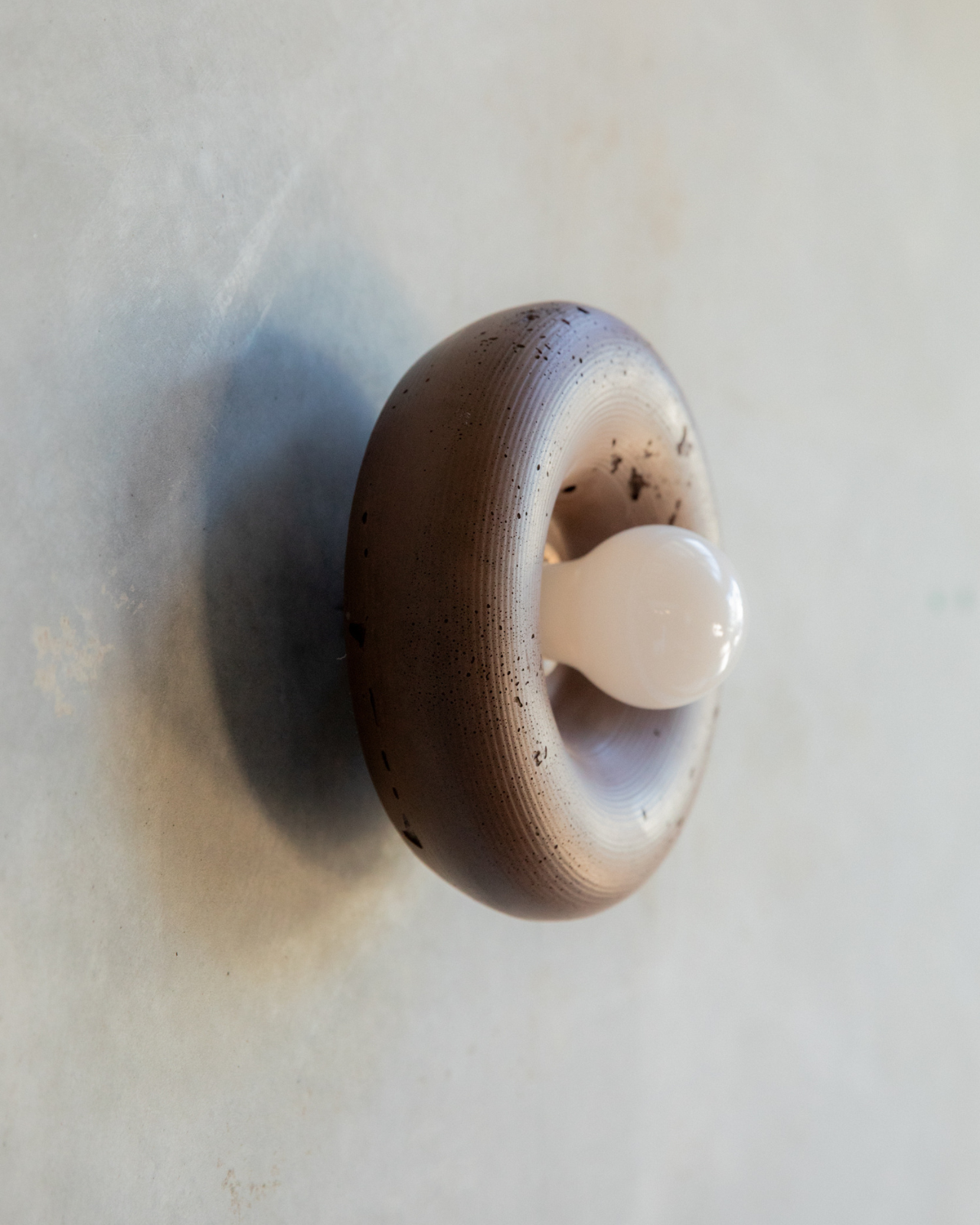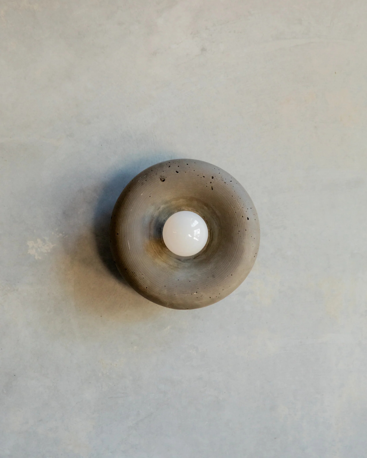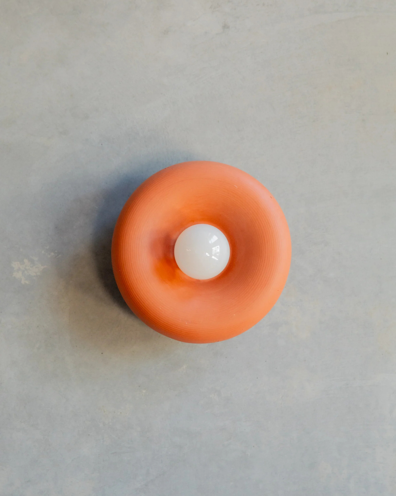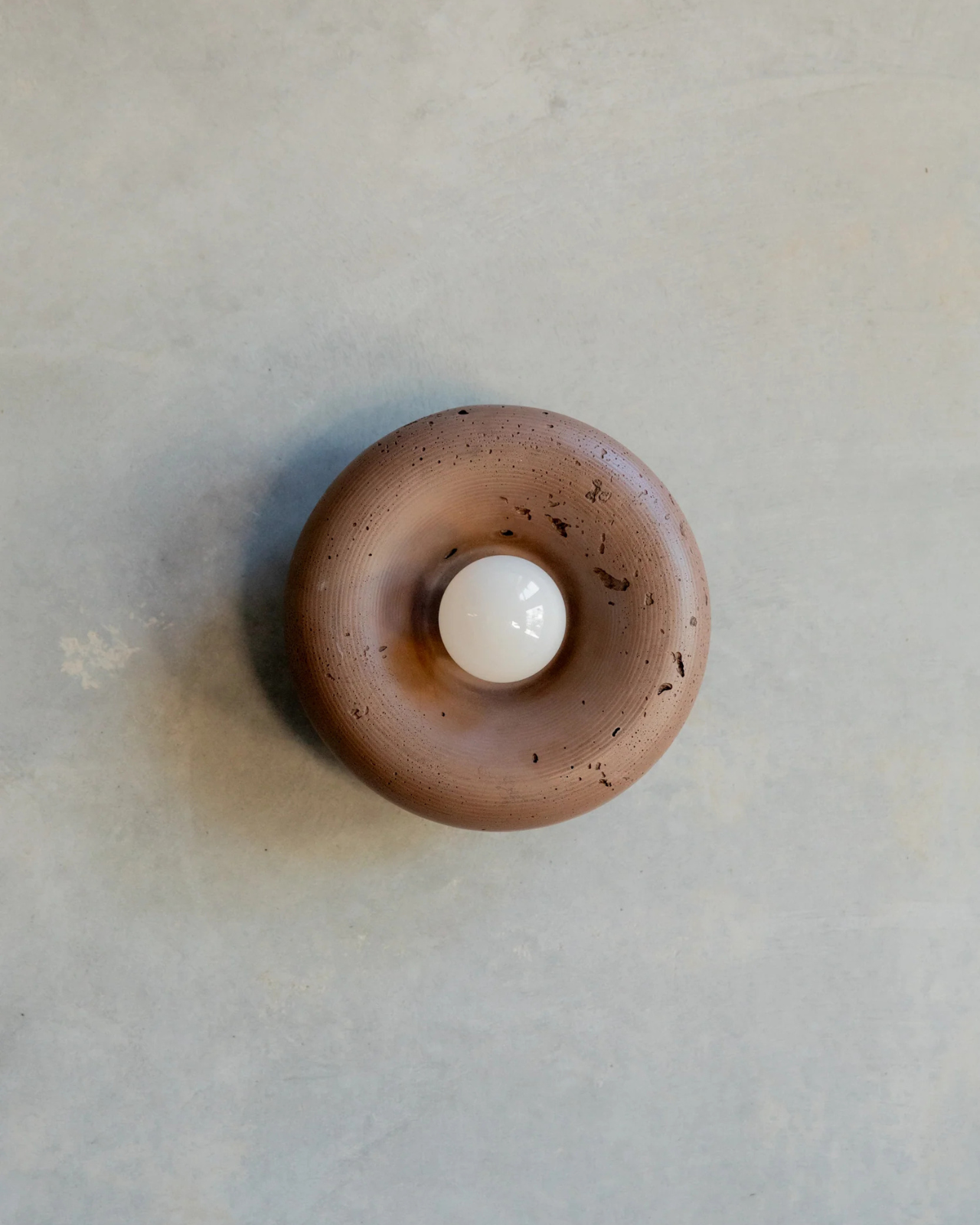 The Rounded Disc Concrete Wall Light is a torus-shaped wall fitting crafted from a blend of concrete and glass fibres. Hand-poured in the Northern Rivers using custom moulds, each piece is finished with iron oxide pigments that produce a range of earthy tones, from Bone White through to Terracotta.