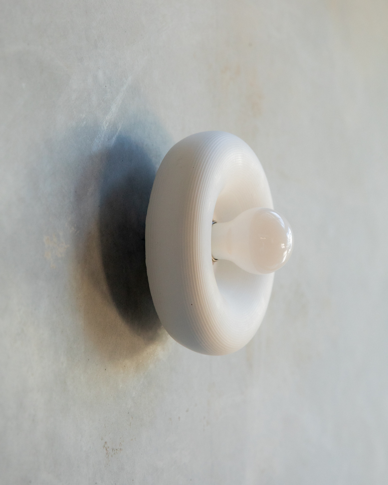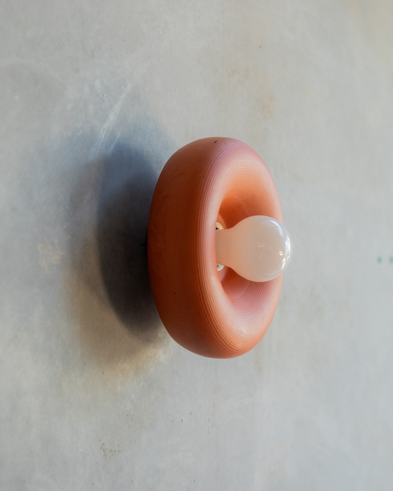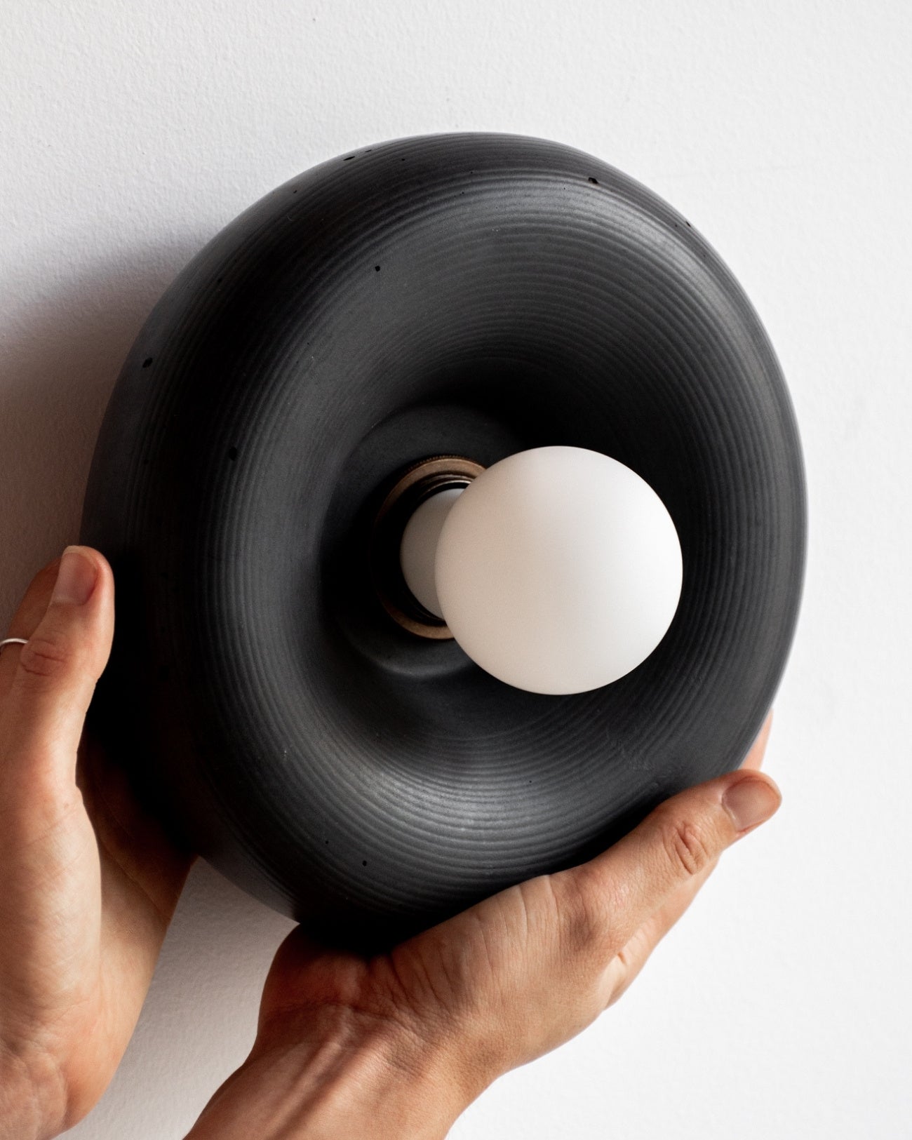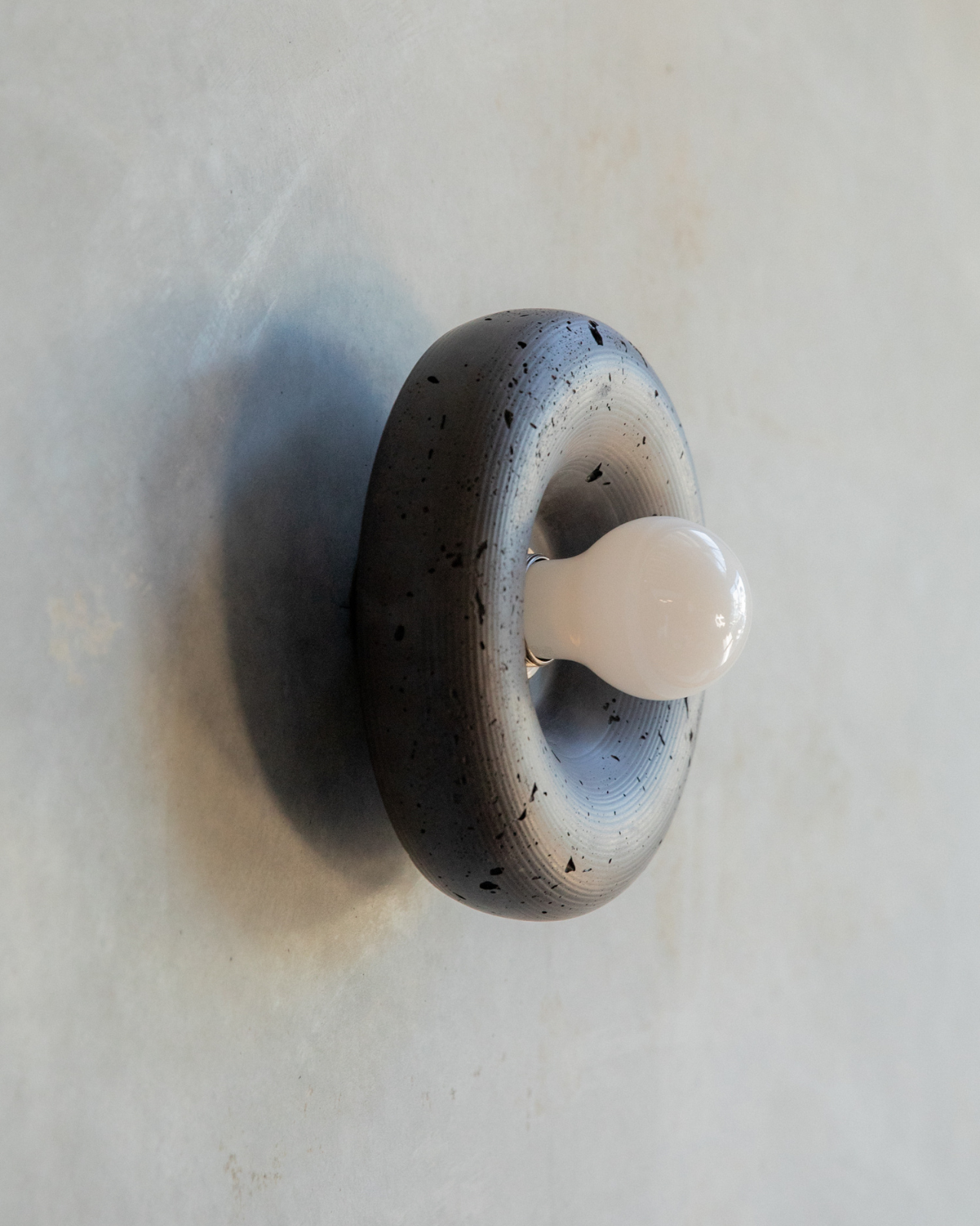 The Rounded Disc Concrete Wall Light is a torus-shaped wall fitting crafted from a blend of concrete and glass fibres. Hand-poured in the Northern Rivers using custom moulds, each piece is finished with iron oxide pigments that produce a range of earthy tones, from Bone White through to Terracotta.