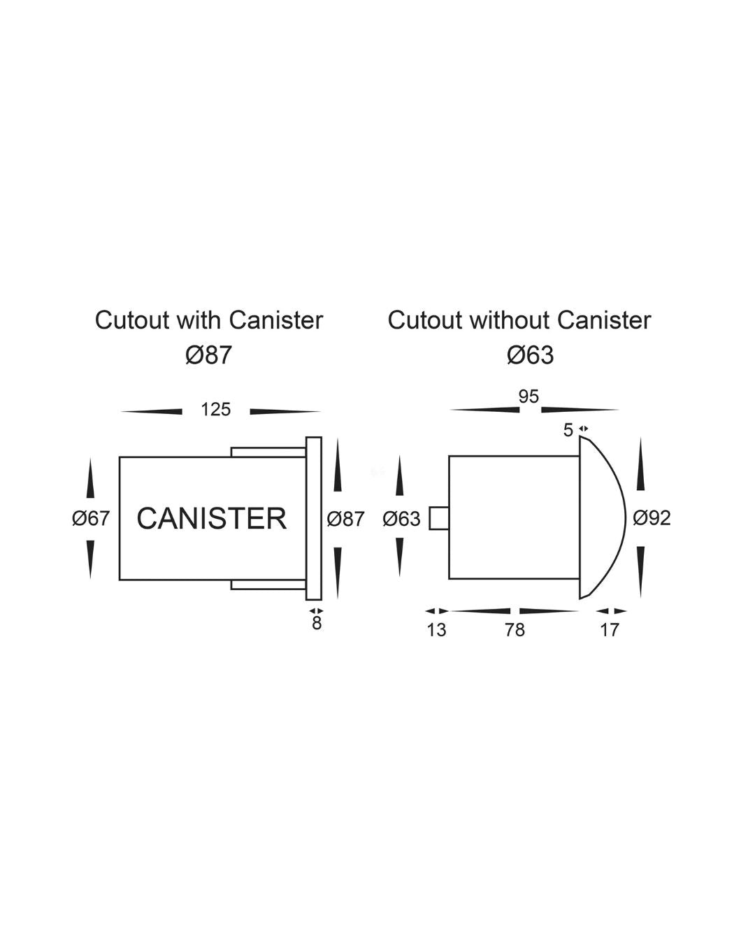 | Canister Cut Out Diameter | 87mm |