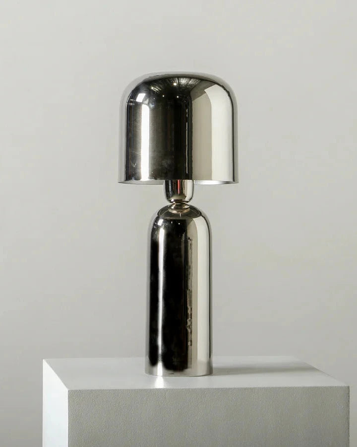 Drawing from mid-century design influences but with a fresh modern twist, this lamp pairs elegant simplicity with everyday functionality. Crafted in iron with a sleek chrome or burgundy finish that adds subtle shine and contemporary charm.