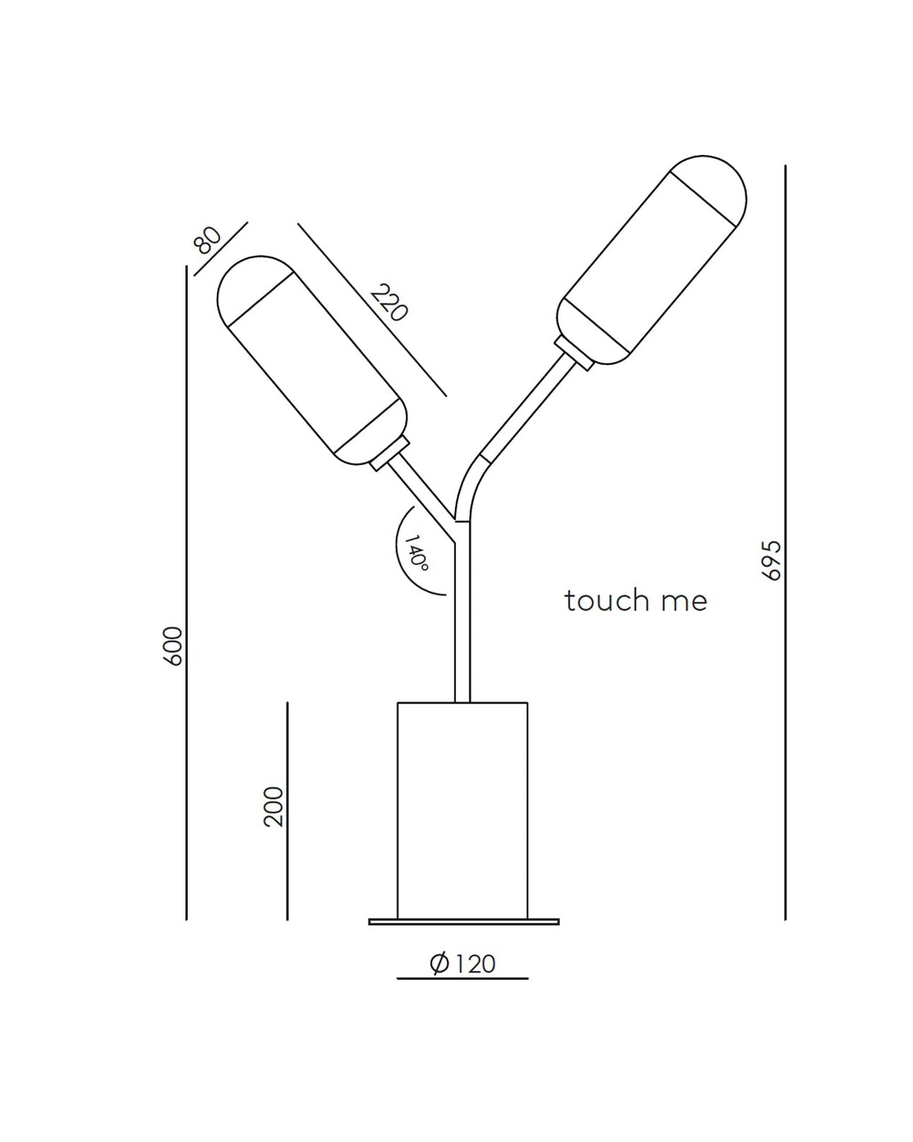 Technical drawing of a lamp with dimensions labeled