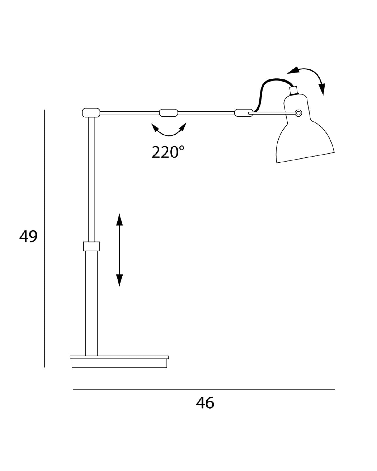 FeaturesAdjustable shade, height and arm, in-line switch