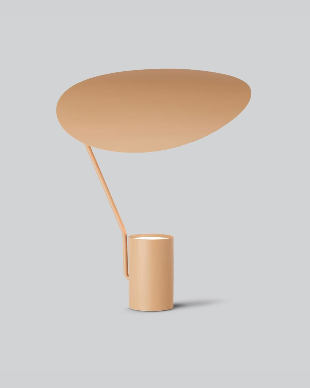 Playing with shadow and light this table lamp draws inspiration from the shape of a tree leaf that creates this organic design. The white LED light is directed upwards from the base directly onto the adjustable shade that captures the light and reflects it onto the surrounding surfaces. Created by steel and finishes in two powder-coated options: Matte Black or Beige.
