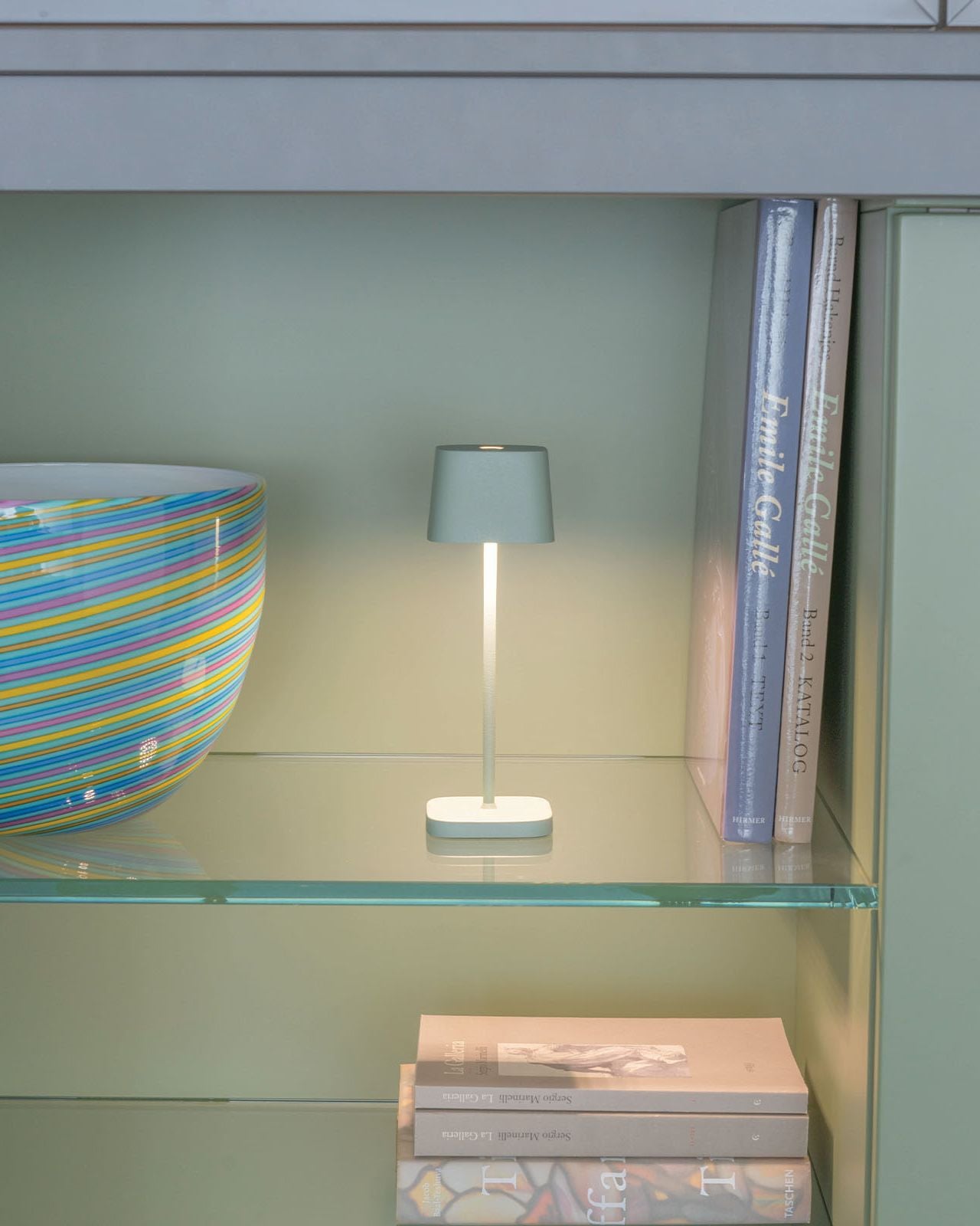The Portable Micro Table Lamp is a rechargeable battery operated lamp. Ideal for those with outdoor dining areas, this micro table lamp has an IP rating of IP65, making it suitable for both interior and exterior spaces. Available in five modern finishes, this lamp will suit a variety of interiors and colour palettes. Featuring a contact charging base and dimmer touch control.