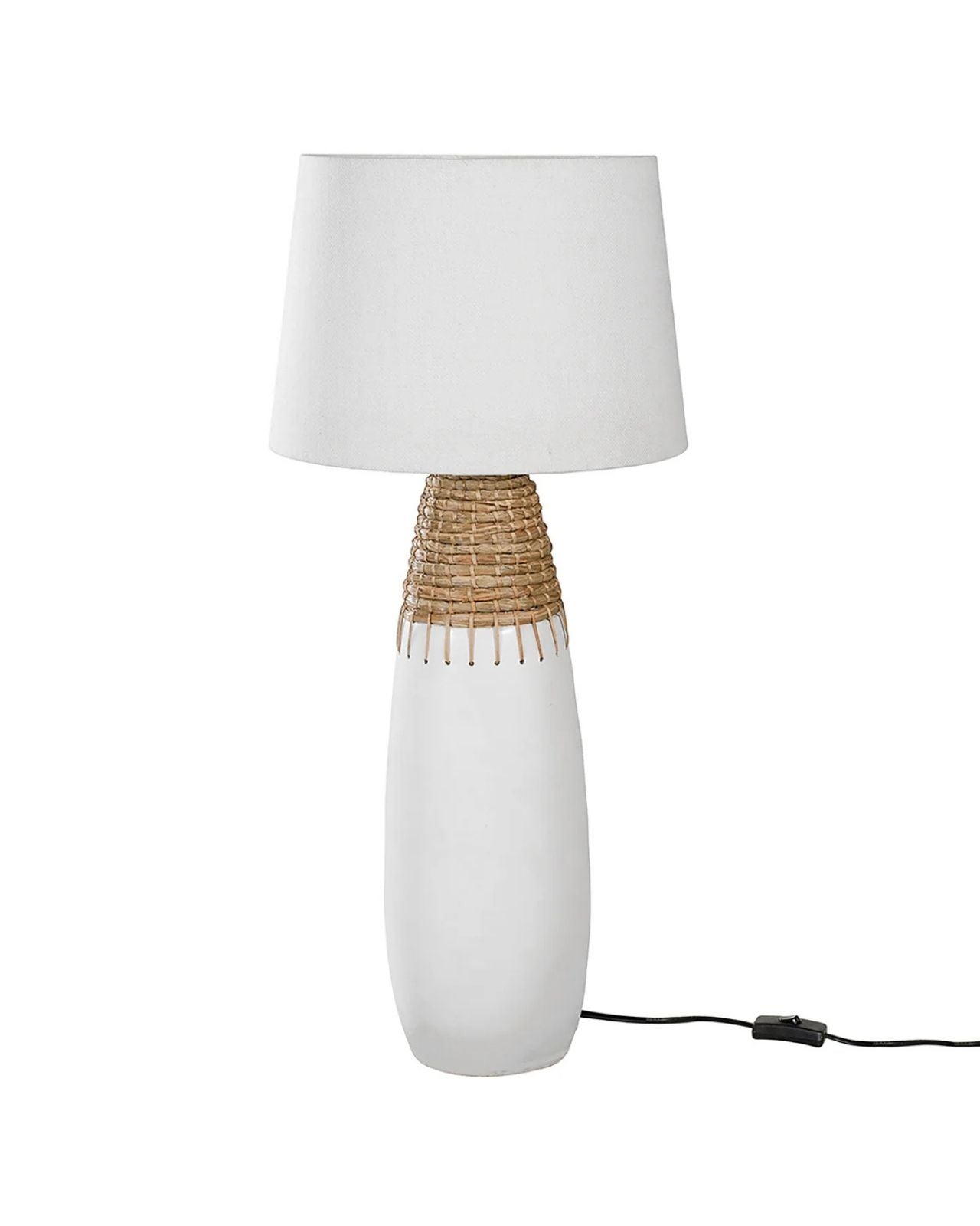 By Uniqwa Collections with an ethos of using recycled plantation materials to create contemporary organic designs, this Textured Rattan Tall Table Lamp will make an elevated coastal statement when used in an interior space. Made with a base of Terracotta finished in white finish, paired with a natural woven finish. This table lamp is perfect when used as a feature in a living room, bedroom, or on a console table.