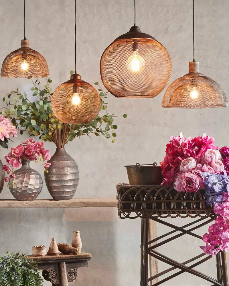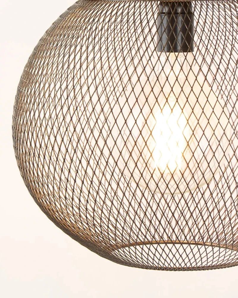 This is a gorgeous metal pendant features a dark brown rusted finish, giving that lovely rustic appeal to the space it is suspended within. The exposed frame and patina finish also gives this light a vintage industrial look, making this pendant quite versatile. It is fitted with an E27 socket, which means you have the option to customize the lighting effect to suit your illumination needs and set the right ambiance.
