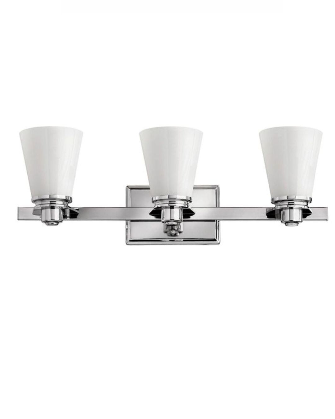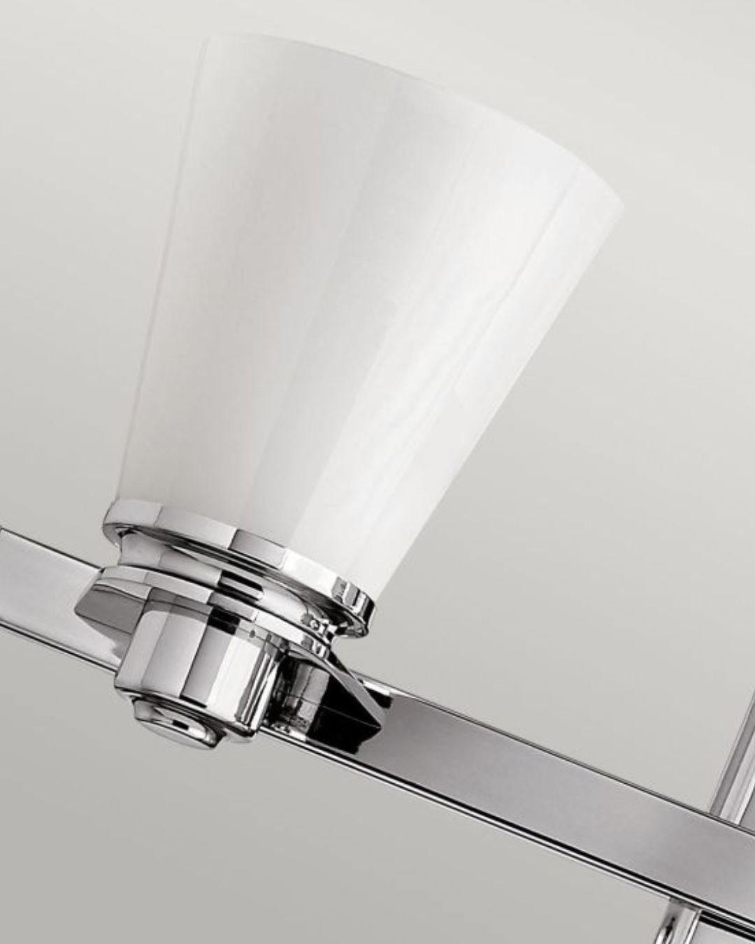 This Polished Chrome fitting's form is reflective of conventional lighting design. Characterised by its Opal Glass diffuser and sleek chrome accents this wall light enhances interior settings an is well suited with an IP44 rating for bathroom installation.