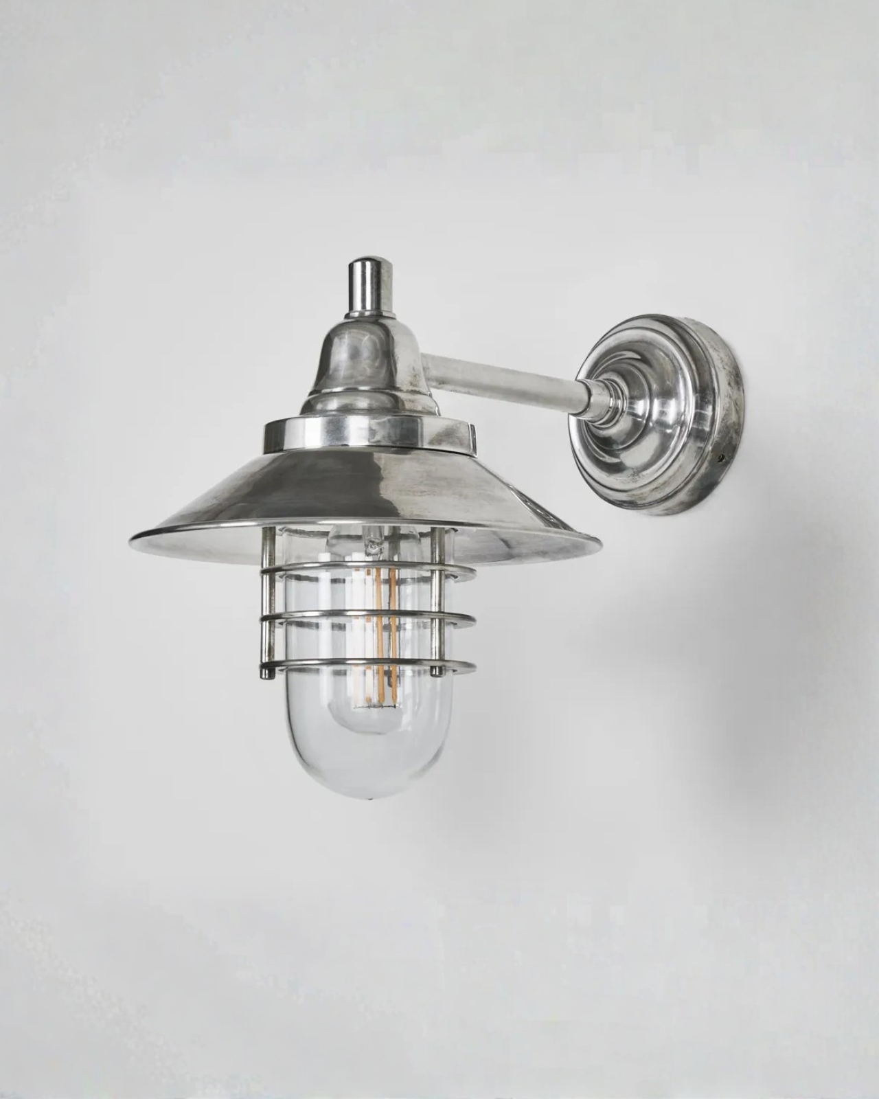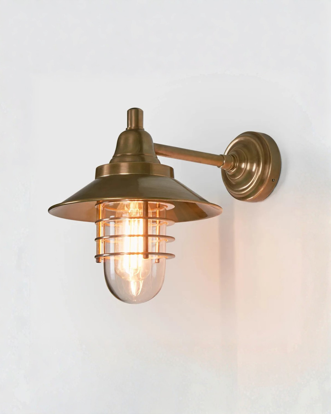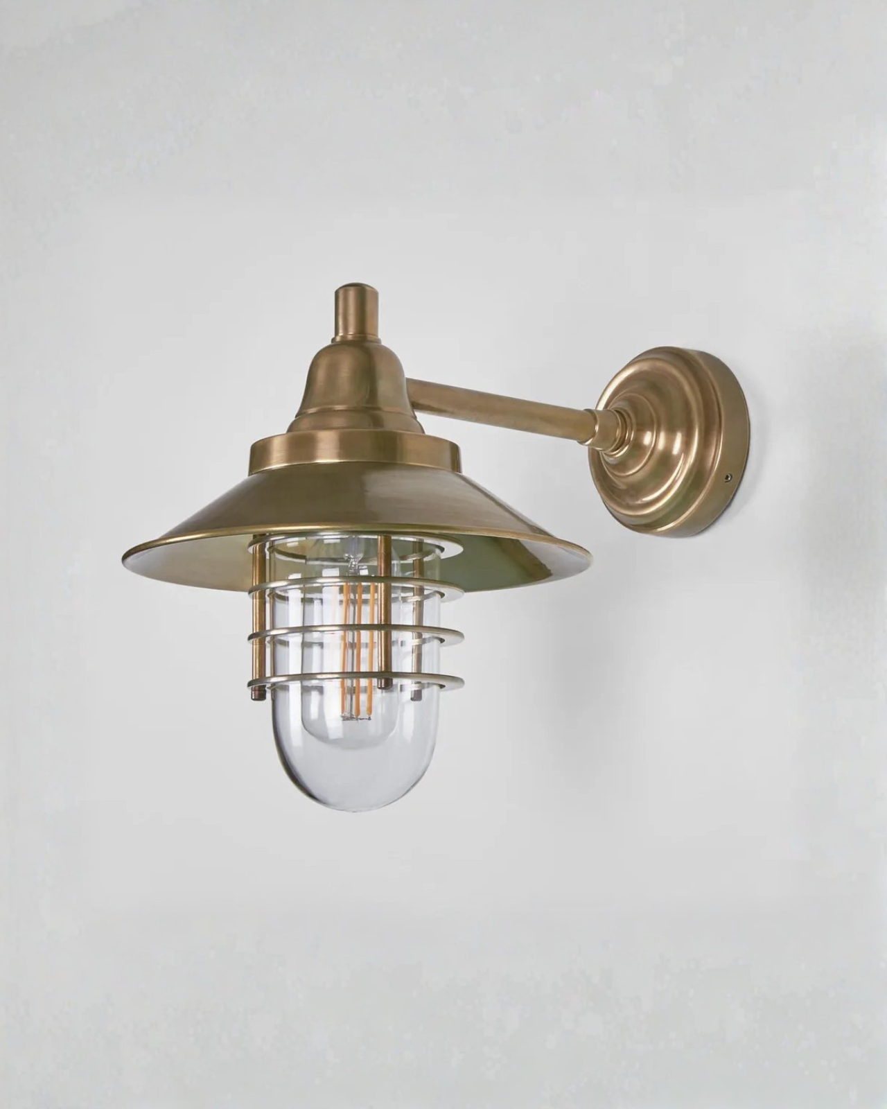 Channel the beauty of old-world charm and industrial functionality. This Antique-style wall lamp is made from brass and boasts glass casings to protect the bulb from dust and water. This IP54 design is ideal for the rugged nature of outdoor living spaces.